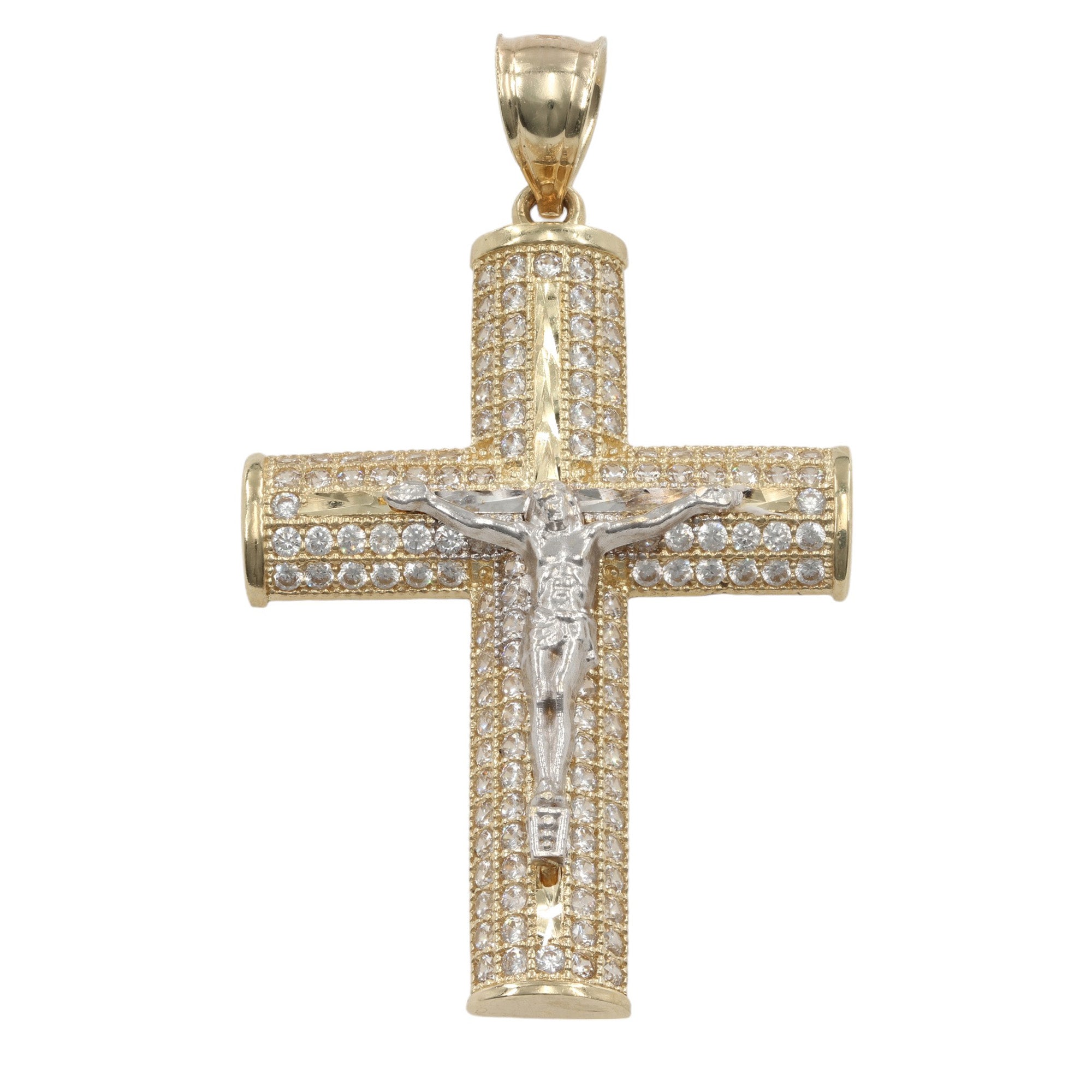 Colgante de crucifijo de oro bicolor de 10 k con circonita cúbica