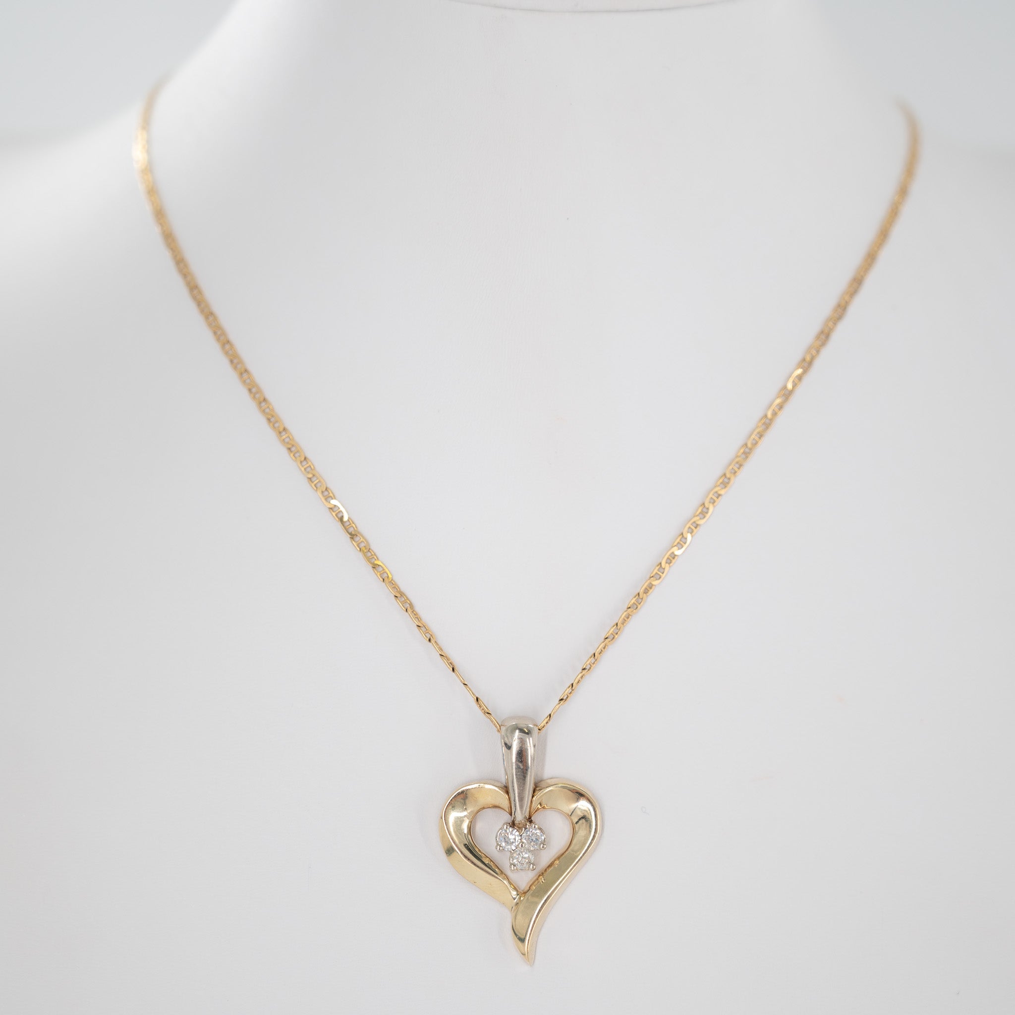 Colgante de corazón de diamantes en oro macizo de dos tonos de 14 quilates