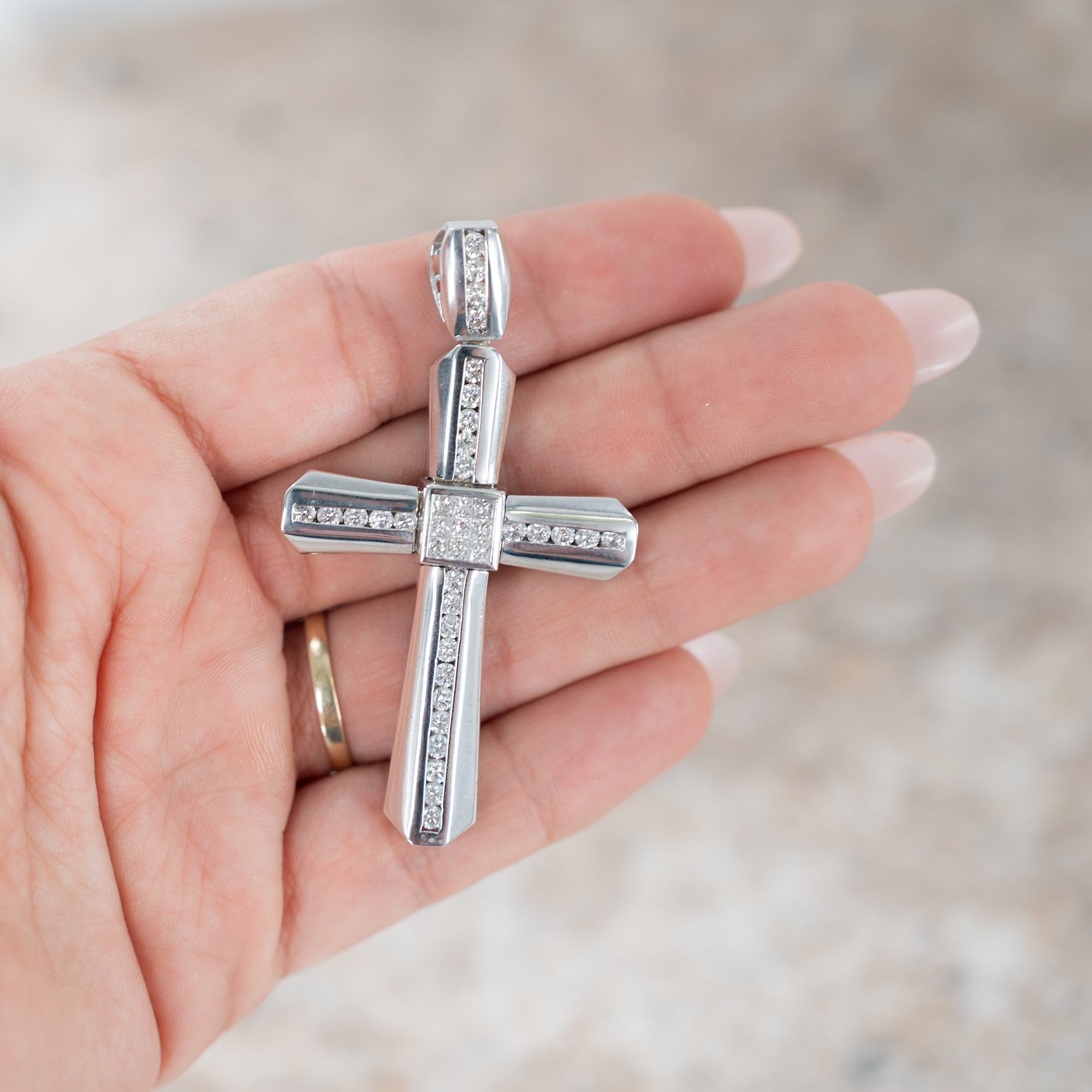 Colgante religioso con cruz de diamantes en oro blanco de 14 k