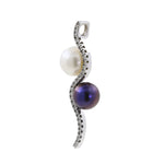 Colgante de oro blanco de 14 quilates con perlas blancas y moradas y diamantes que fluyen S, 1,5 pulgadas
