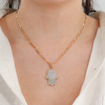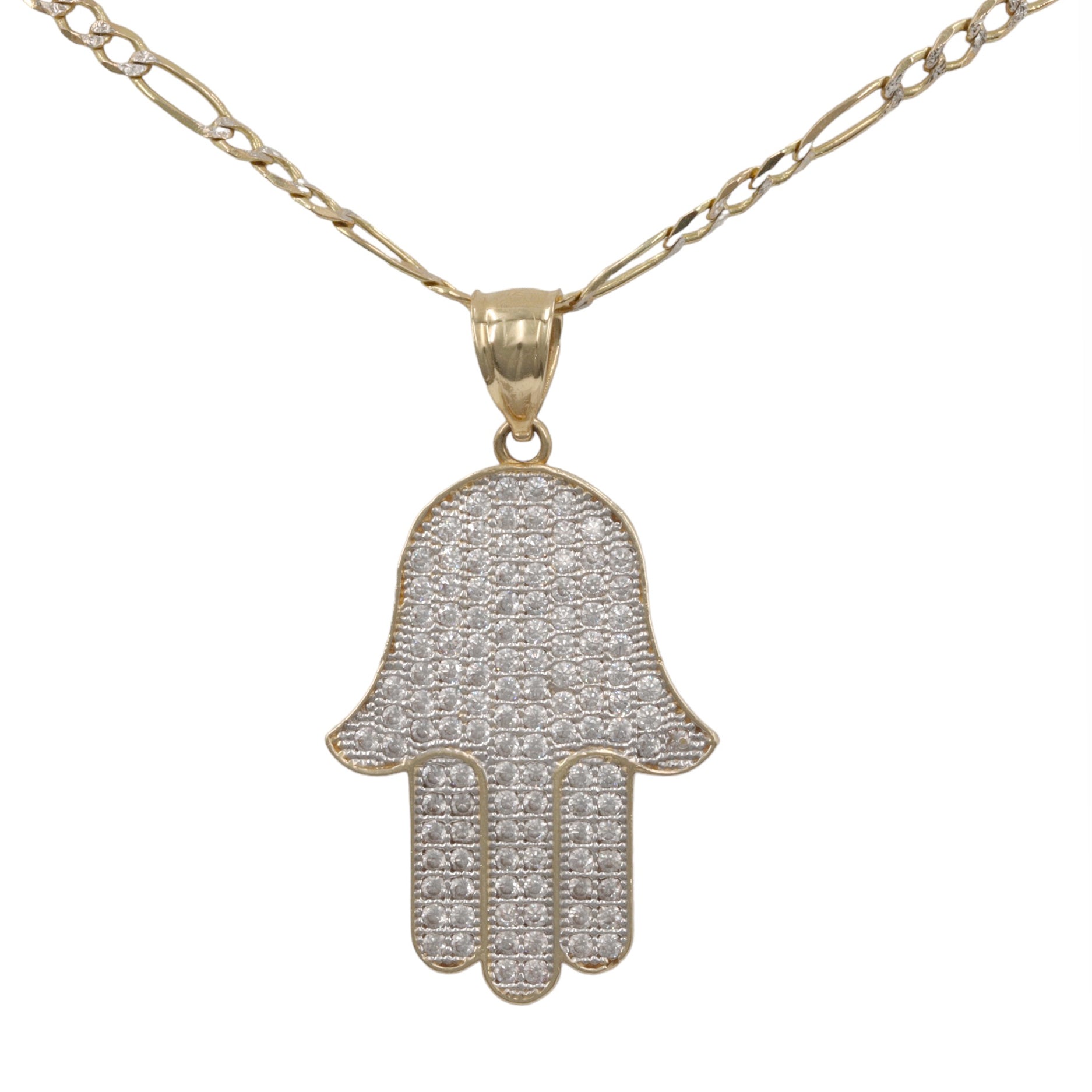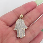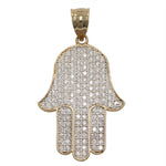 Colgante de mano de Hamsa de circonita cúbica de oro amarillo de 14k / Hamsa de oro real / Colgante de oro macizo