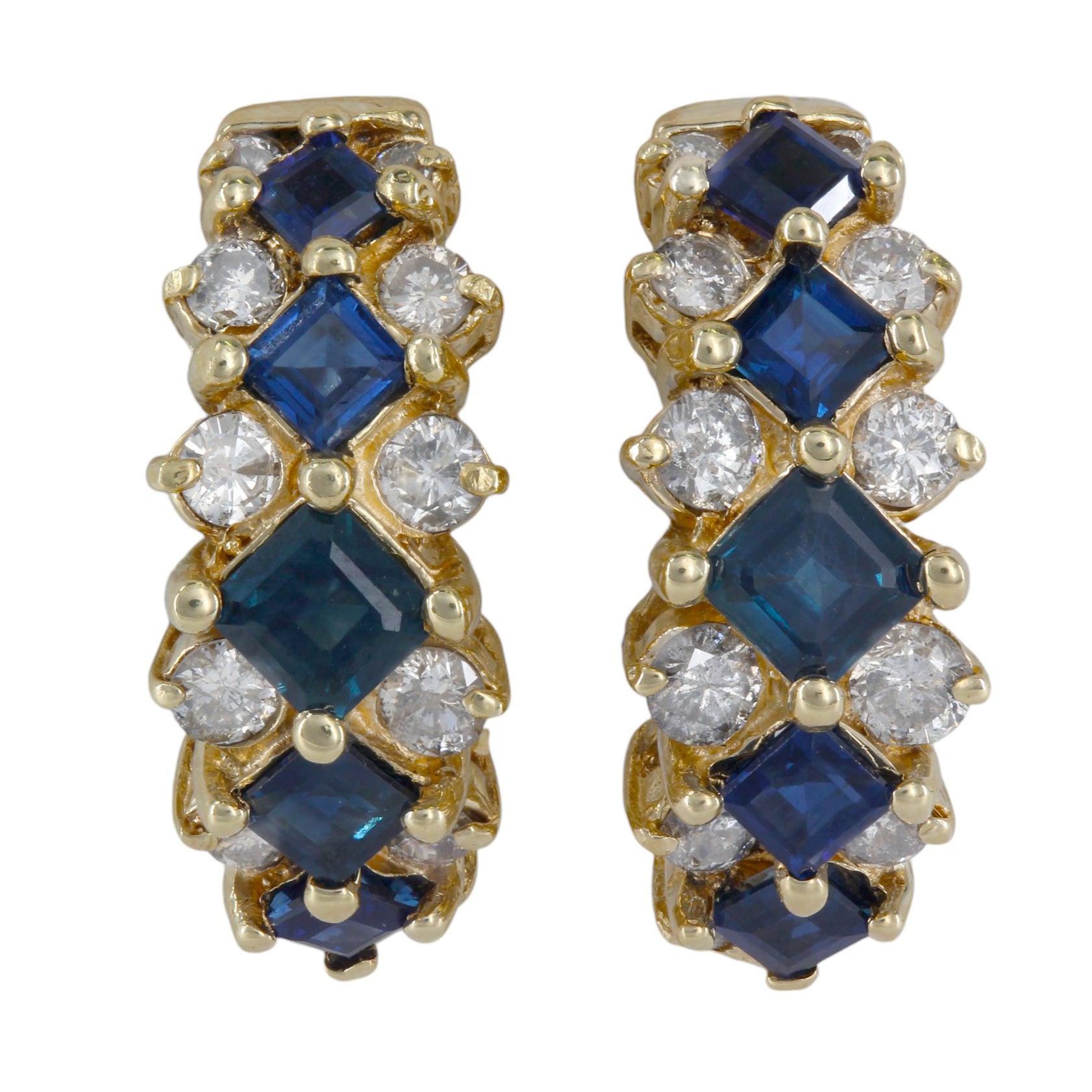 These vintage 14K yellow gold earrings feature a stunning combination of diamonds and sapphires. The rich blue sapphires are beautifully complemented by the sparkling diamonds, creating an elegant and timeless design.