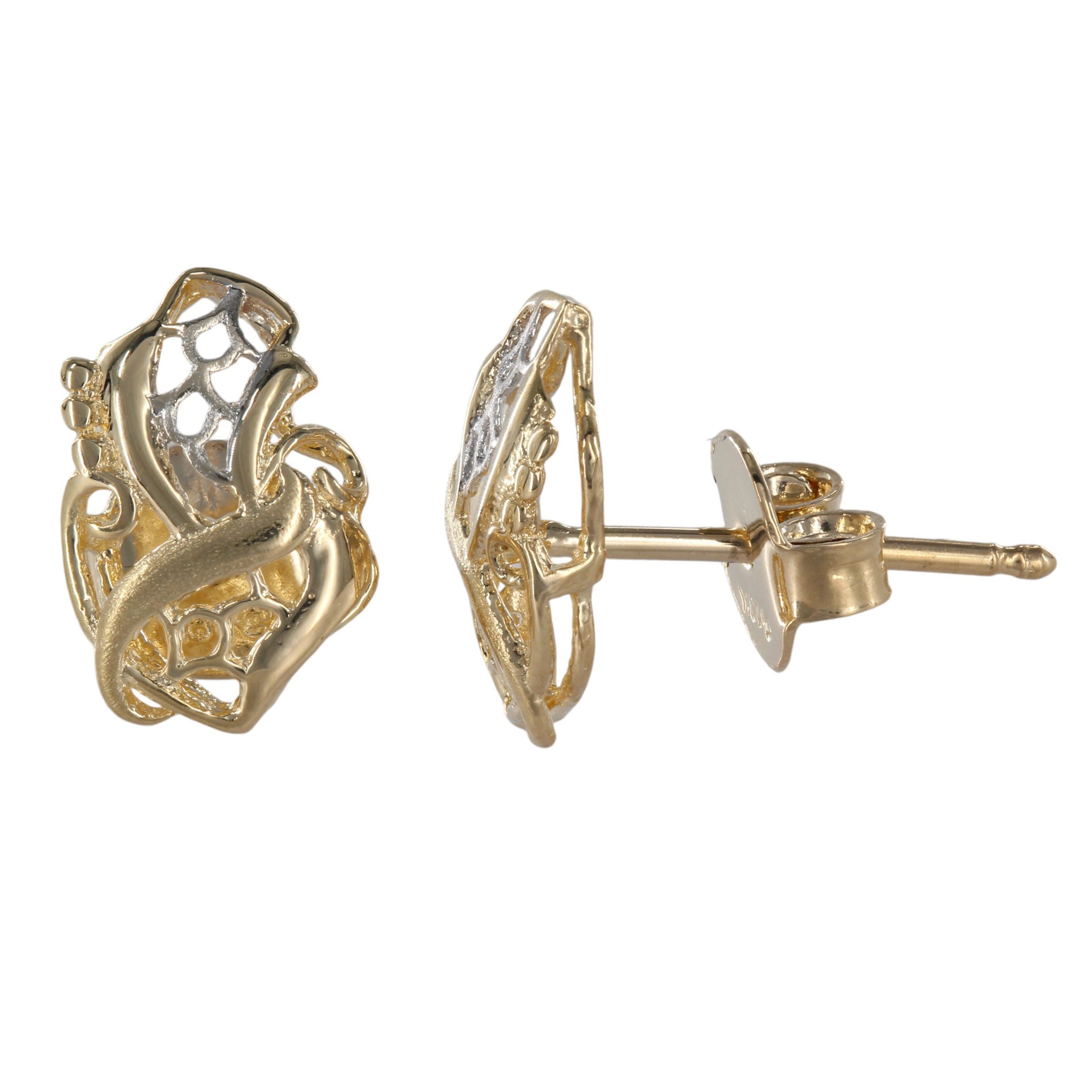 18K Two-Tone Gold Flowing Openwork Filligree Stud Earrings