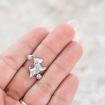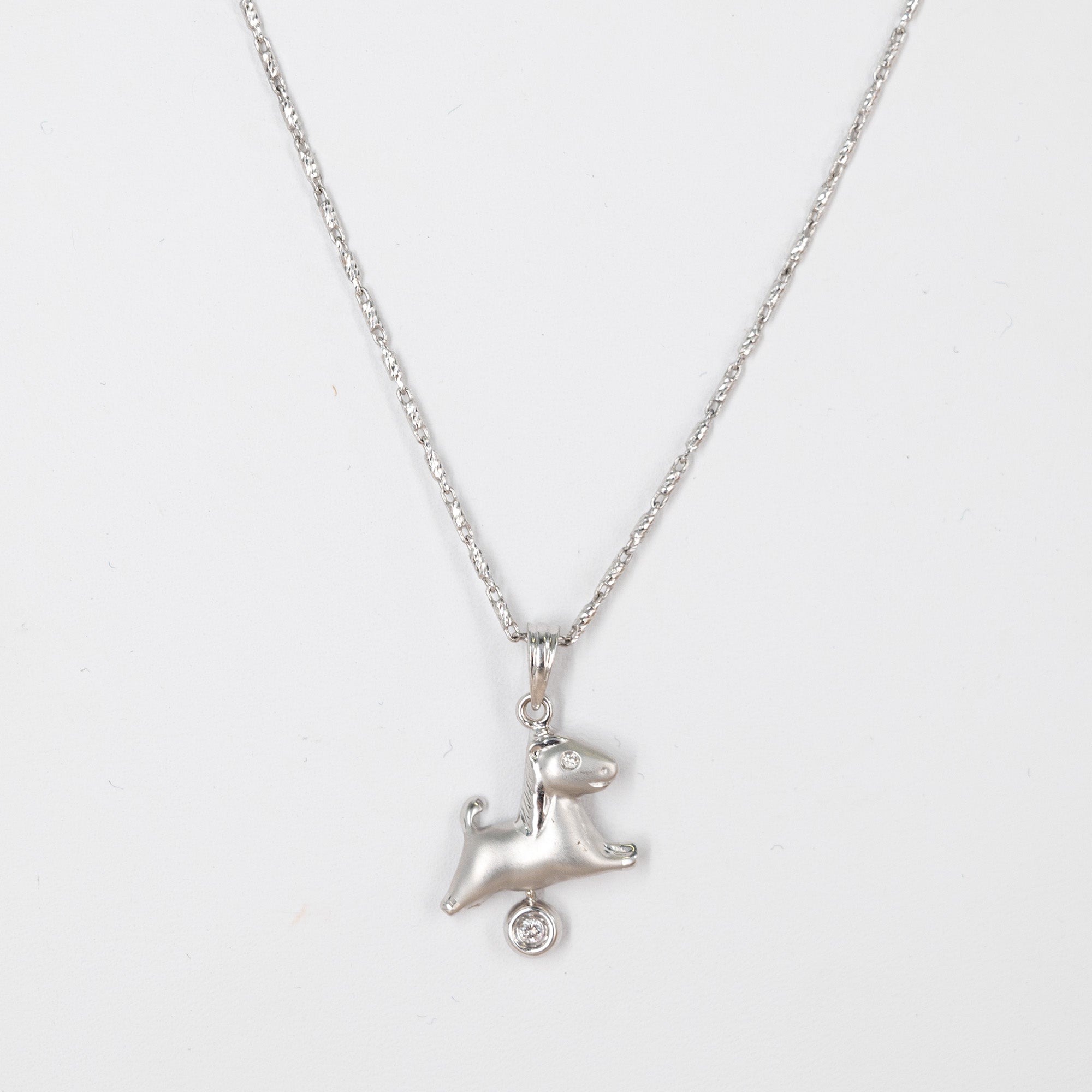 Colgante de bebé con dije de diamantes y pequeño pony en oro blanco de 18 k