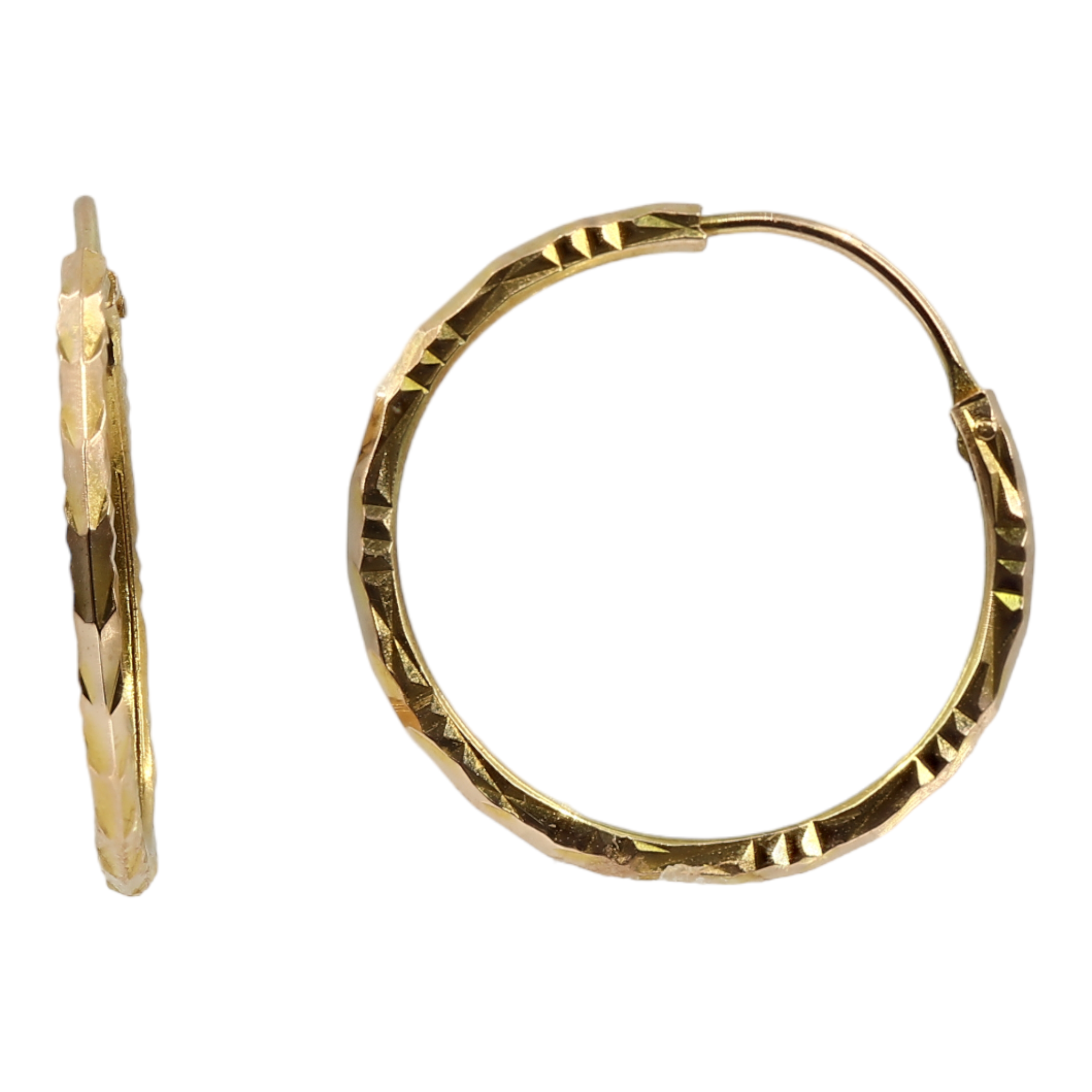 Adorne con nuestros aretes tipo argolla decorativos de oro amarillo de 18k para mujer. Estas piezas atemporales cuentan con un elegante diámetro de 17 mm, complementado con un diseño de aro continuo que garantiza un uso seguro. Estos aretes, hábilmente elaborados en oro amarillo de 18k, tienen un delicado peso de 1 g, que simboliza tanto la gracia como la calidad duradera. Eleva tu estilo sin esfuerzo con estos aretes de aro Deco, una combinación perfecta de sofisticación y simplicidad.