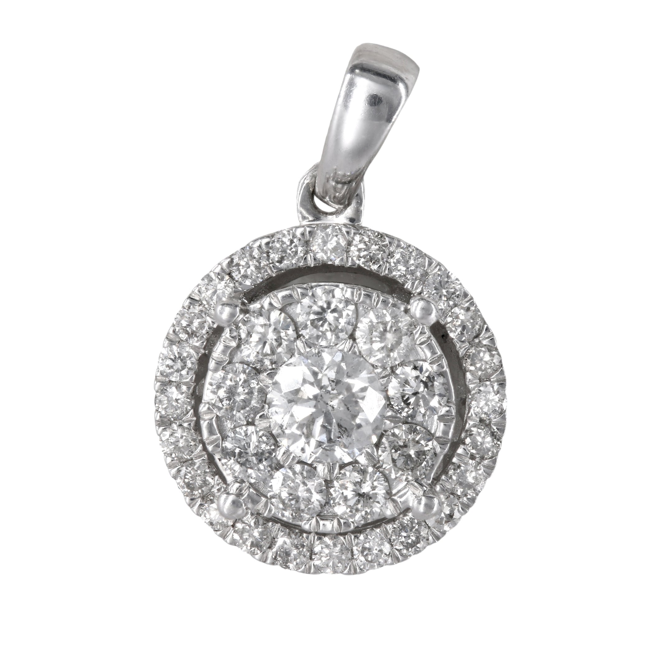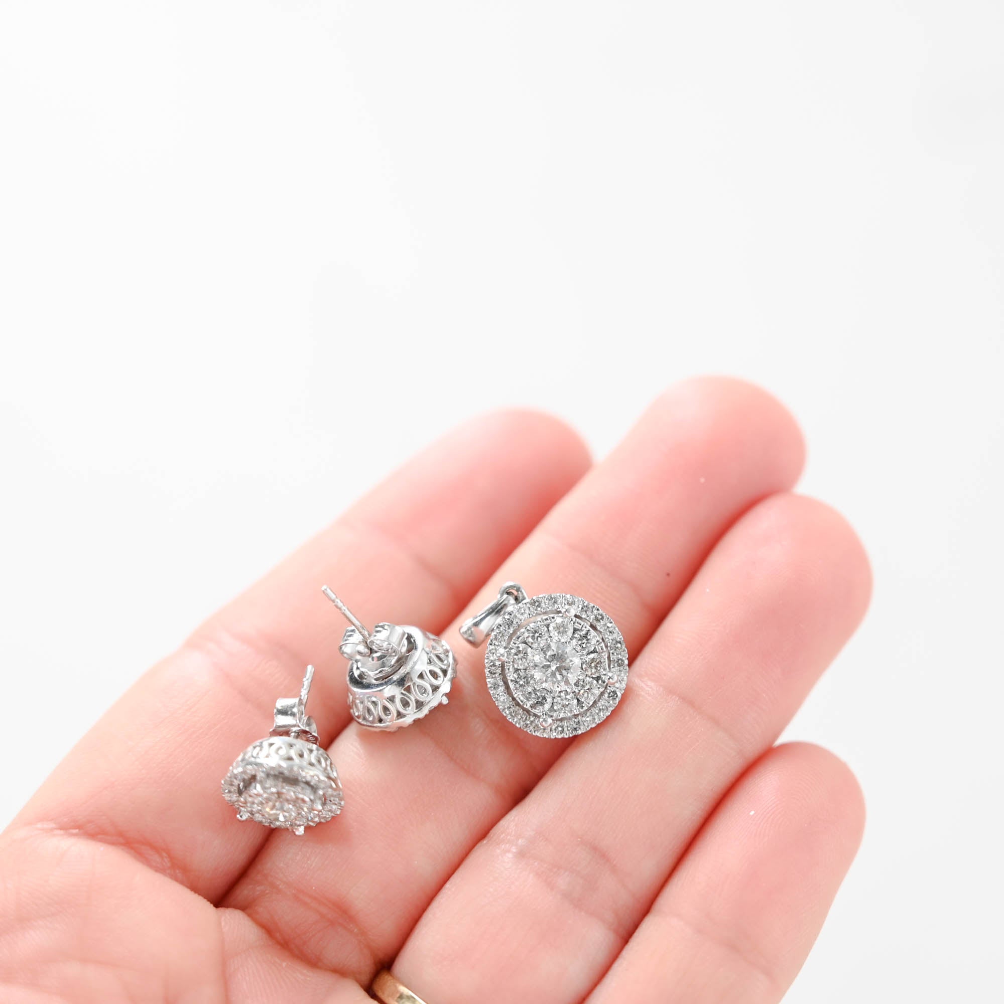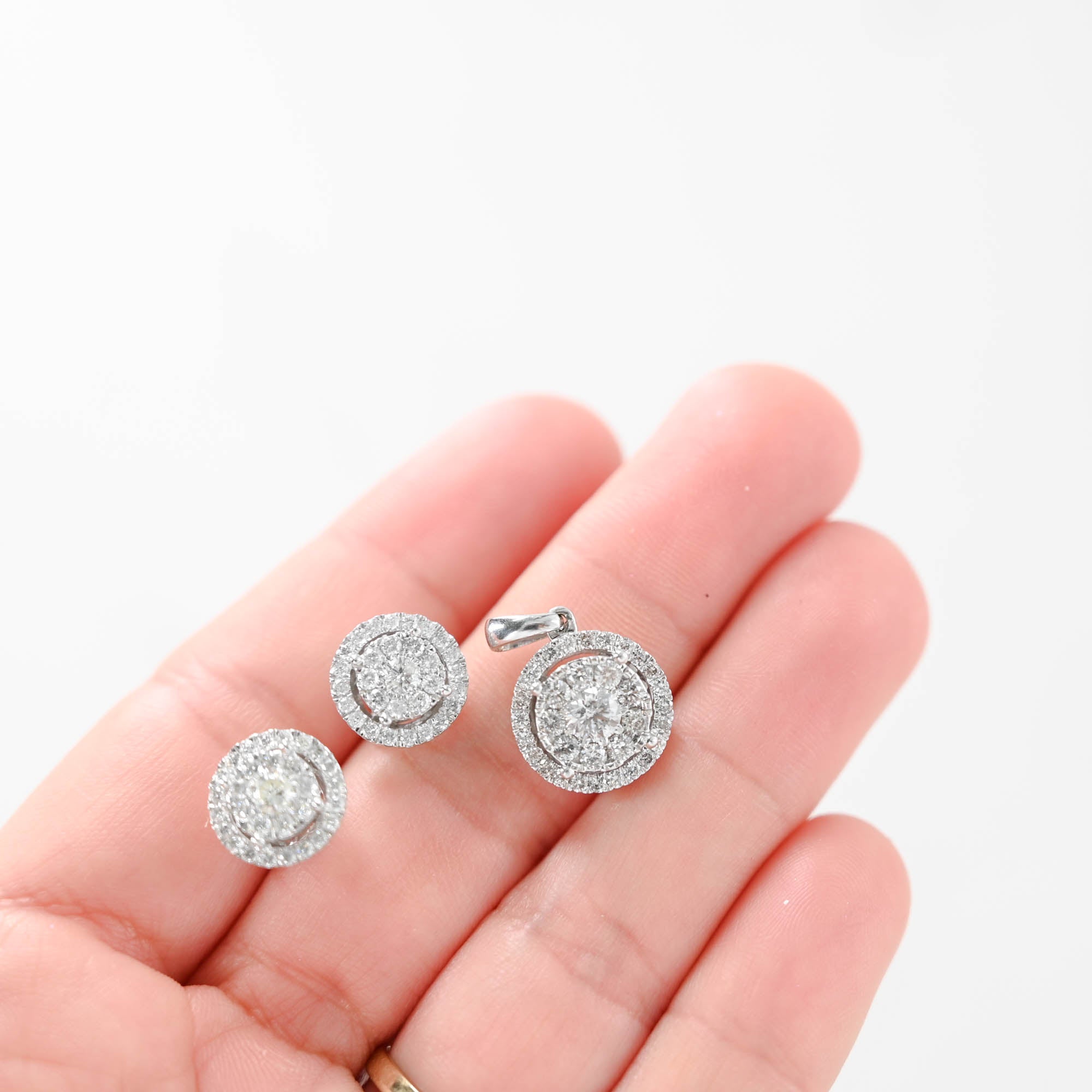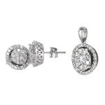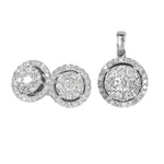 10k White Gold Cluster Diamond Round Earring and Pendant Jewelry Set