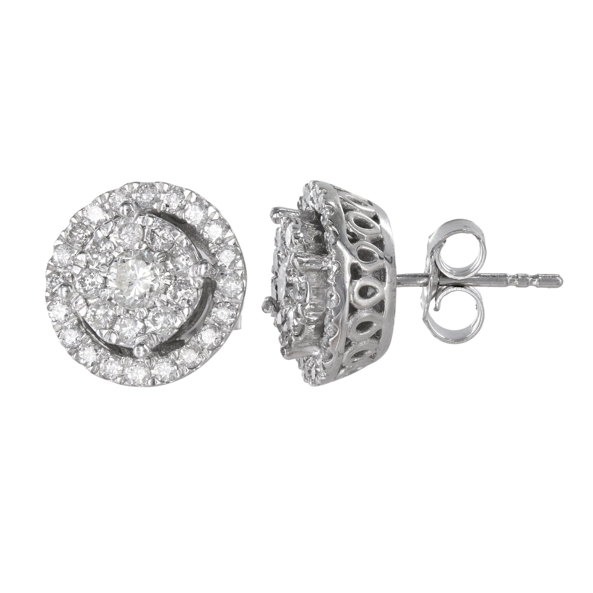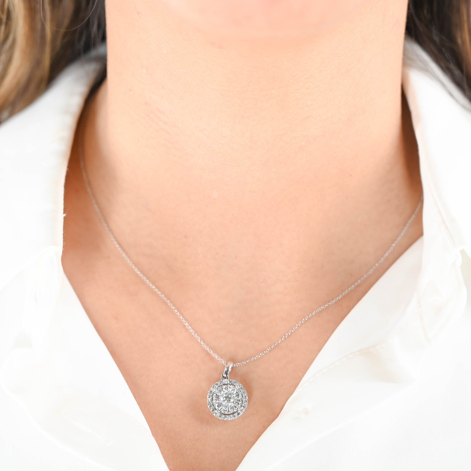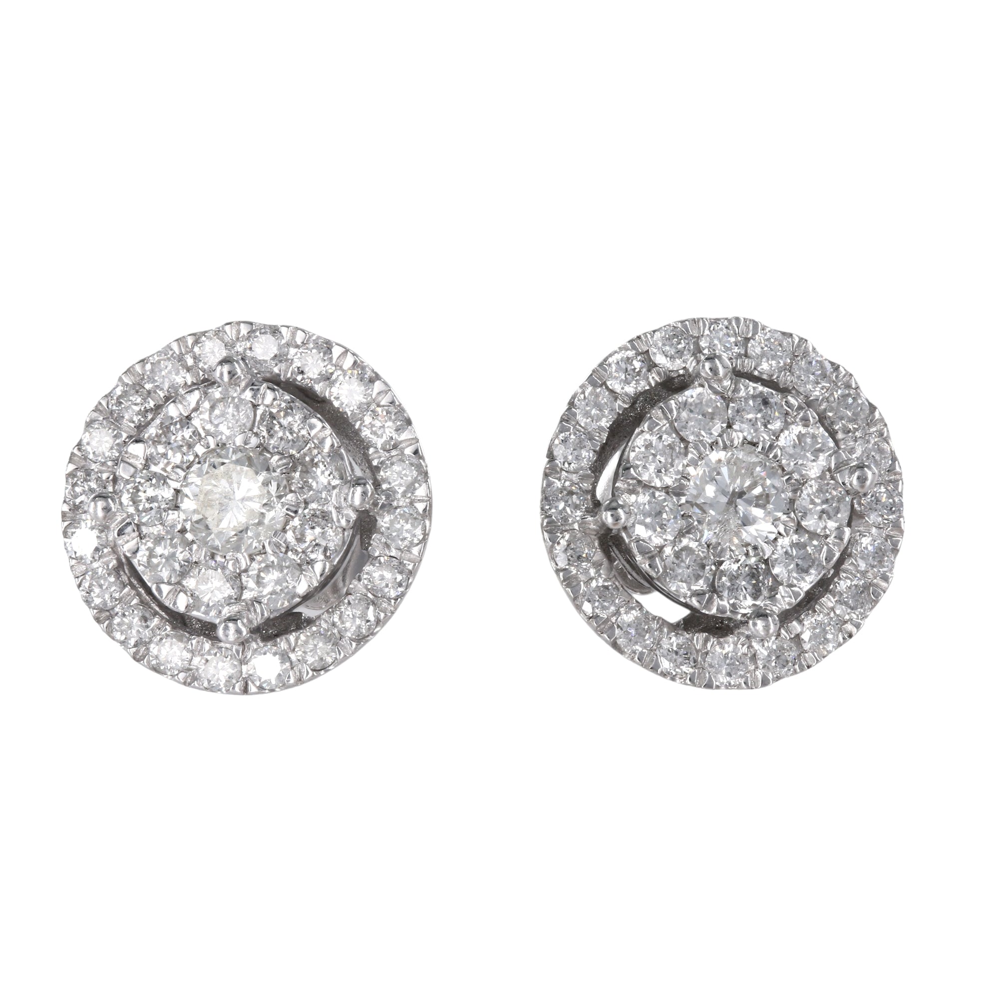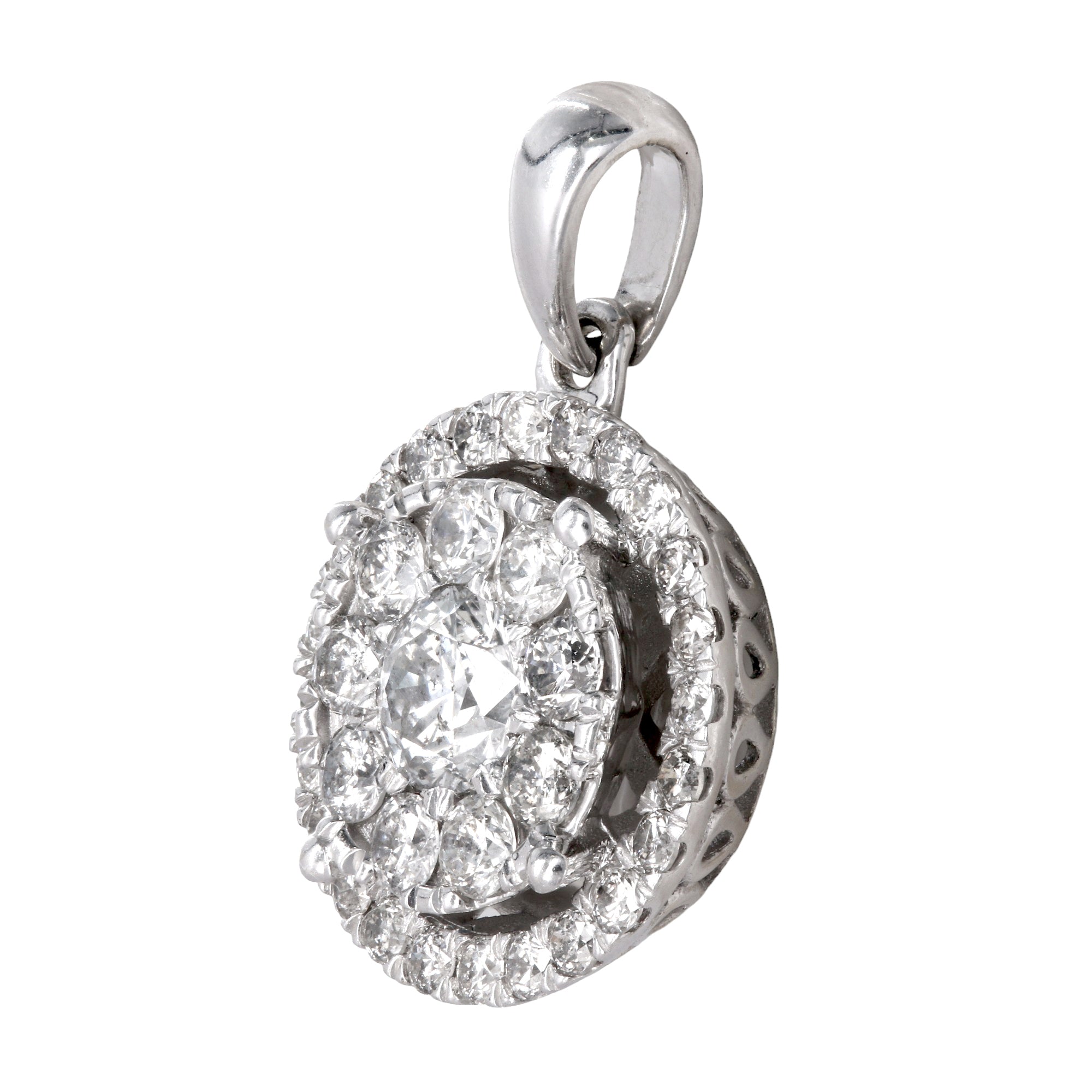 10k White Gold Cluster Diamond Round Earring and Pendant Jewelry Set