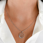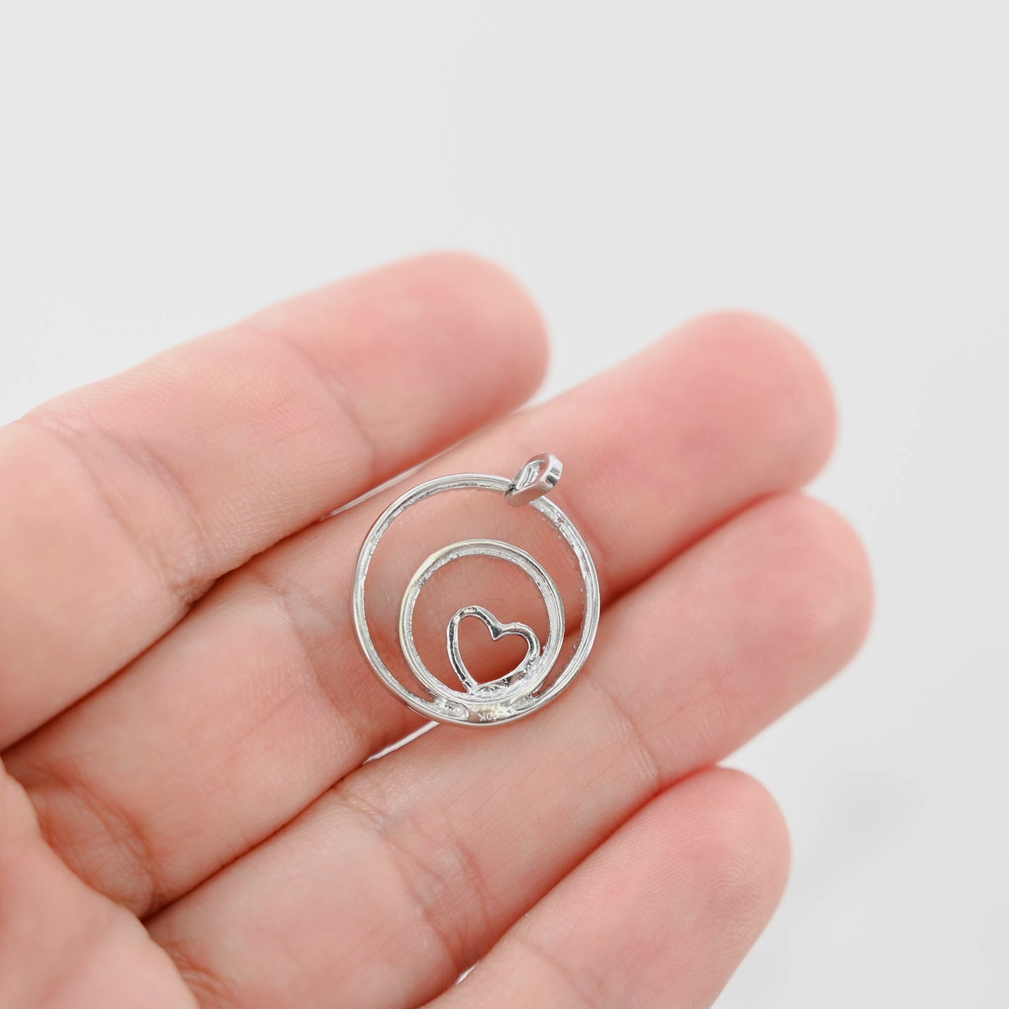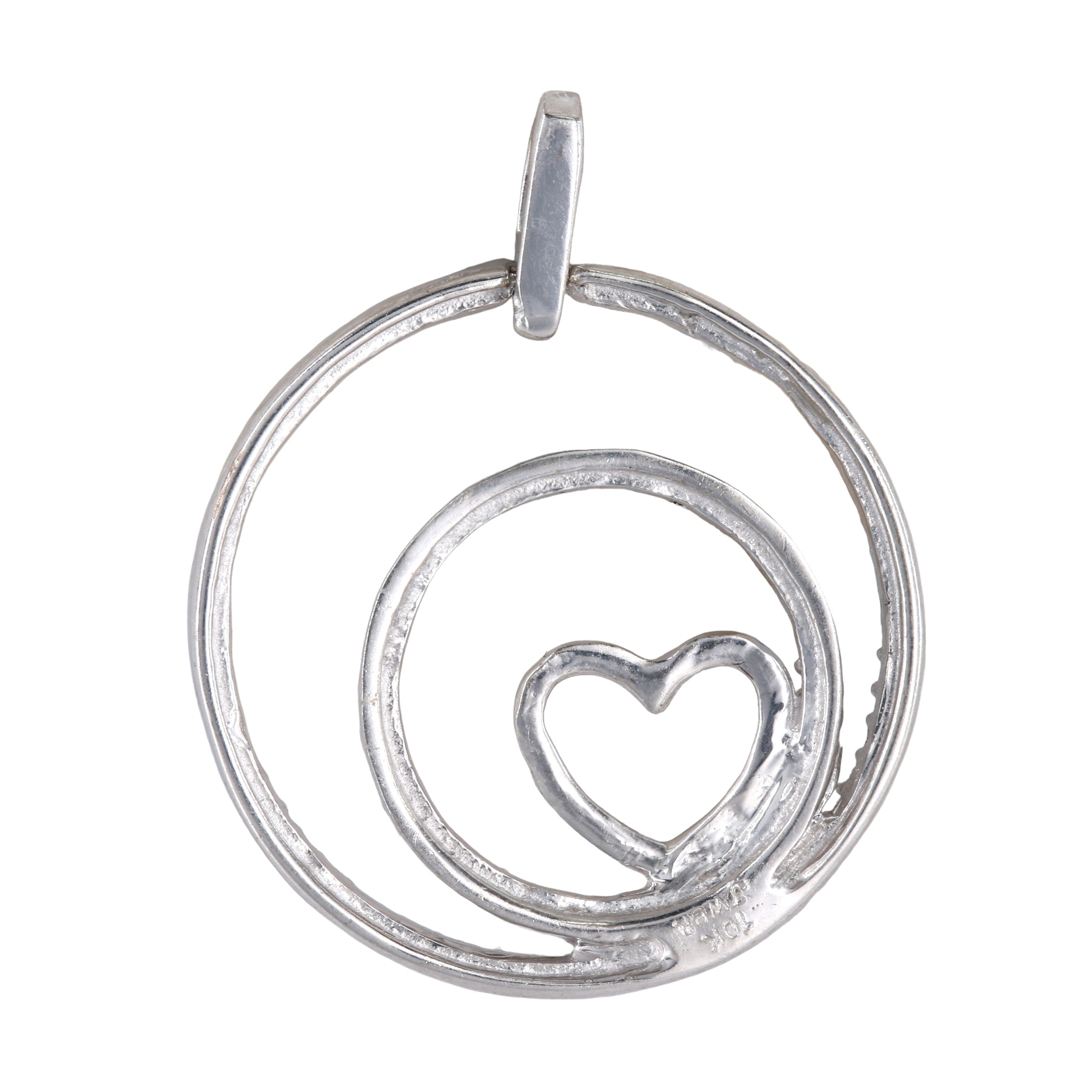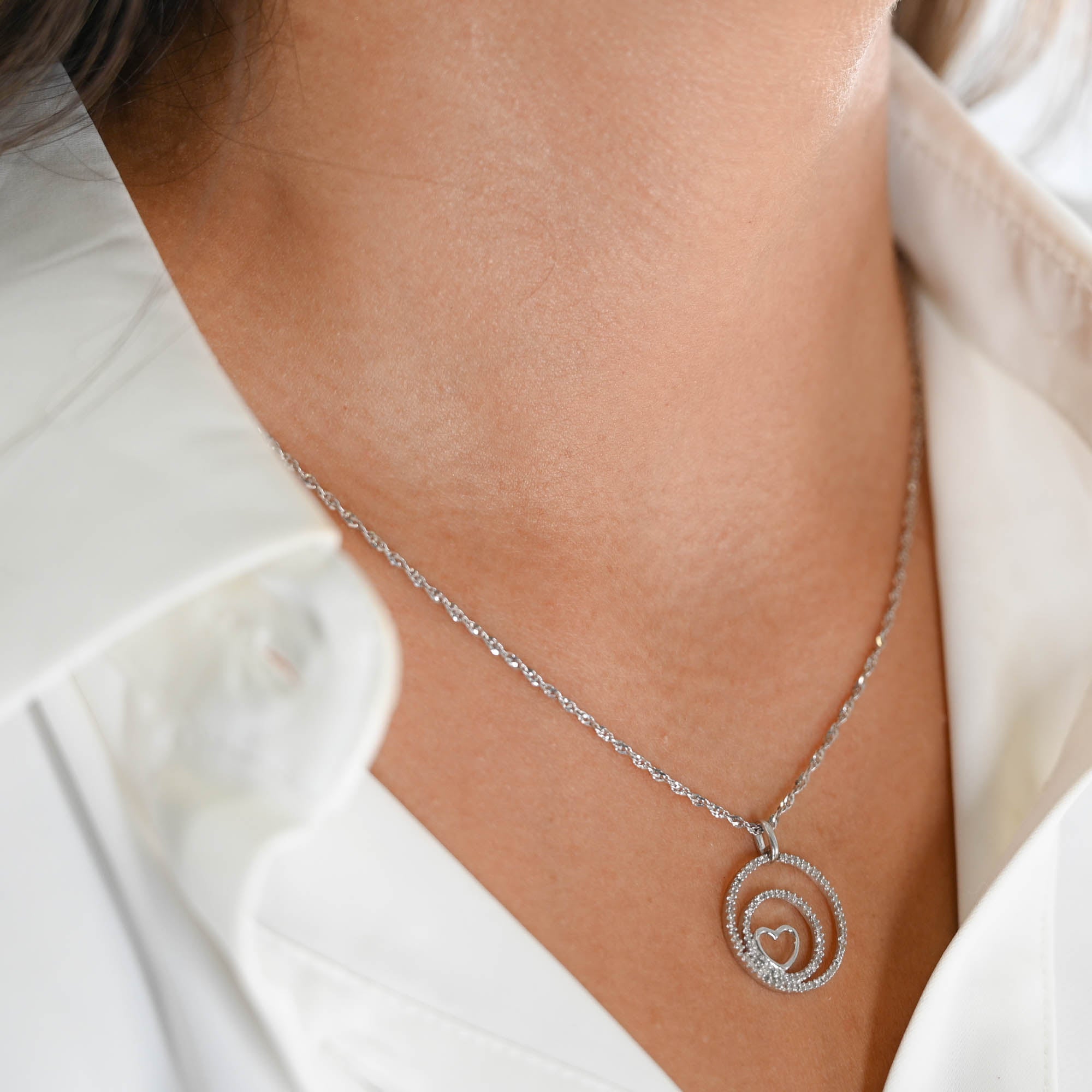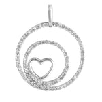 This elegant 10K white gold pendant features a beautiful heart inside two interlocking circles, adorned with 0.19 carats of sparkling diamonds. The delicate design symbolizes love and unity, making it a timeless and meaningful piece perfect for any occasion.