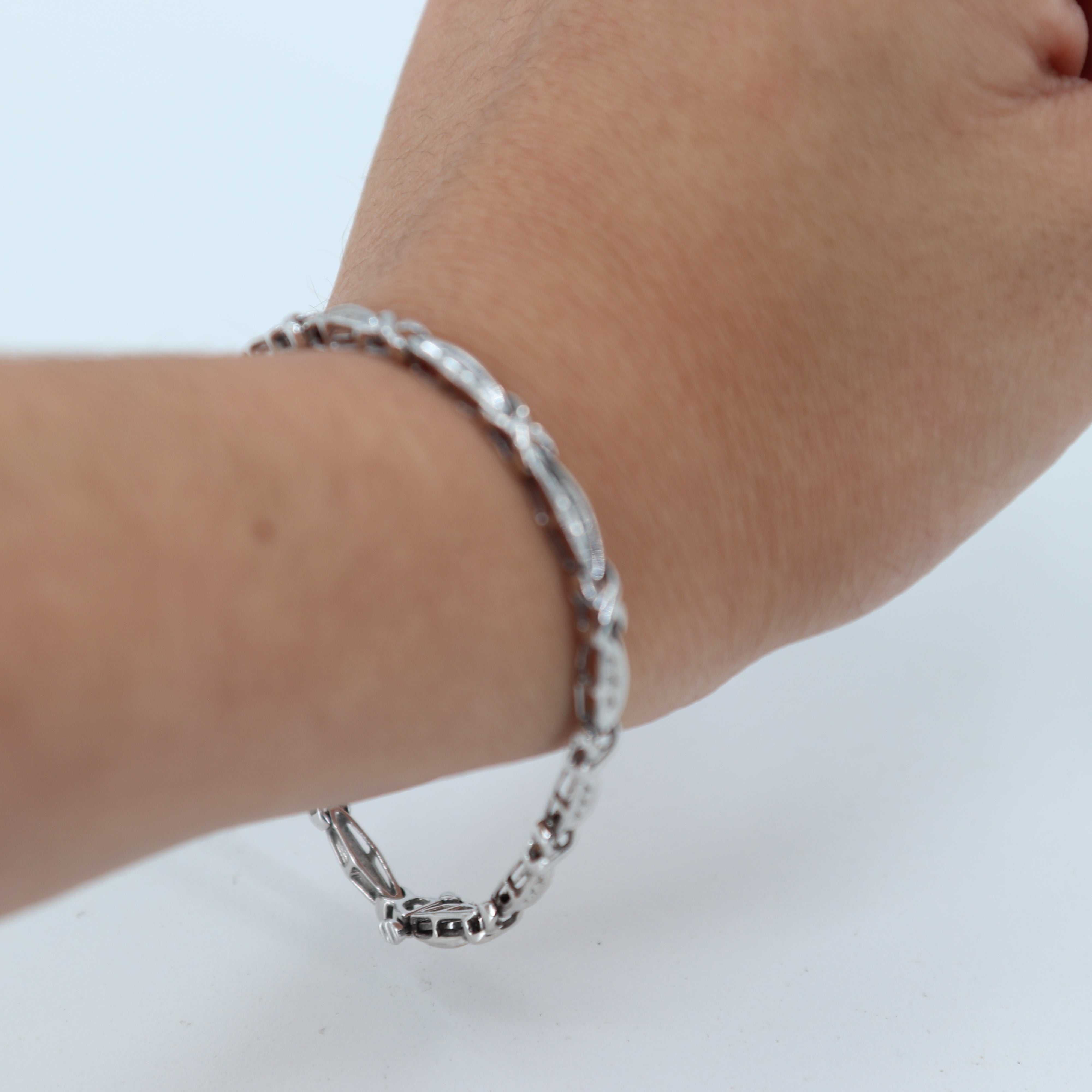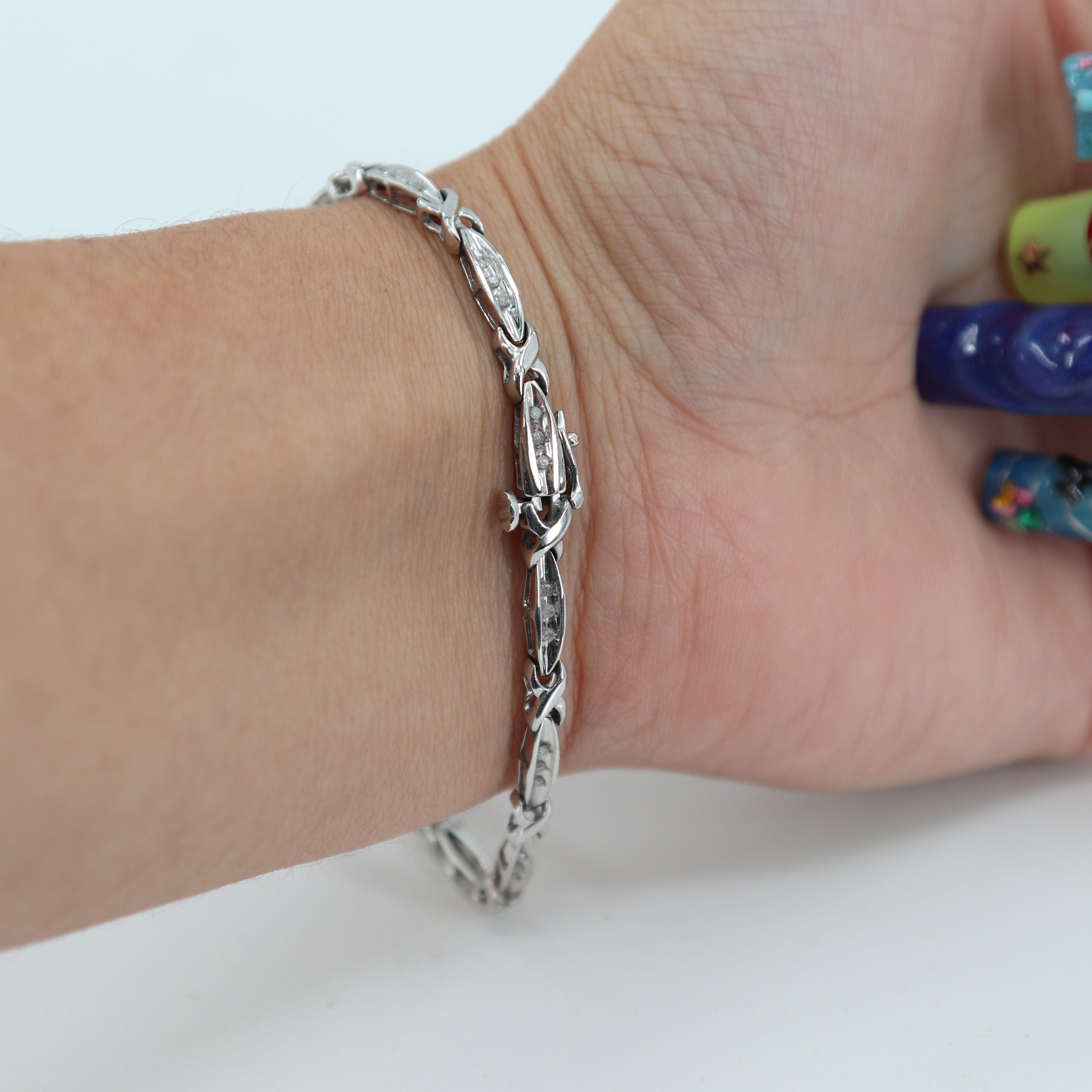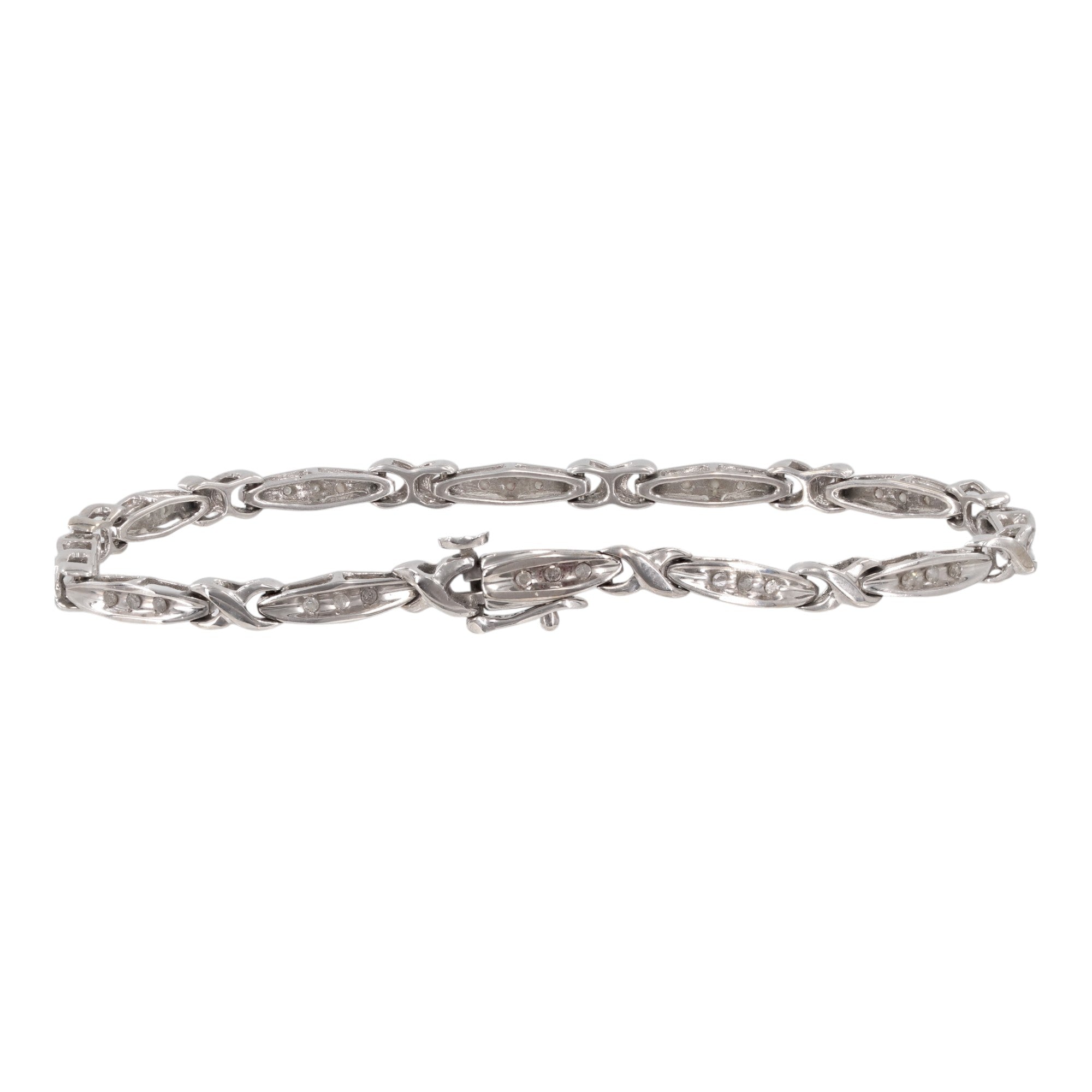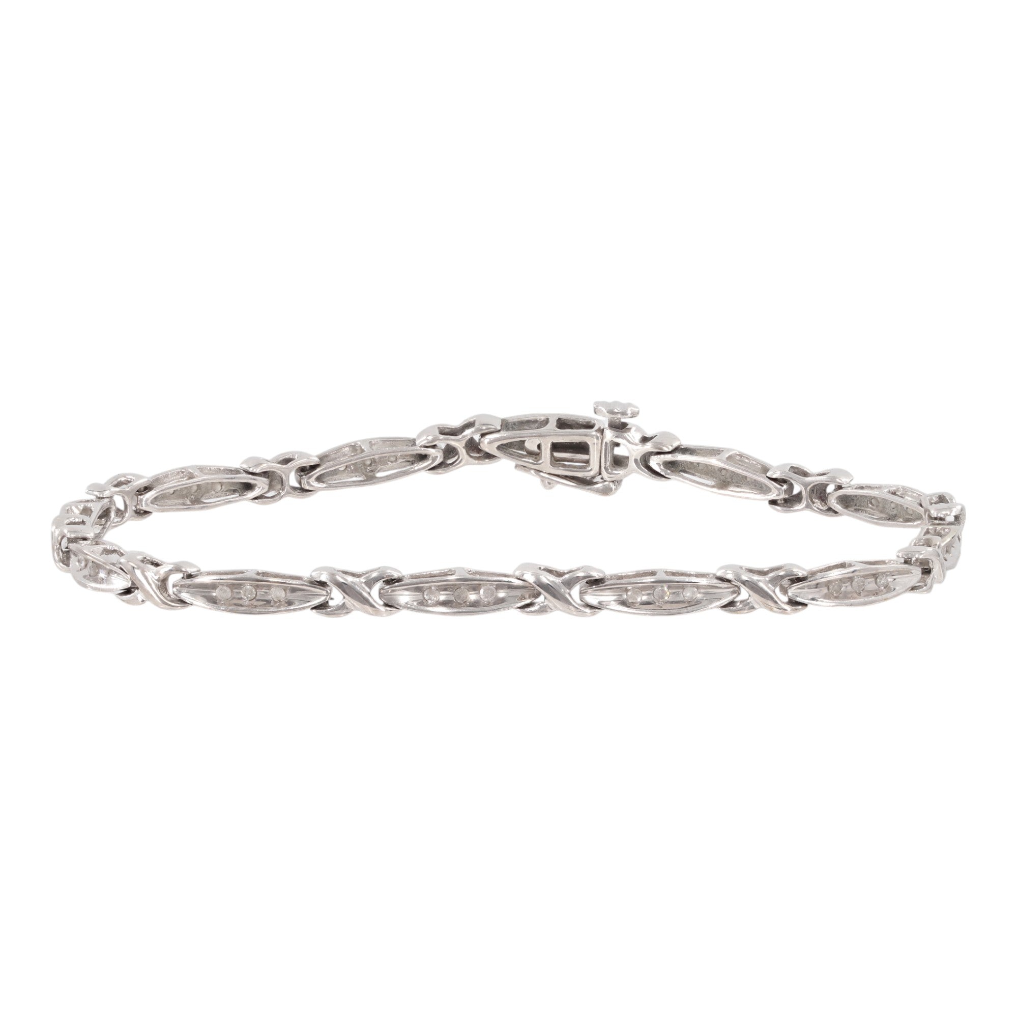 10k White Gold Diamond Cross Link Tennis Bracelet