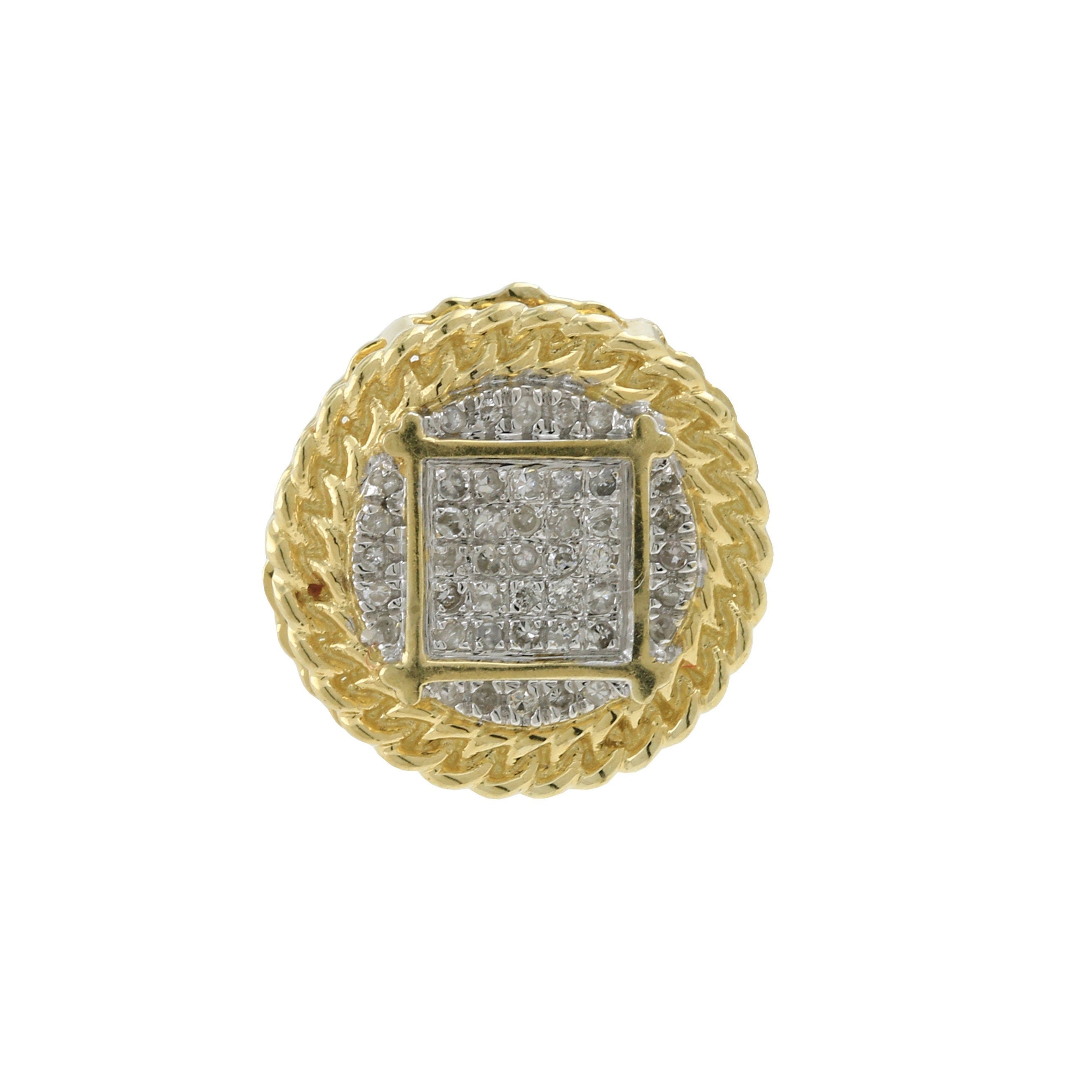 10k White & Yellow Gold Round Diamond Pave Cluster Single Stud Earring