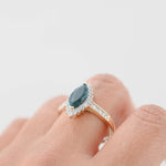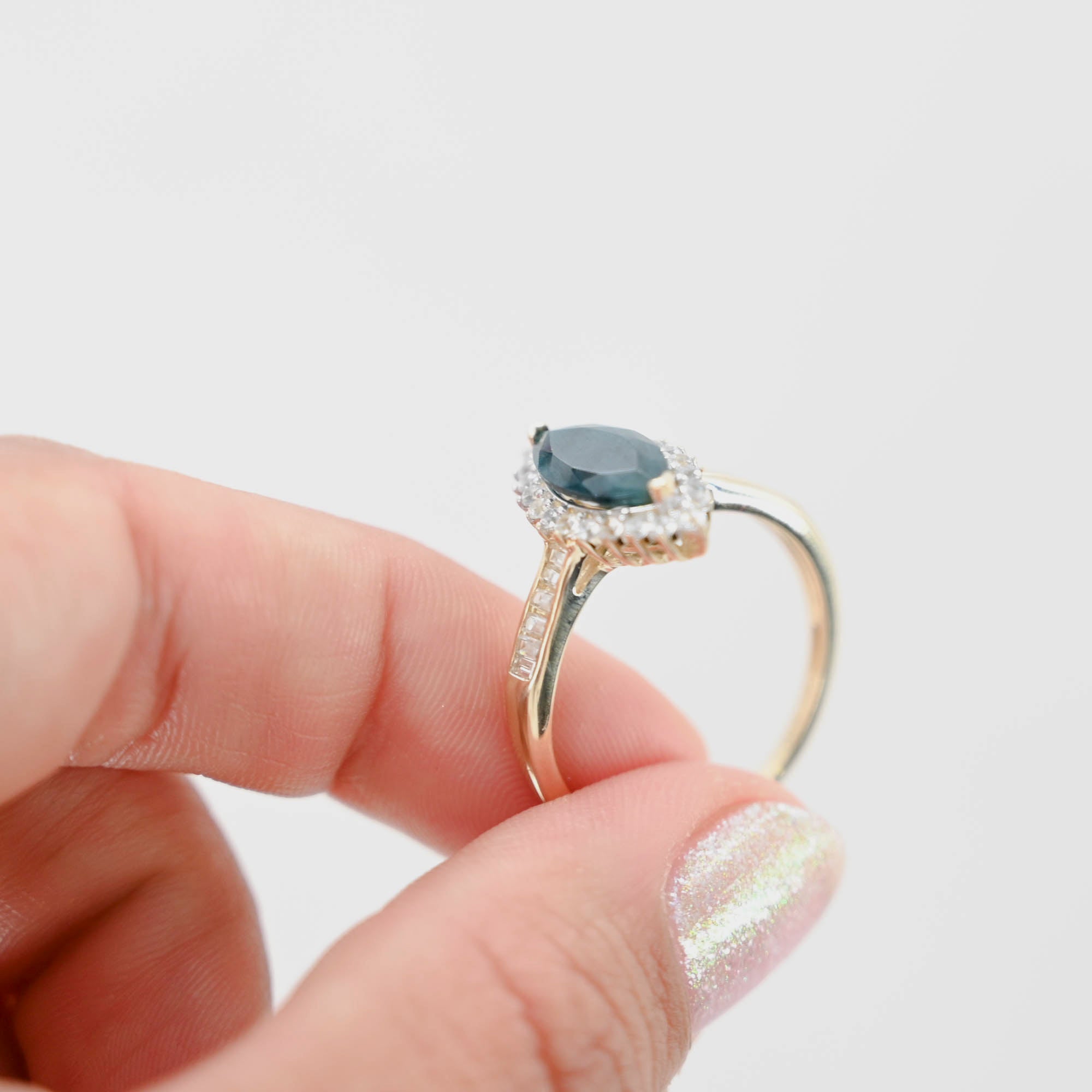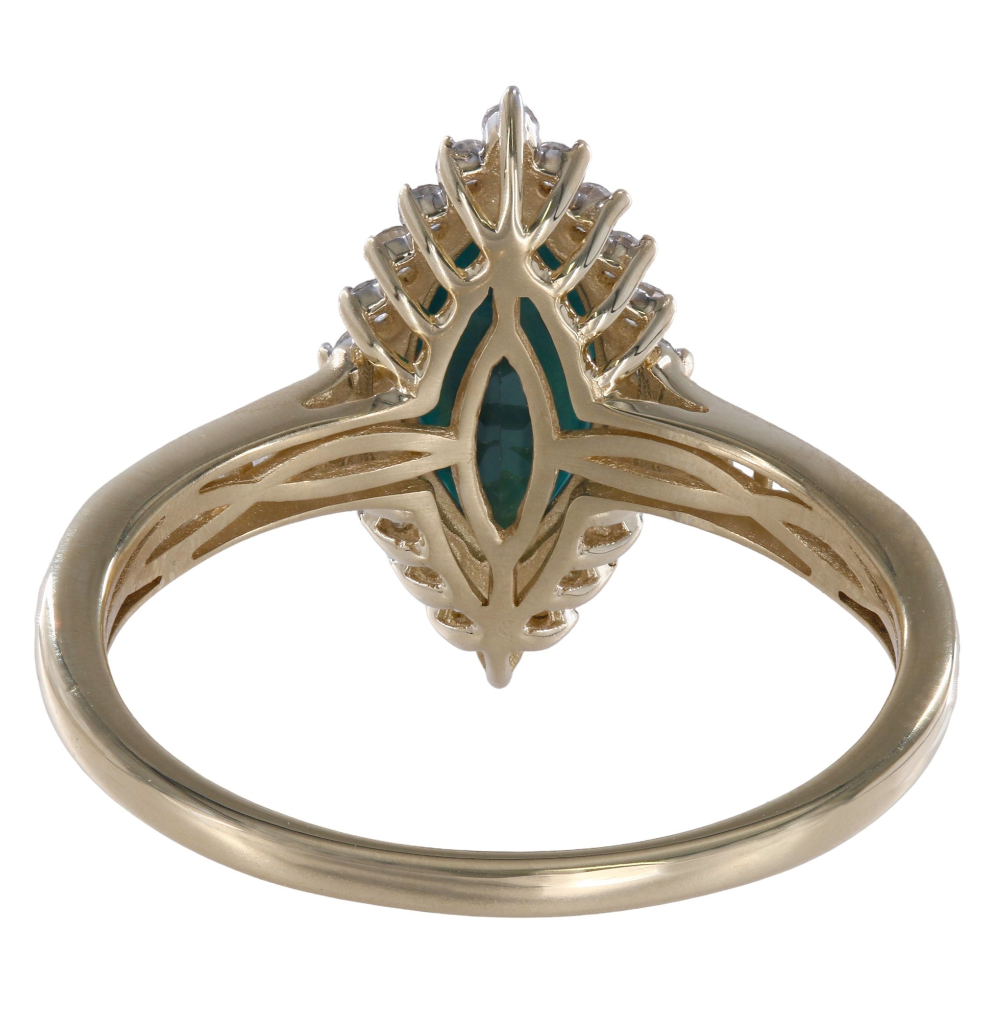 10k Yellow Gold Natural Emerald Marquise Cut Diamond Halo Cocktail Ring