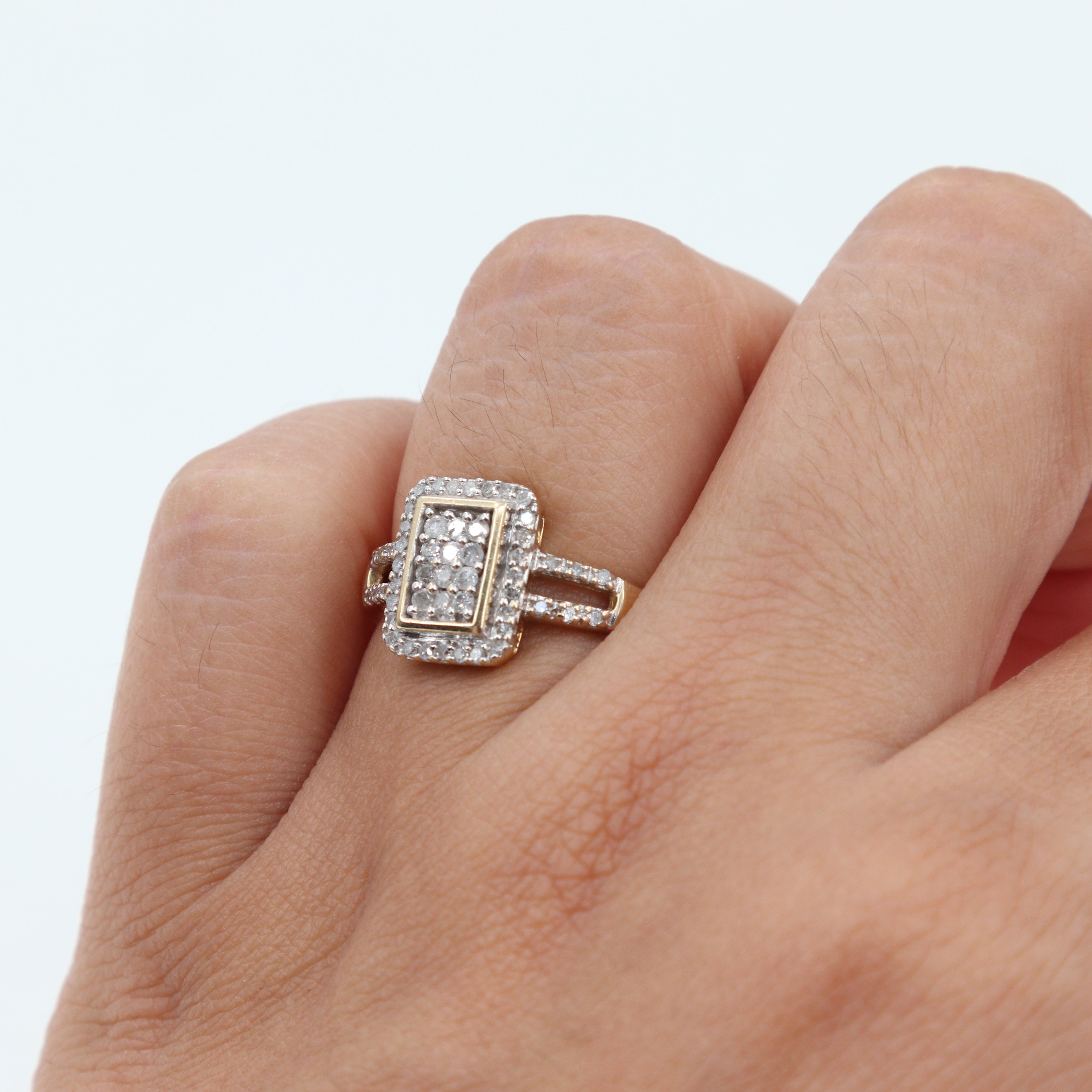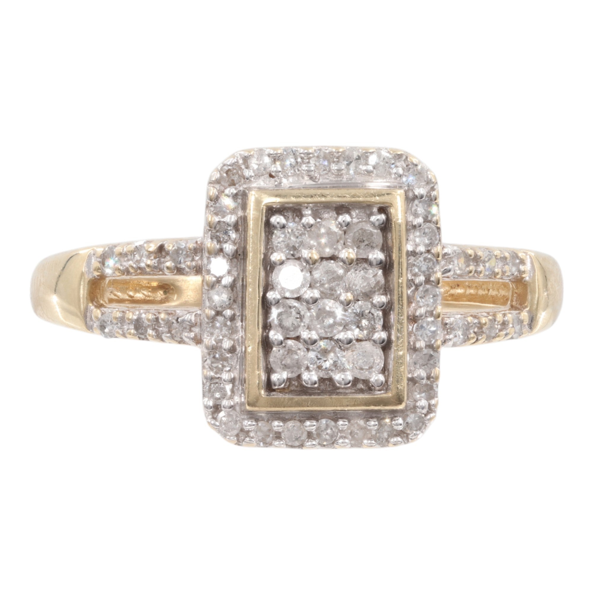 10k Yellow Gold Rectangle Cluster Diamond Ring