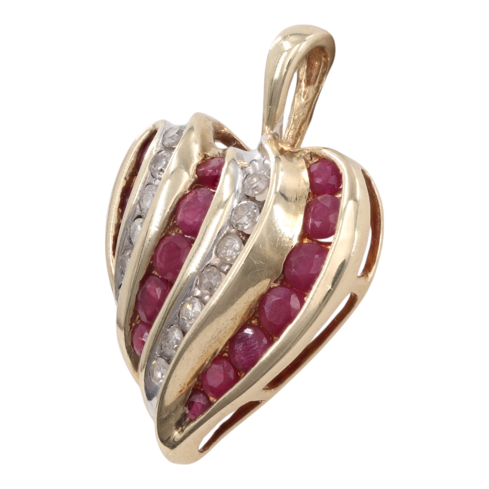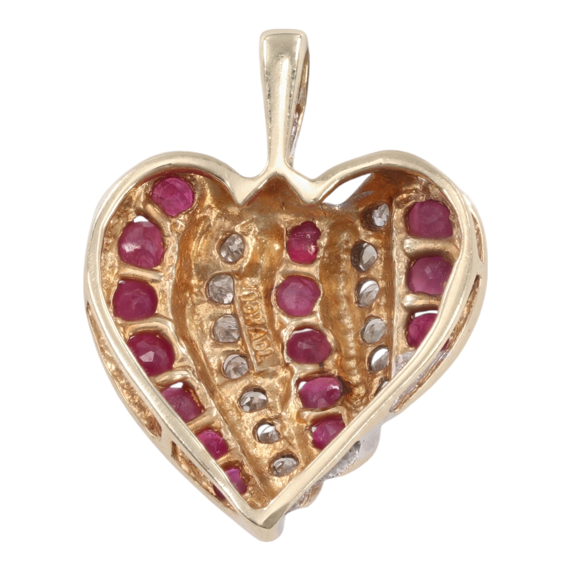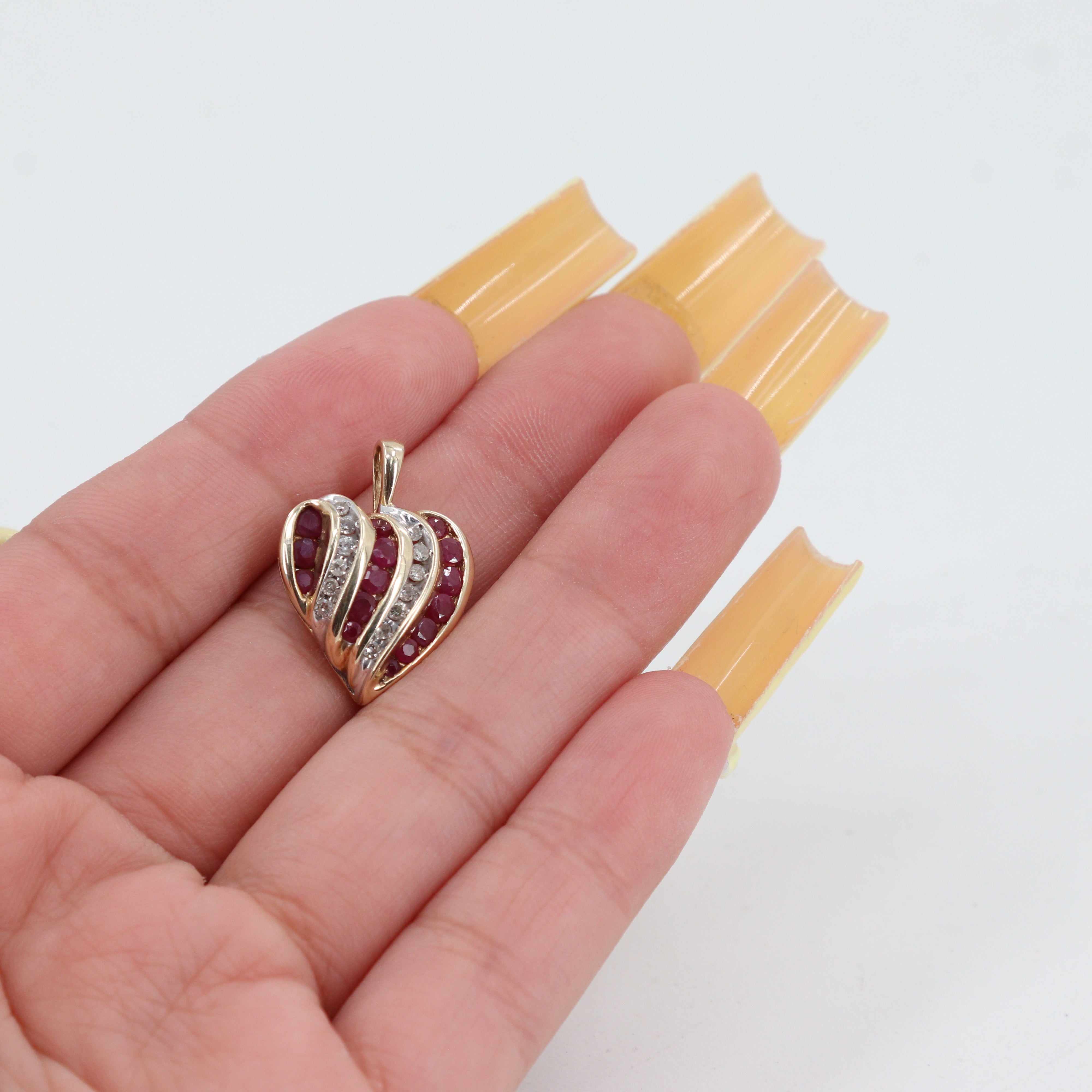 10k Yellow Gold Ruby and Diamond Channel Set Heart Pendant