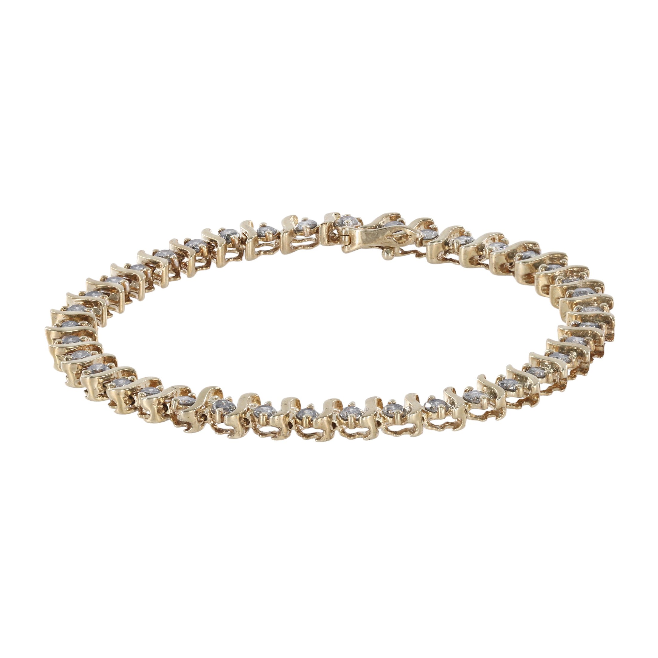 10K Yellow Gold Salt And Pepper Diamond S Link Tennis Bracelet 1.90Ctw