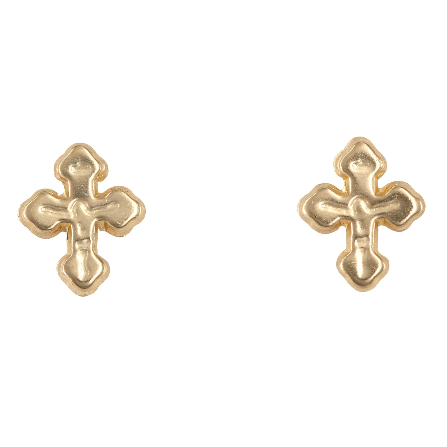 10K Yellow Solid Gold Micro Cross Studs Jesus Crucifix Engraving