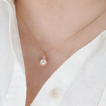 14k Rose Gold Dainty Rope Pearl and Diamond Necklace