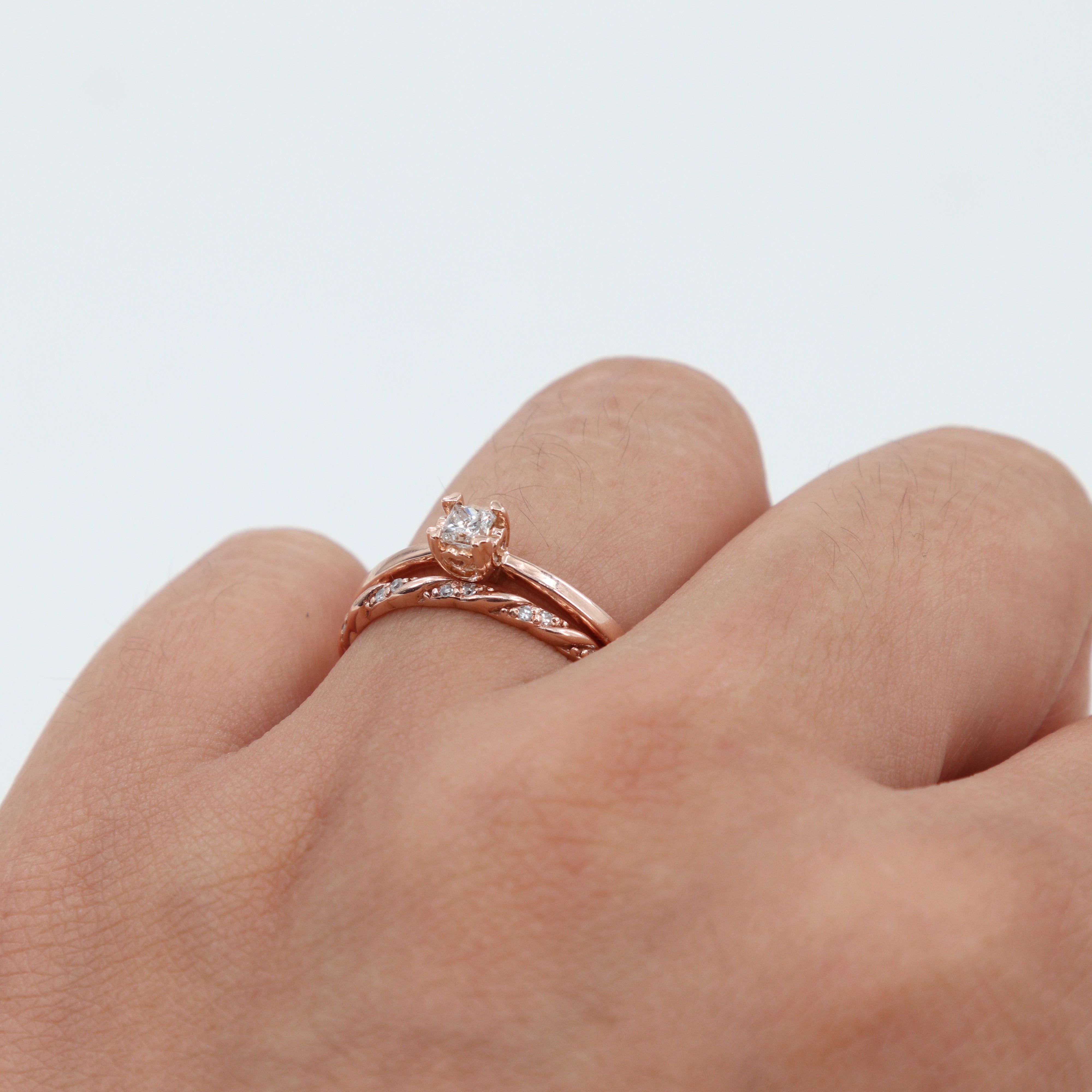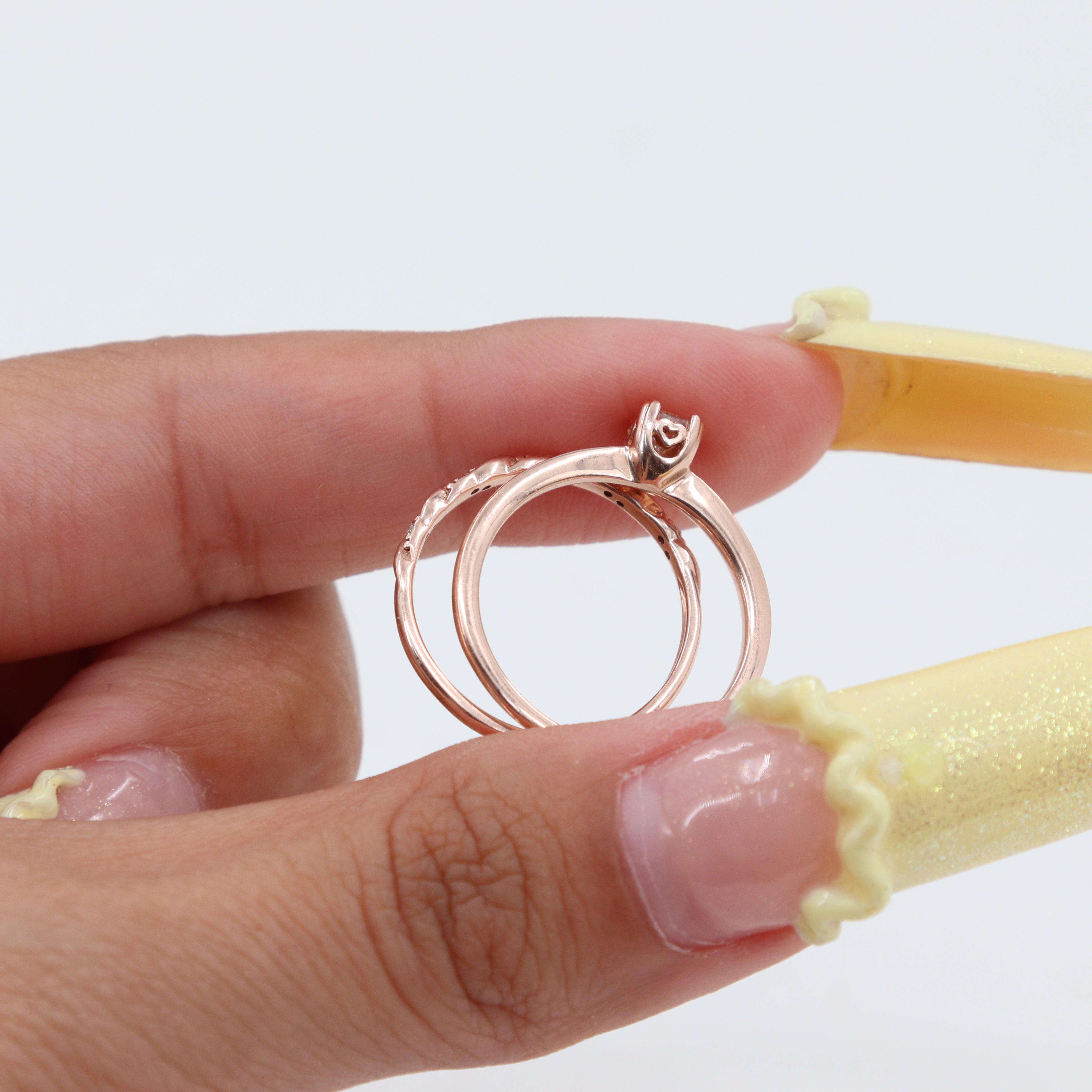 14k Rose Gold Princess Cut Diamond Wedding Ring Set
