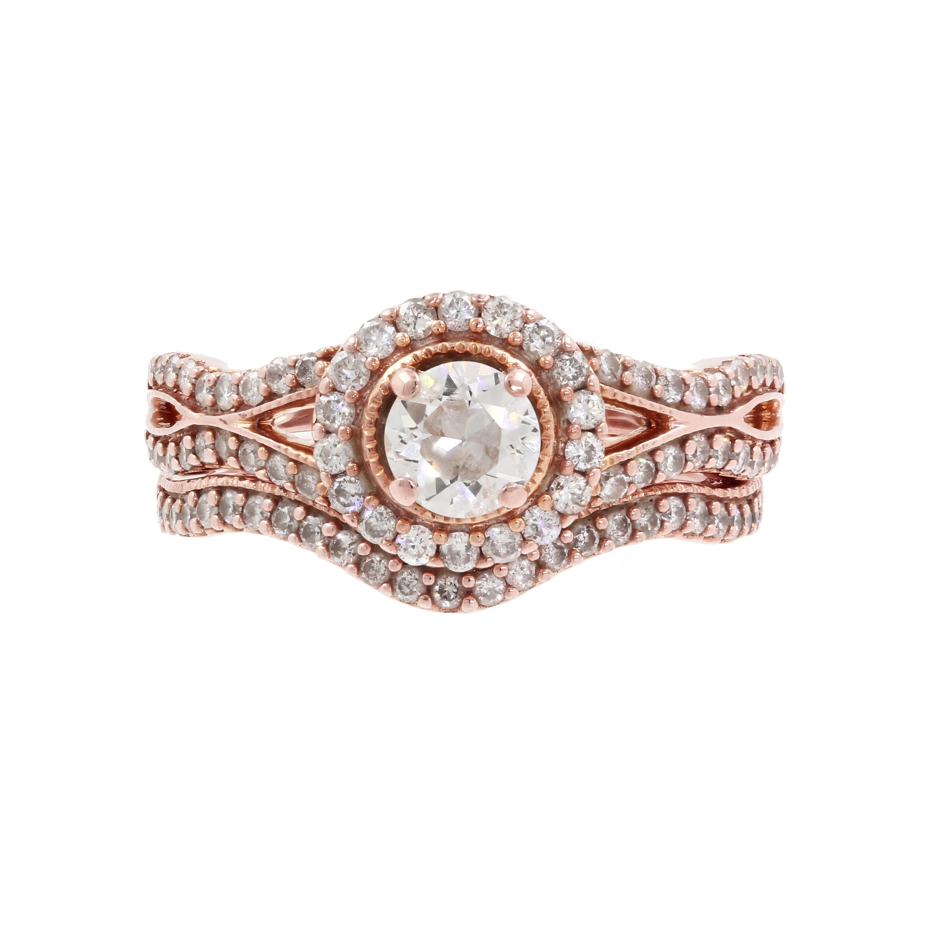 14k Rose Gold Round Brilliant Diamond Solitaire Halo Engagement Ring Set 1.38ctw
