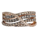 14K Rose Gold White And Light Brown Diamond Wavy Crossover Ring