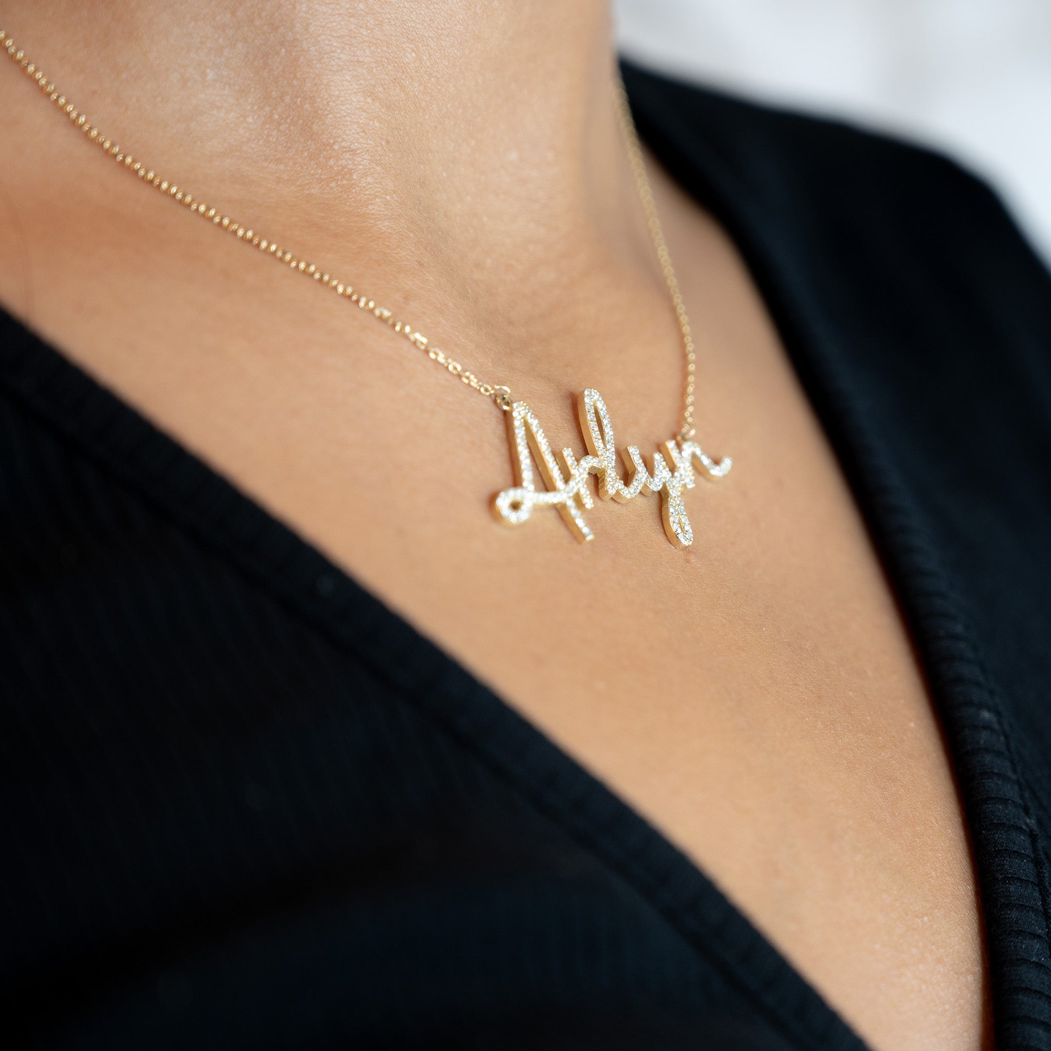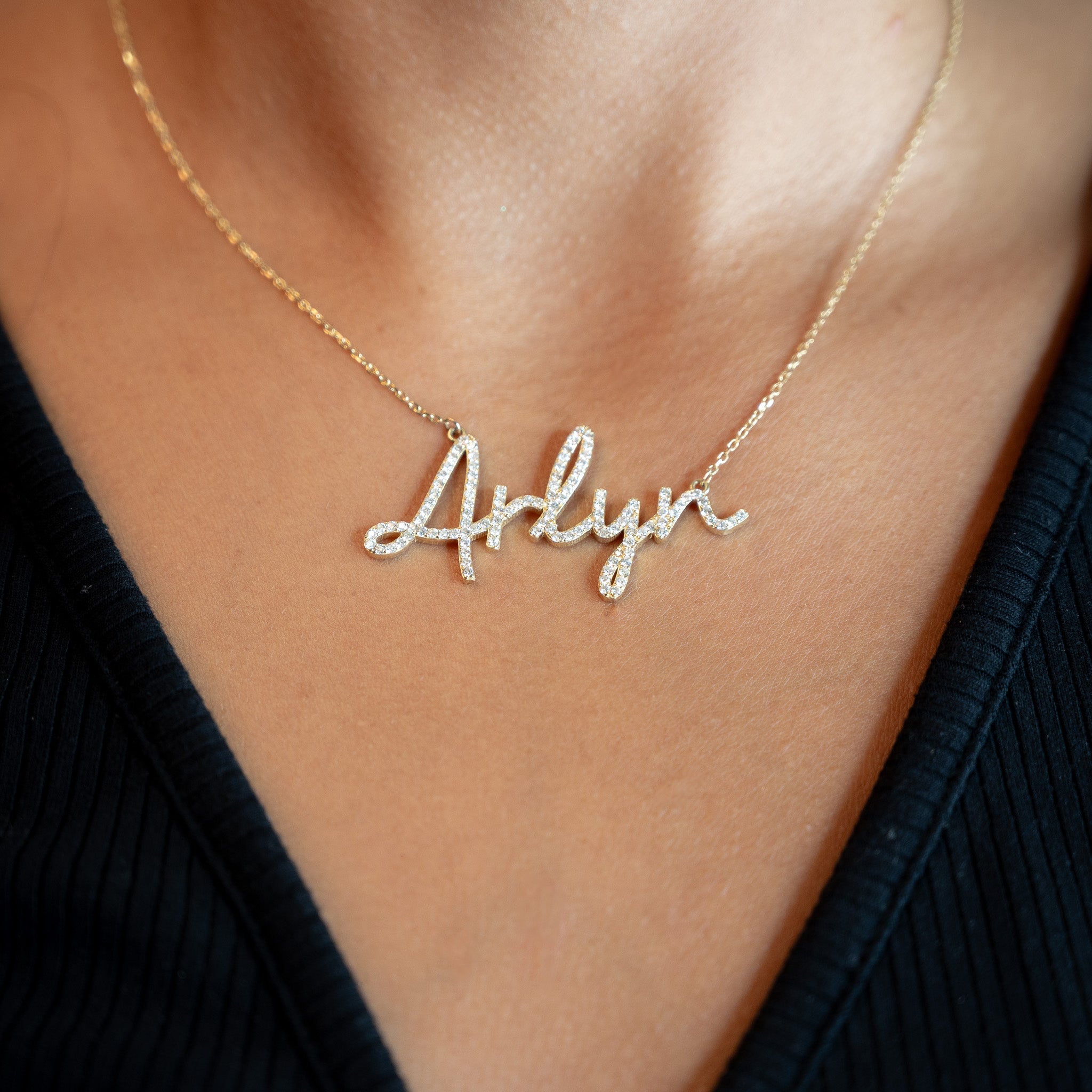 14K Solid Gold Diamond Personalized Name "Arlyn" Necklace