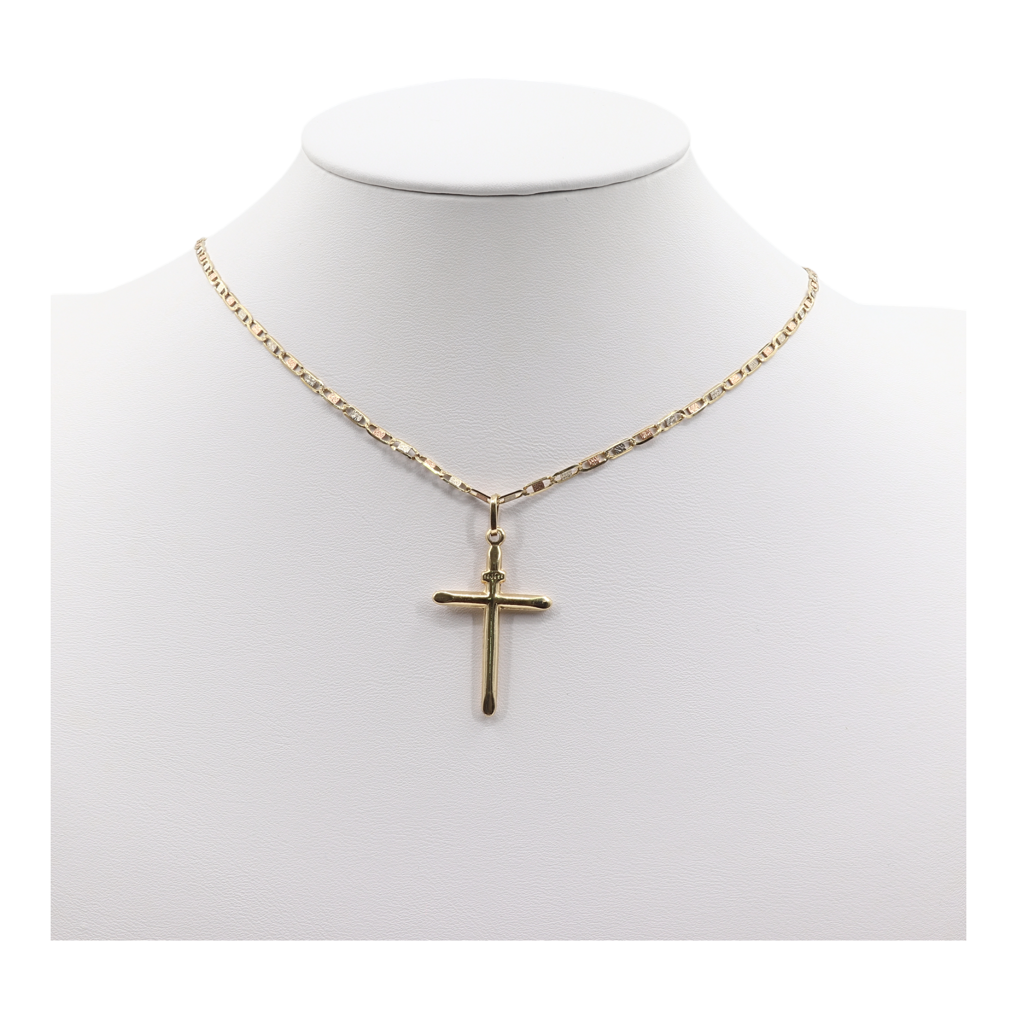 14k Tri-color Gold 19” Valentino Chain with Yellow Gold Cross Pendant/ Real Gold Cross Necklace/