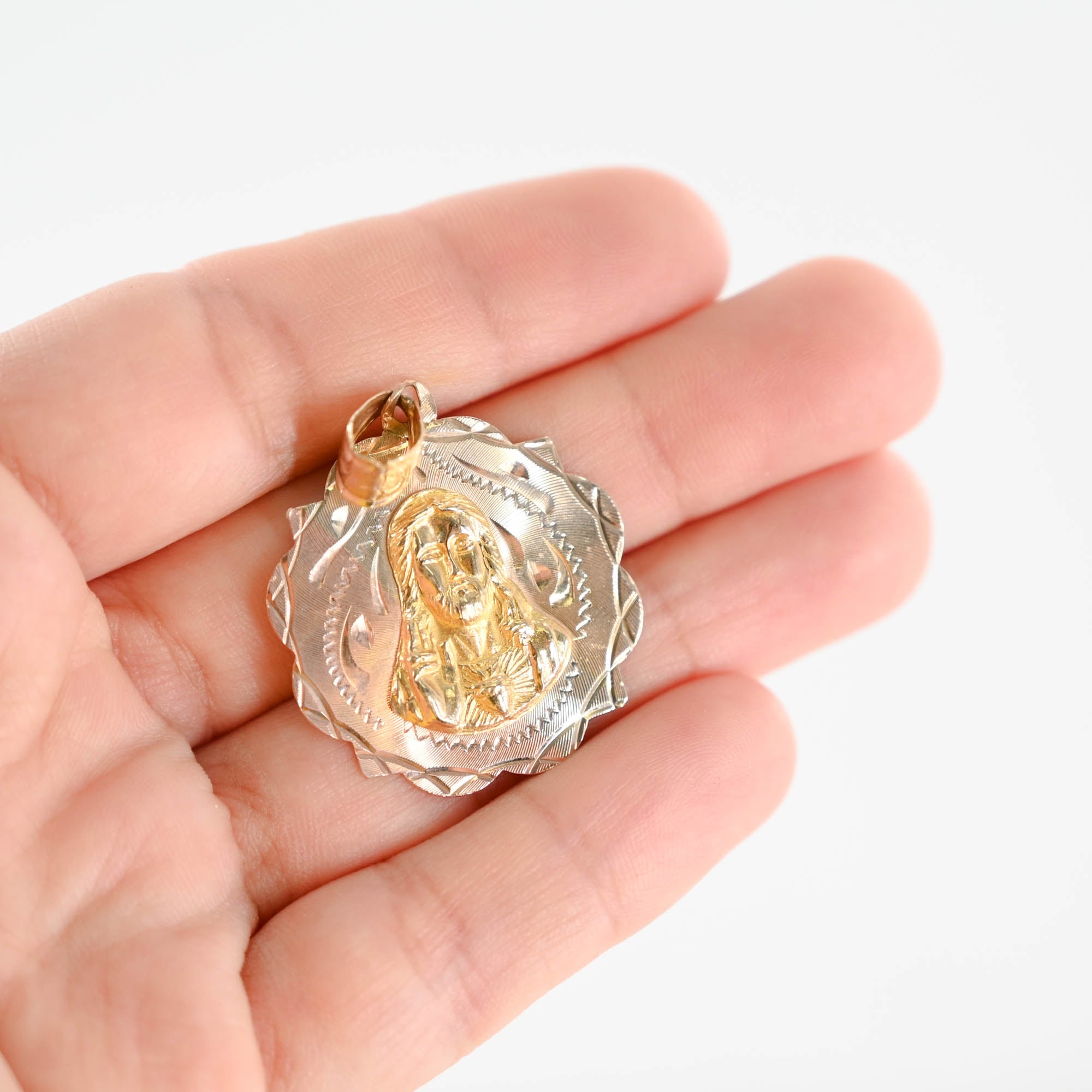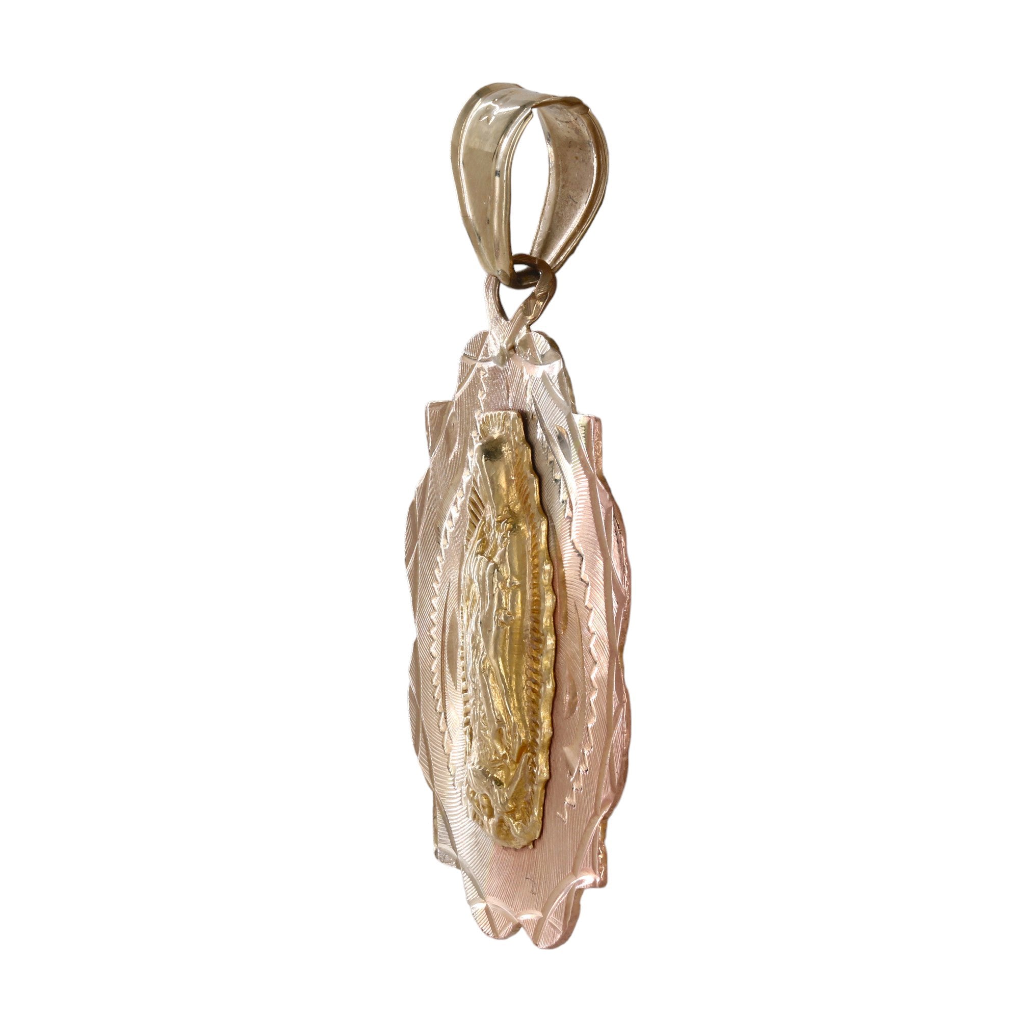 14k Tri-Tone Gold Diamon-Cut Lady Guadalupe And Crist Pendant