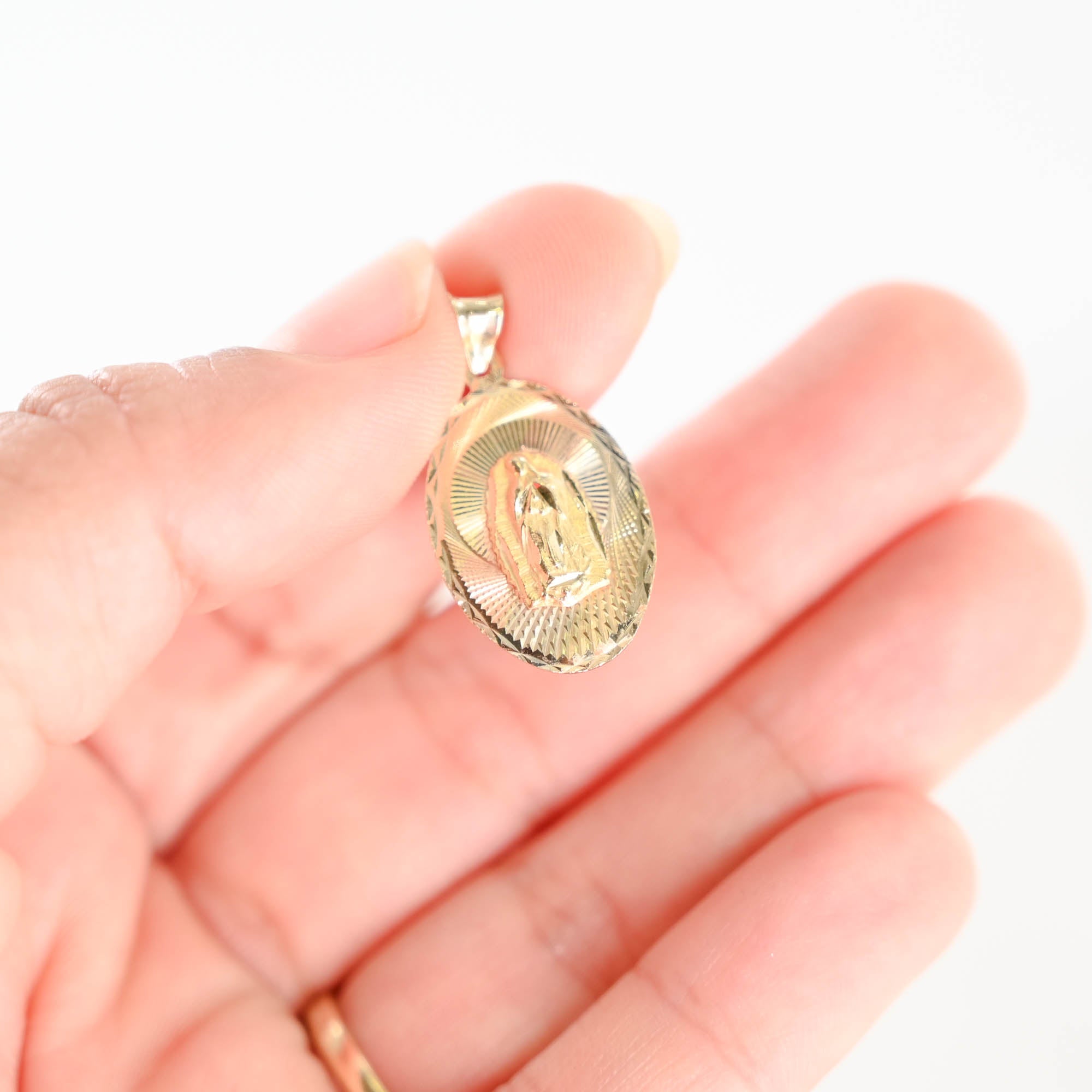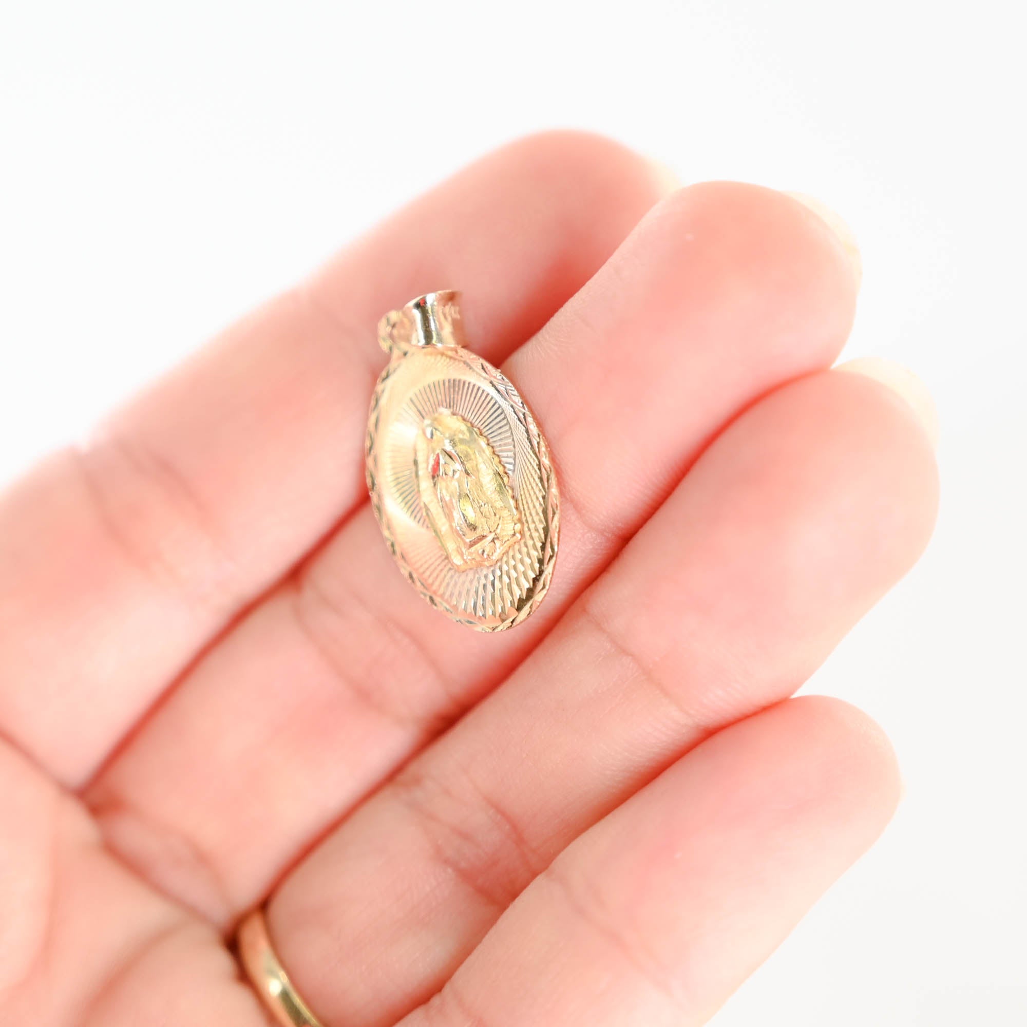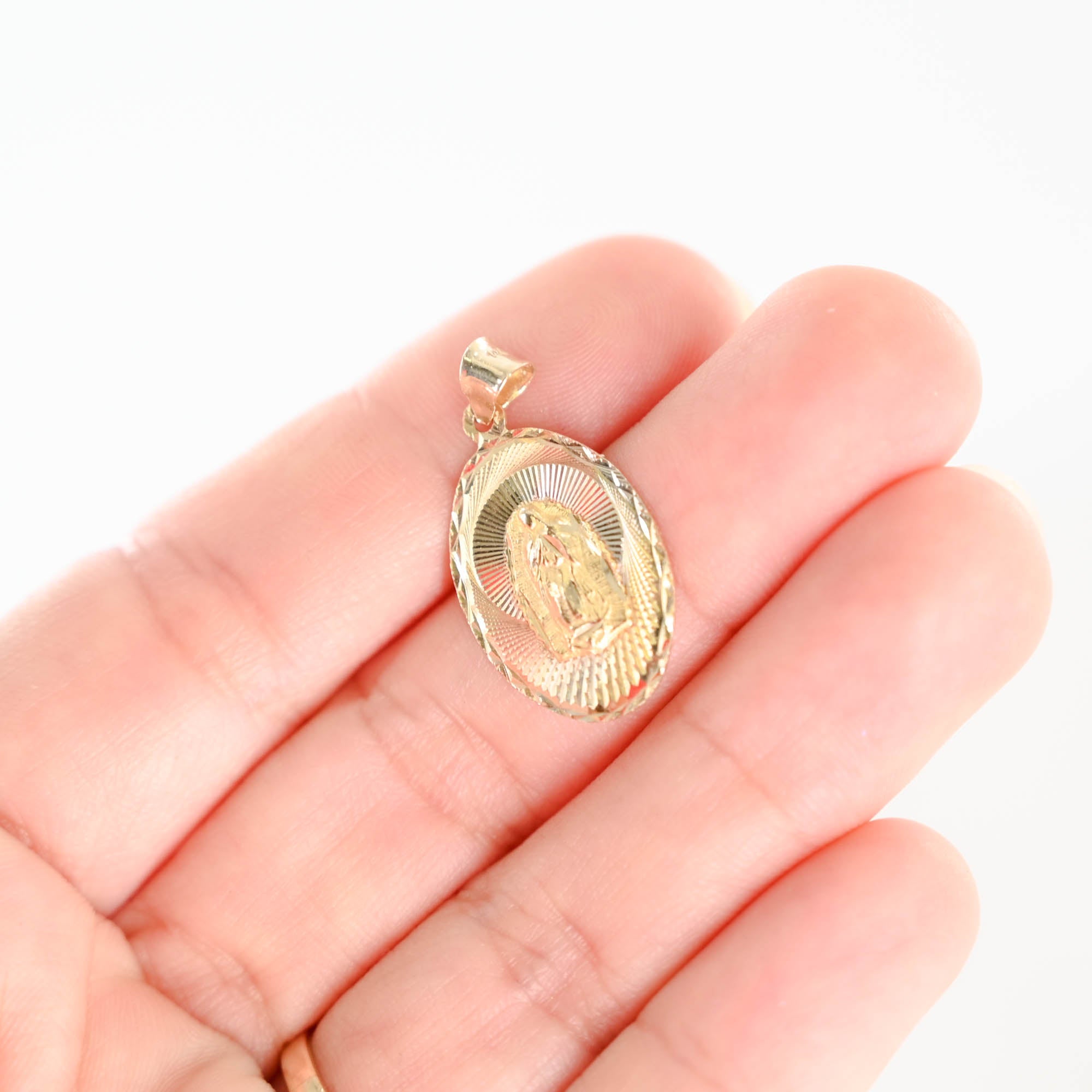 14k Tricolor Gold Virgin Mary Pendant