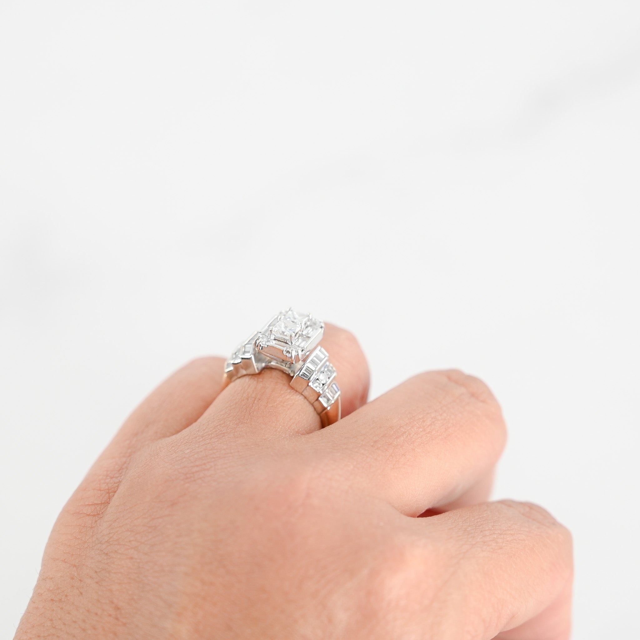Elevate your proposal with this stunning 14k Two-Tone Gold Engagement Ring featuring two captivating Princess Cut Diamonds at its center. The unique two-tone design adds a modern twist to a classic style, creating a timeless piece that symbolizes your enduring love. Meticulously crafted with precision, the ring is a blend of sophistication and elegance.