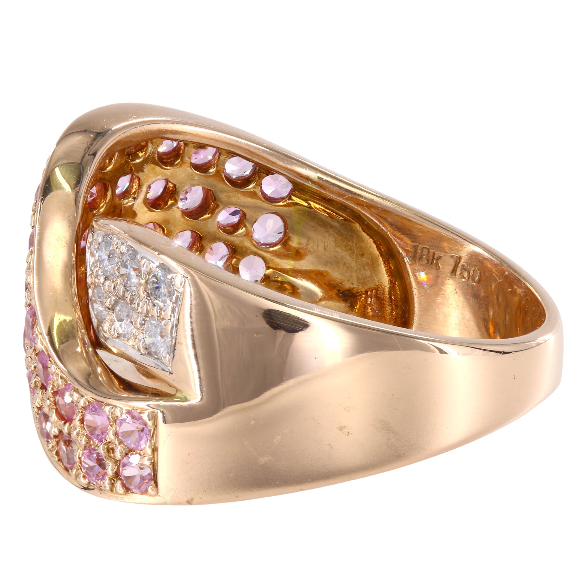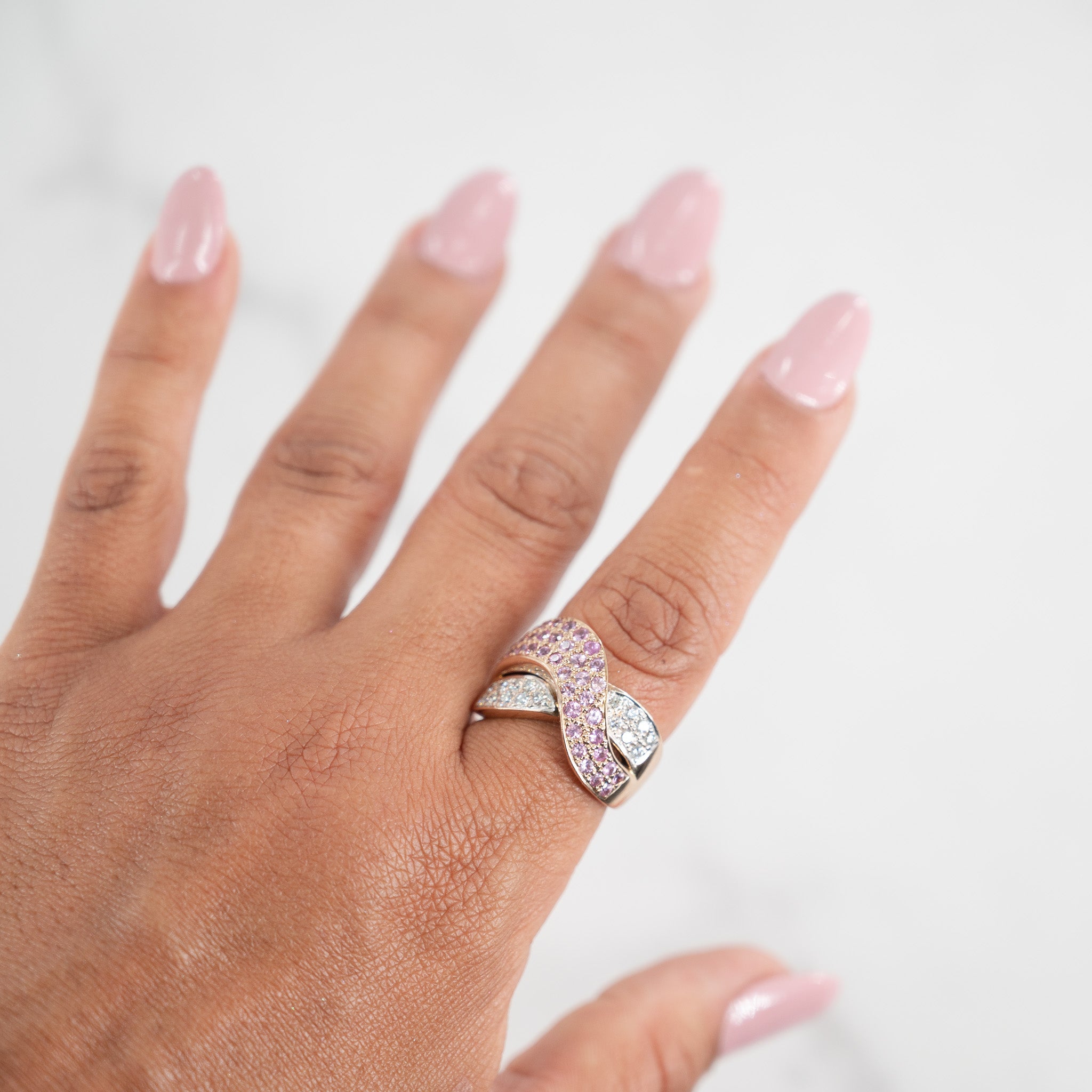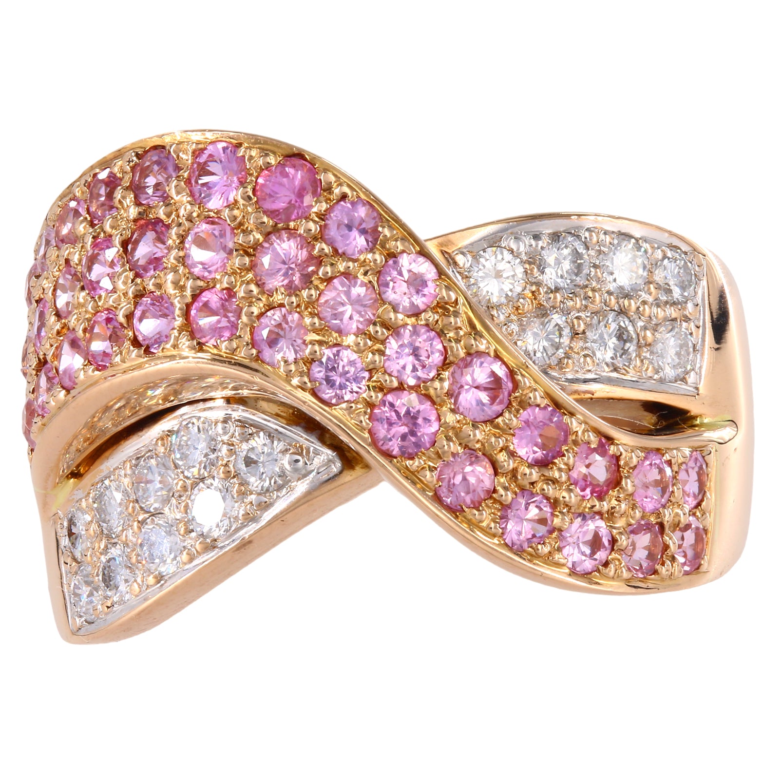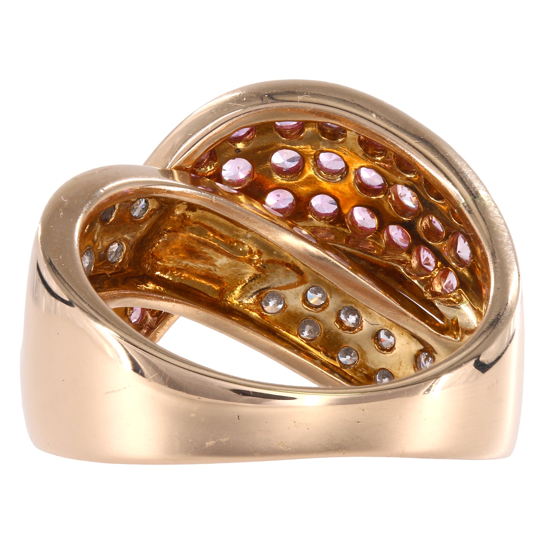 14K Two Tone Gold Diamond Pink Sapphire Crossover Band Ring