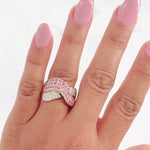 14K Two Tone Solid Gold Diamond Pink Sapphire Crossover Band Ring