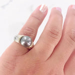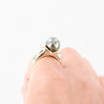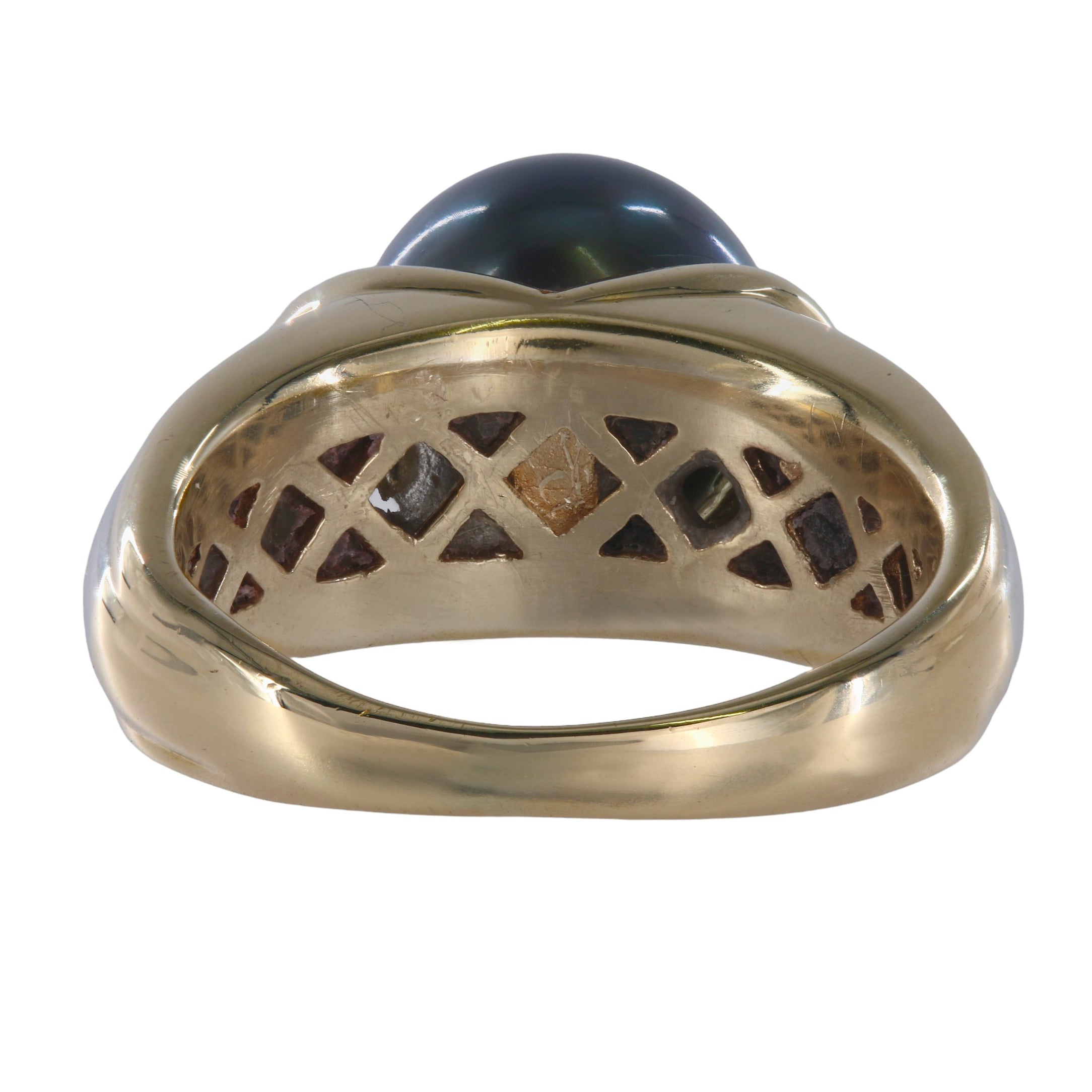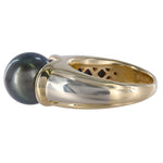 14K Two-Tone Gold Tahitian Black Natural Pearl Cocktail Ring