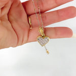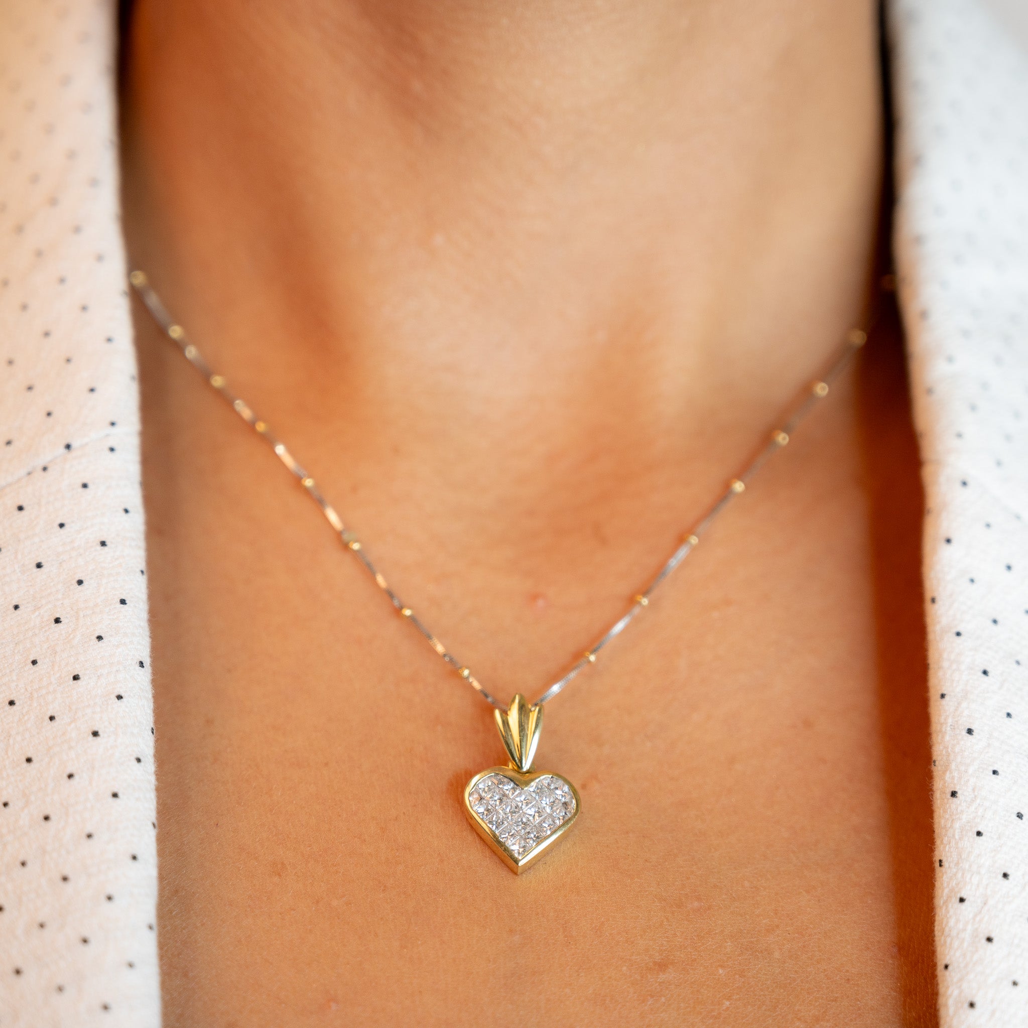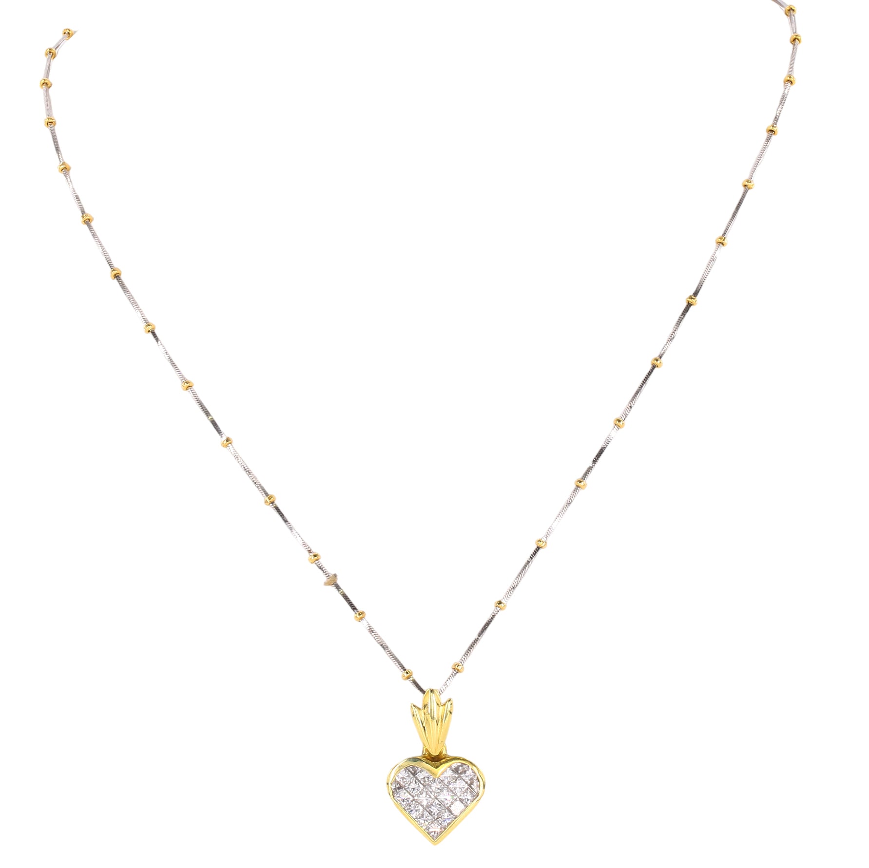 14K Two Tone Solid Gold Snake With Accents Necklace And Diamond Heart Pendant