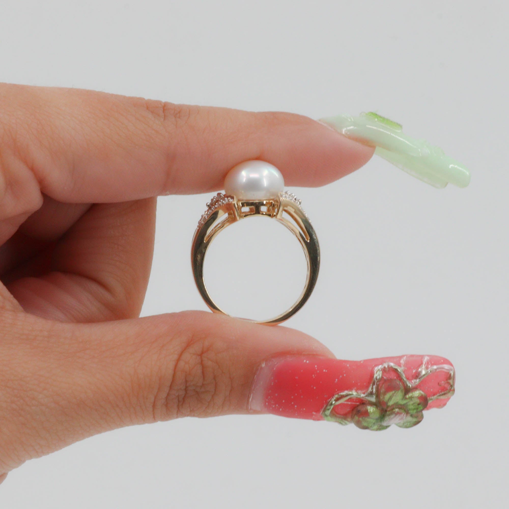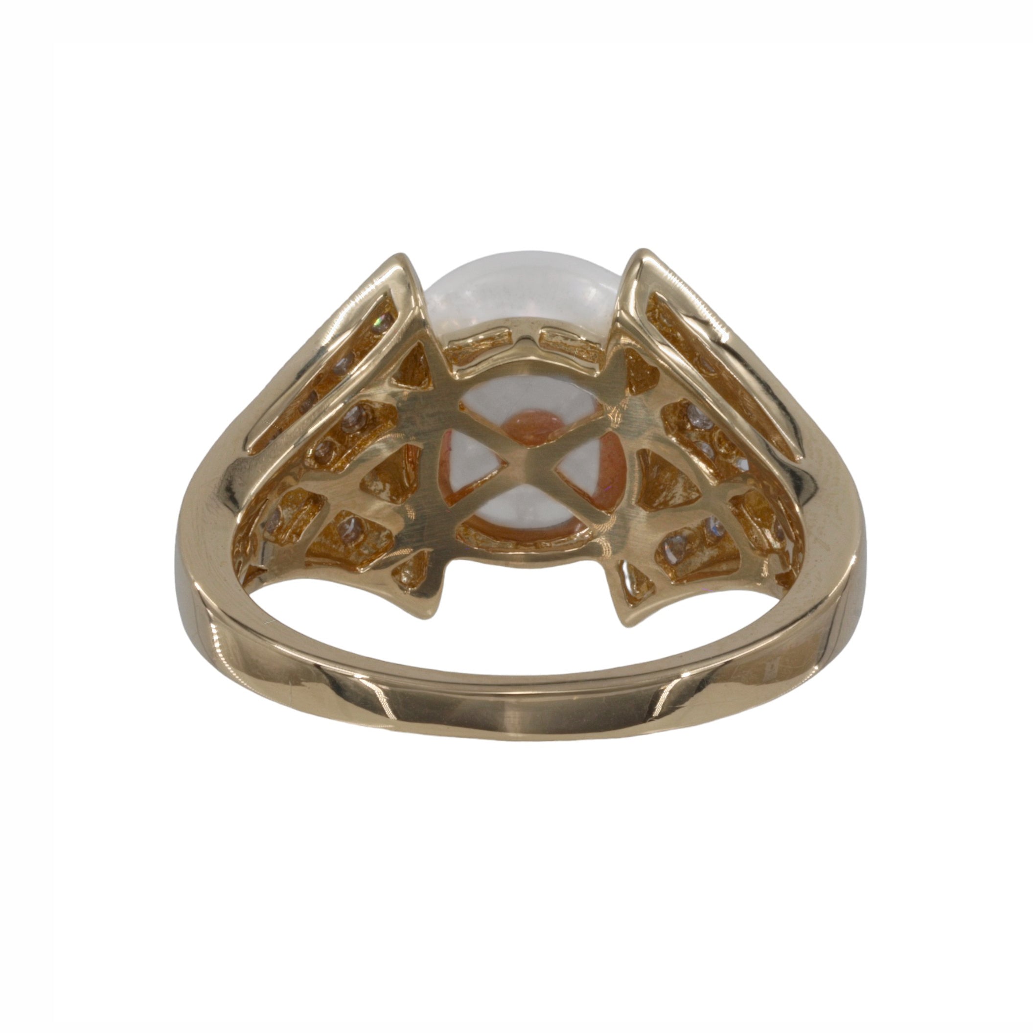 Discover the timeless elegance of the 14k Vintage Estate Yellow Gold Pearl and Diamond Cocktail Ring. Featuring a captivating 9.9mm pearl and 22 single-cut diamonds totaling 0.11ctw, this ring exudes sophistication. Crafted from 14k yellow gold, it offers lasting durability and charm, weighing 5.2g.