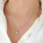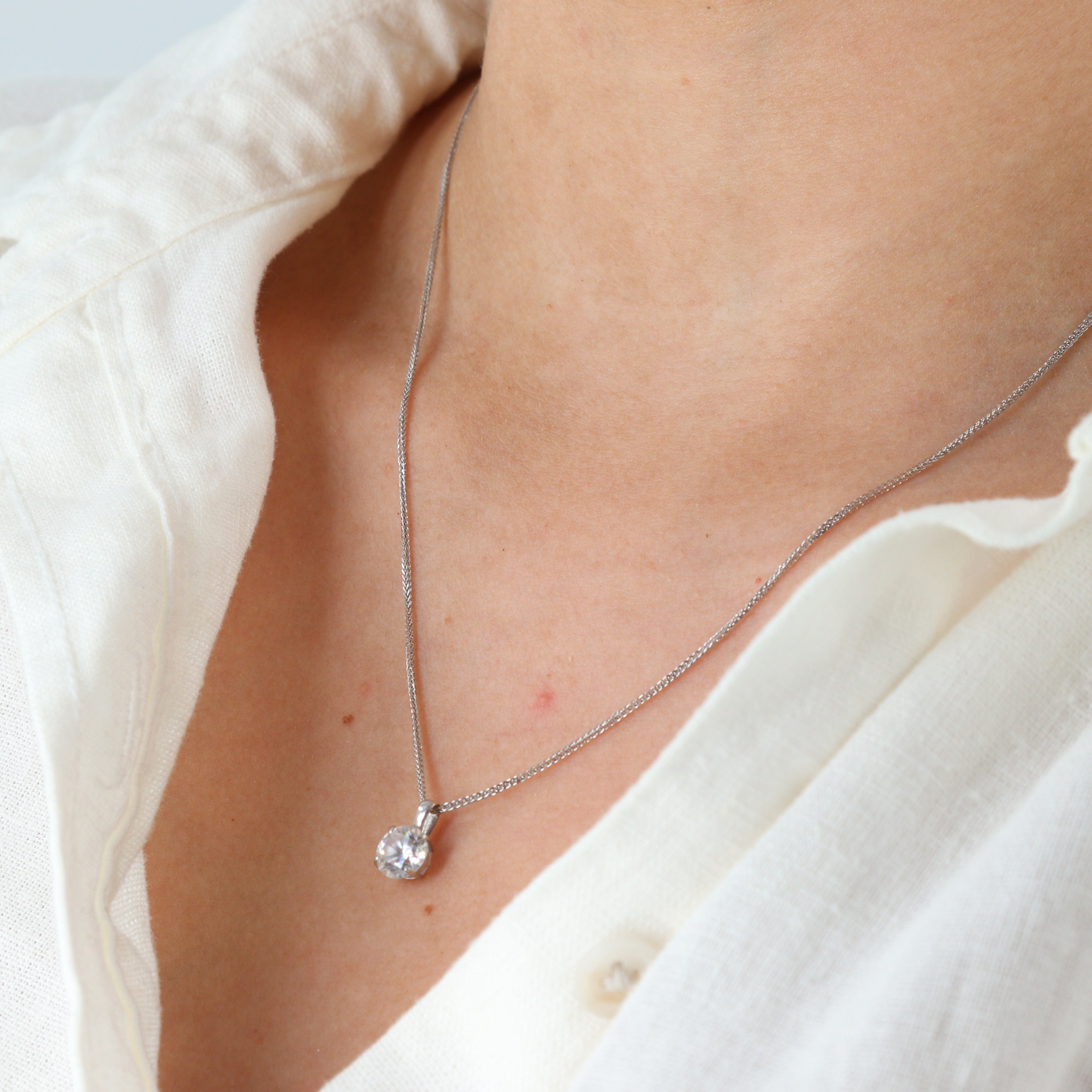 14k White Gold 18” Box Chain Necklace with Quartz Pendant