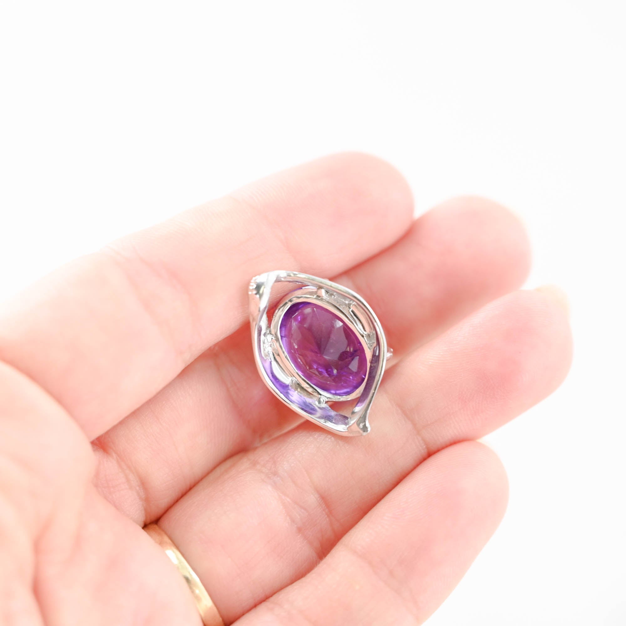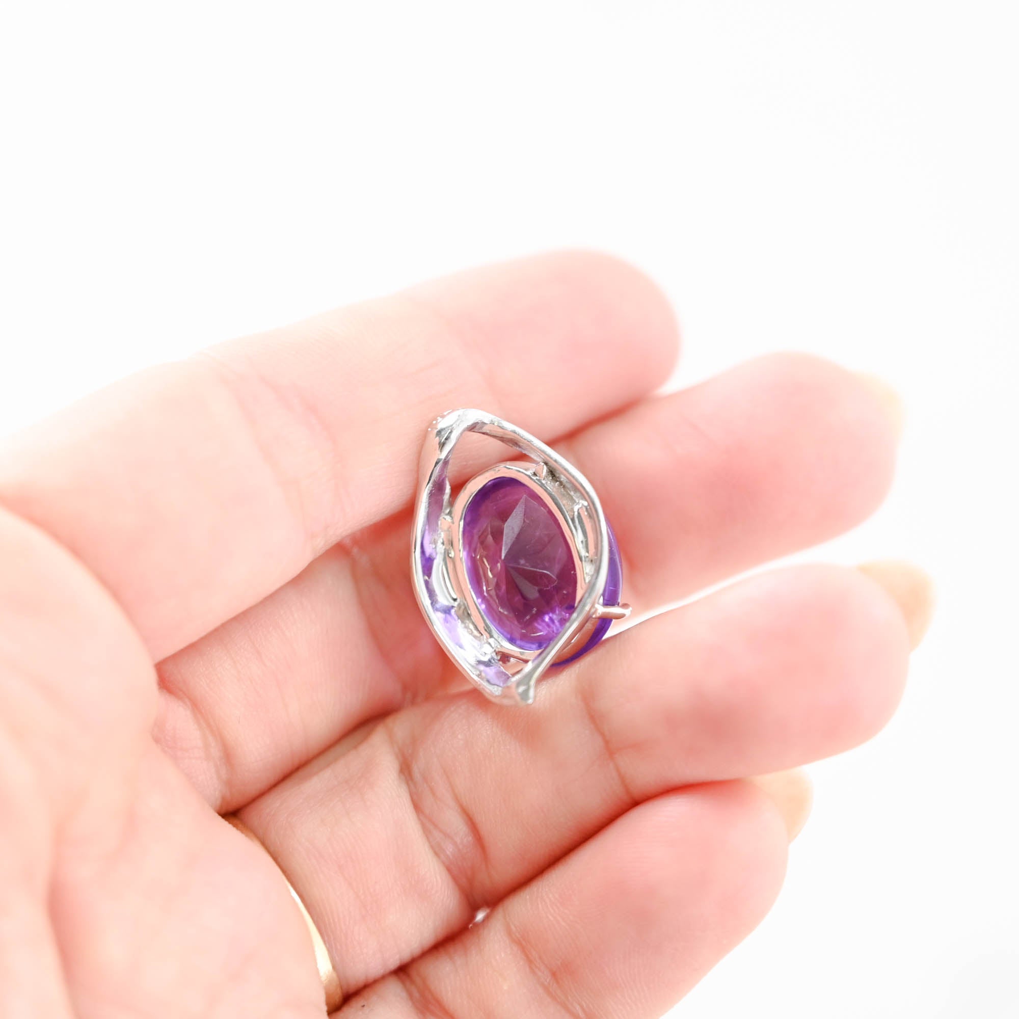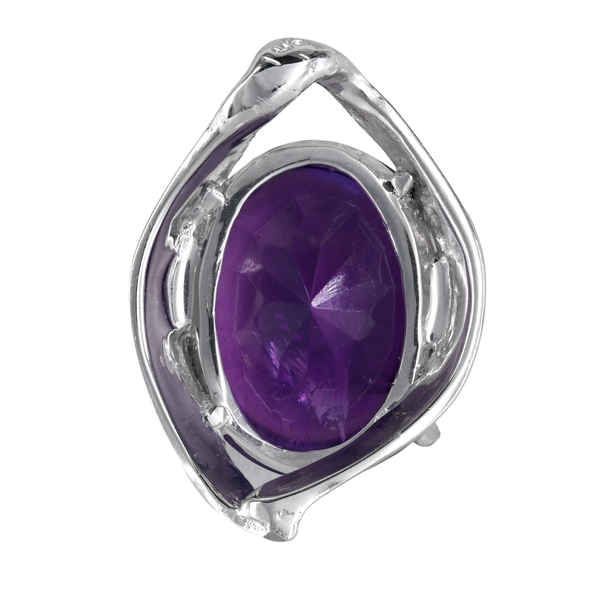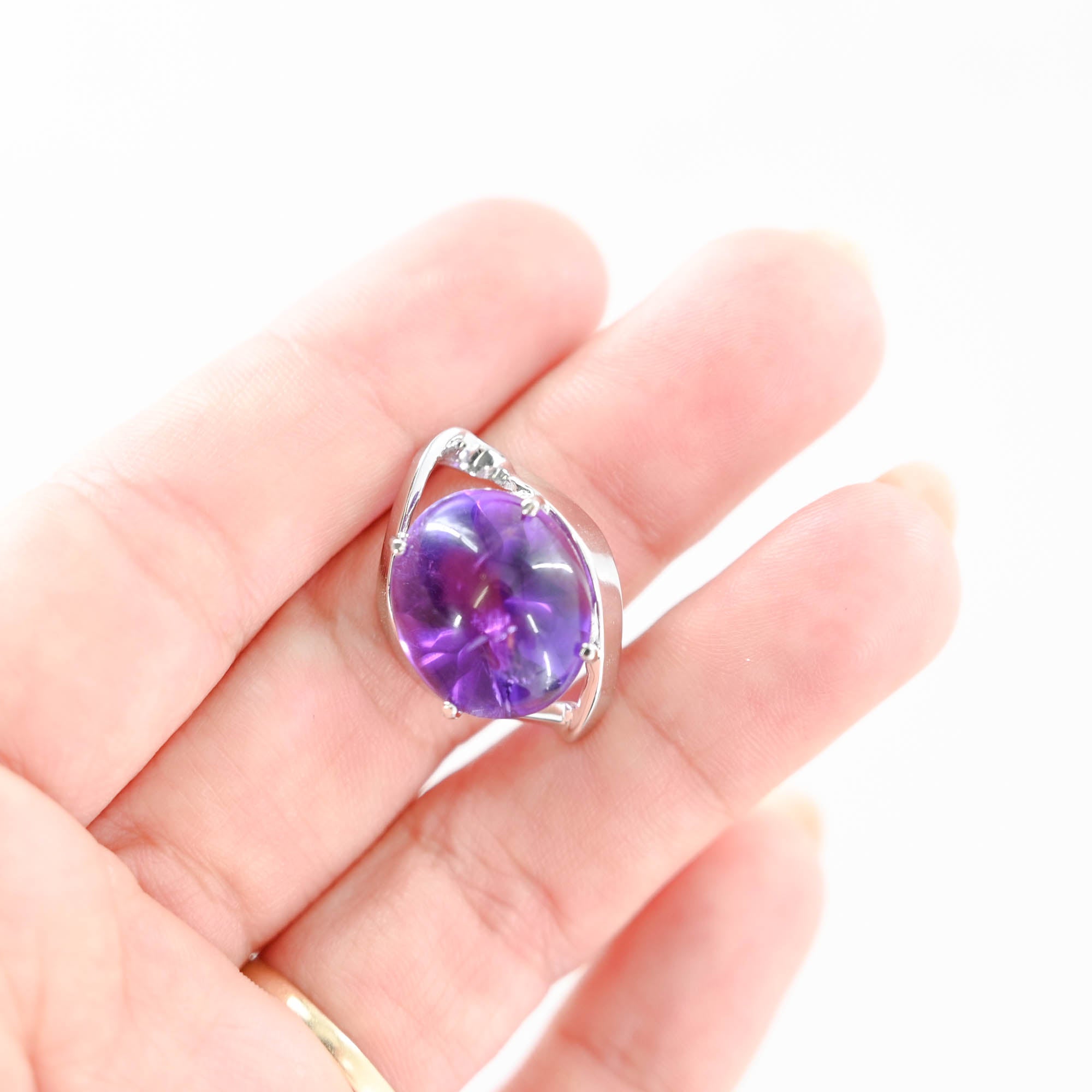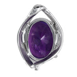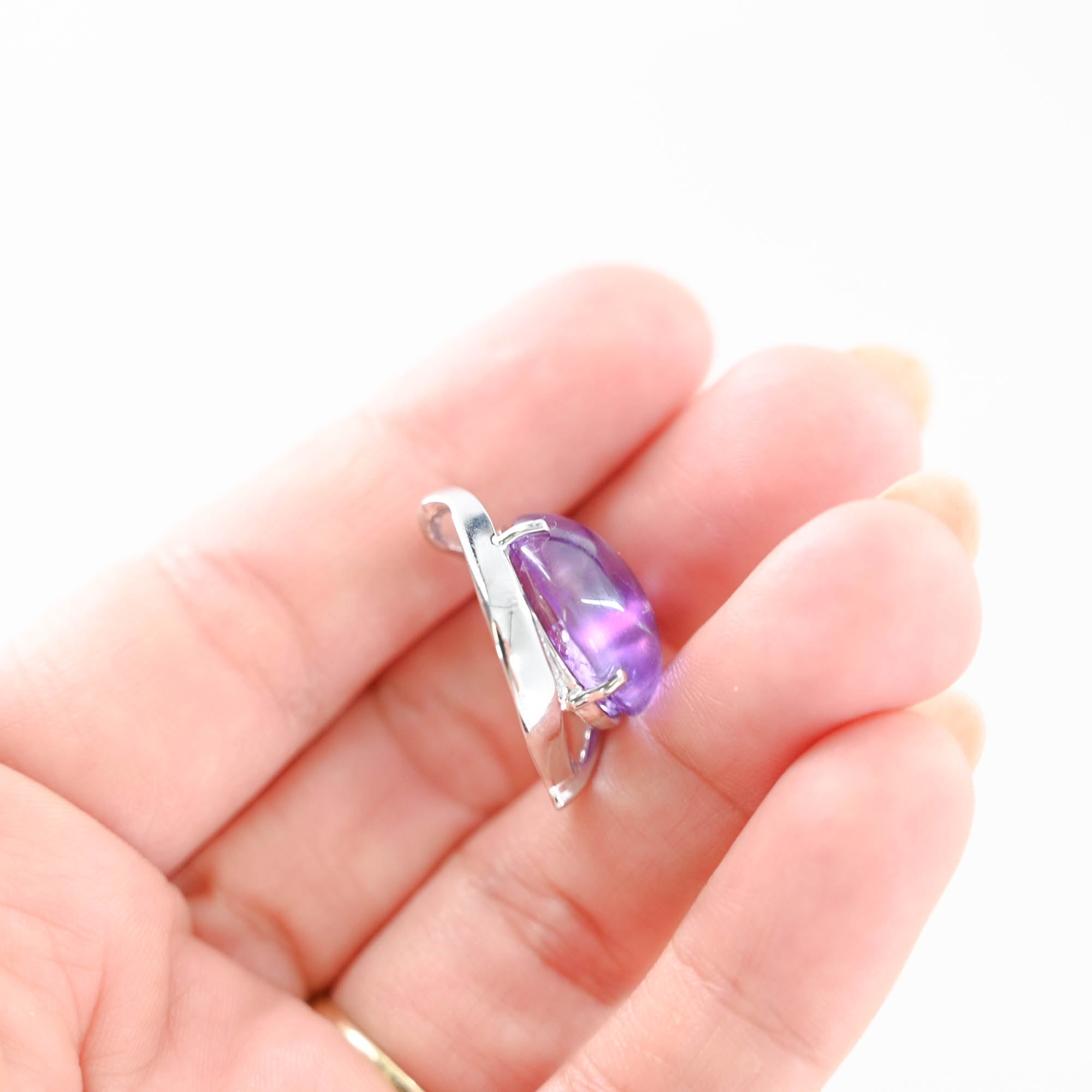 14K White Gold Amethyst Cabochon With Brilliant Faceted Pavillion Pendant
