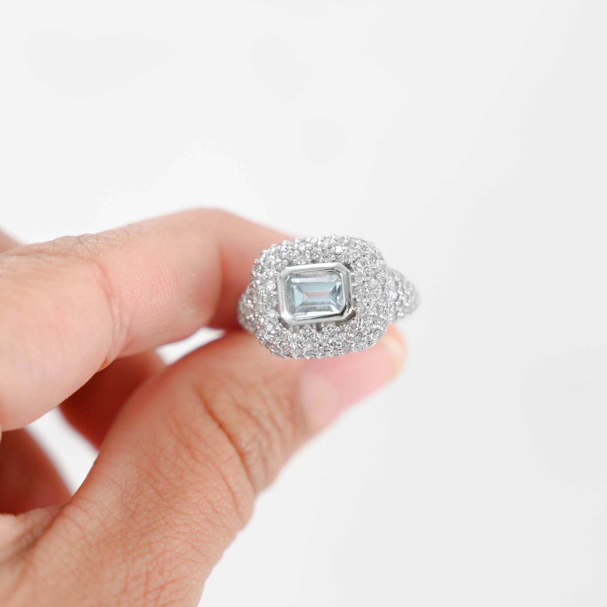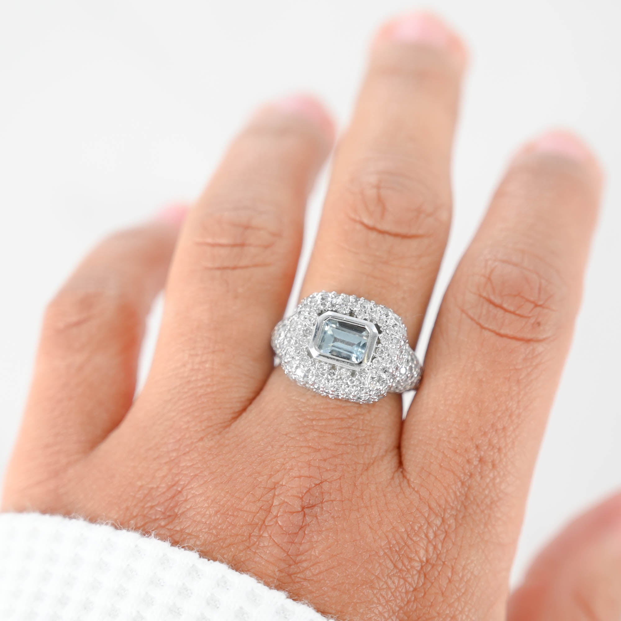 14K White Gold Aquamarine And Diamond Cocktail Ring