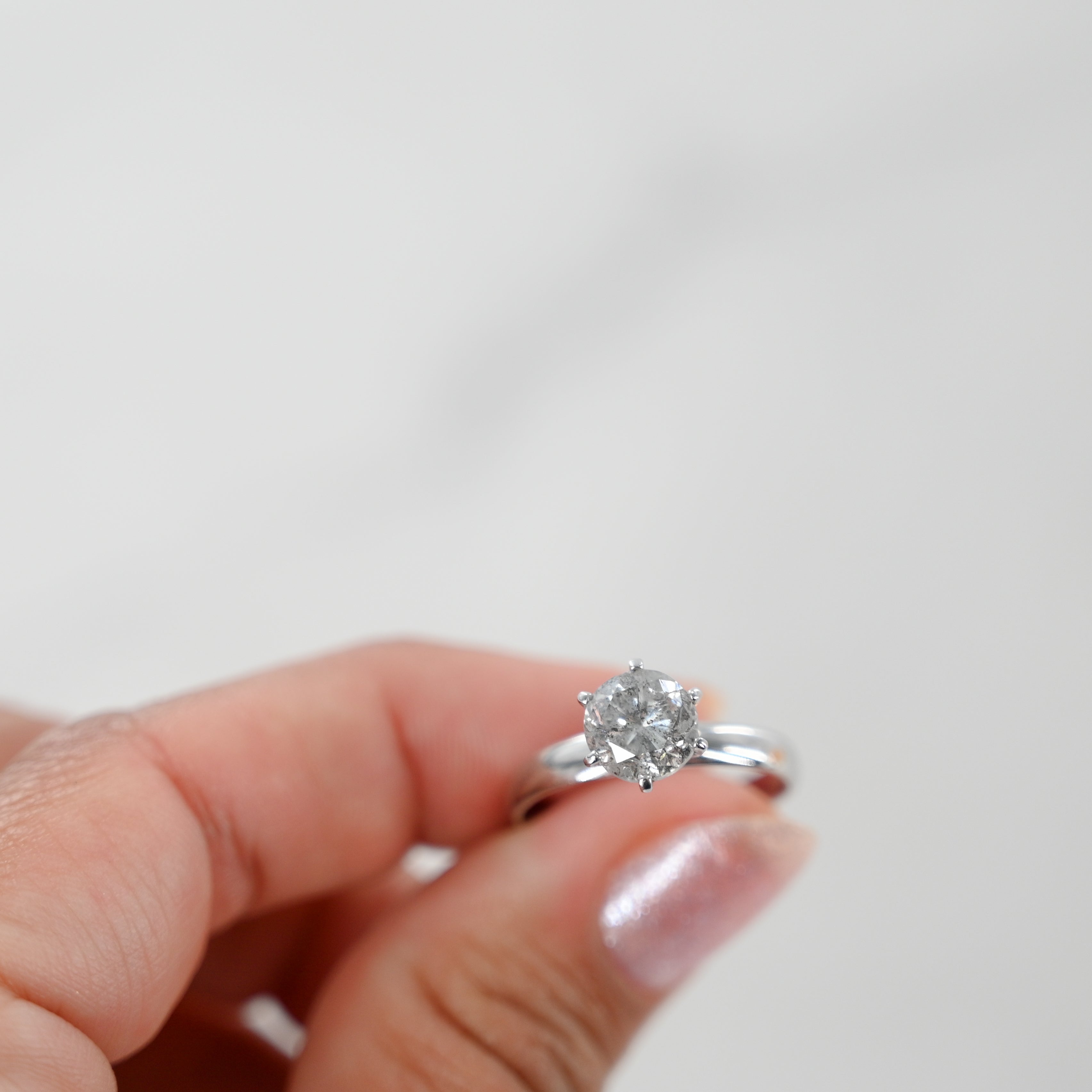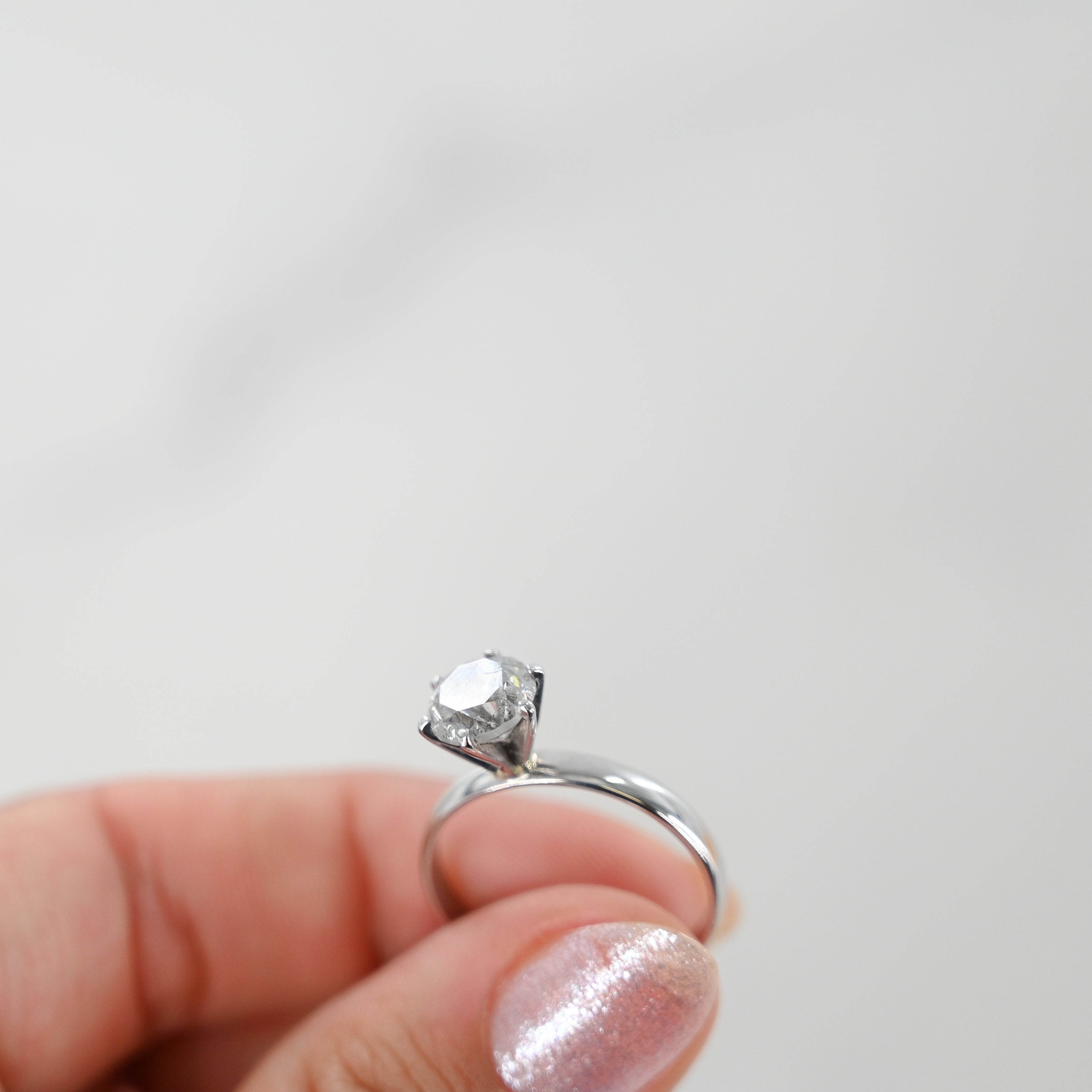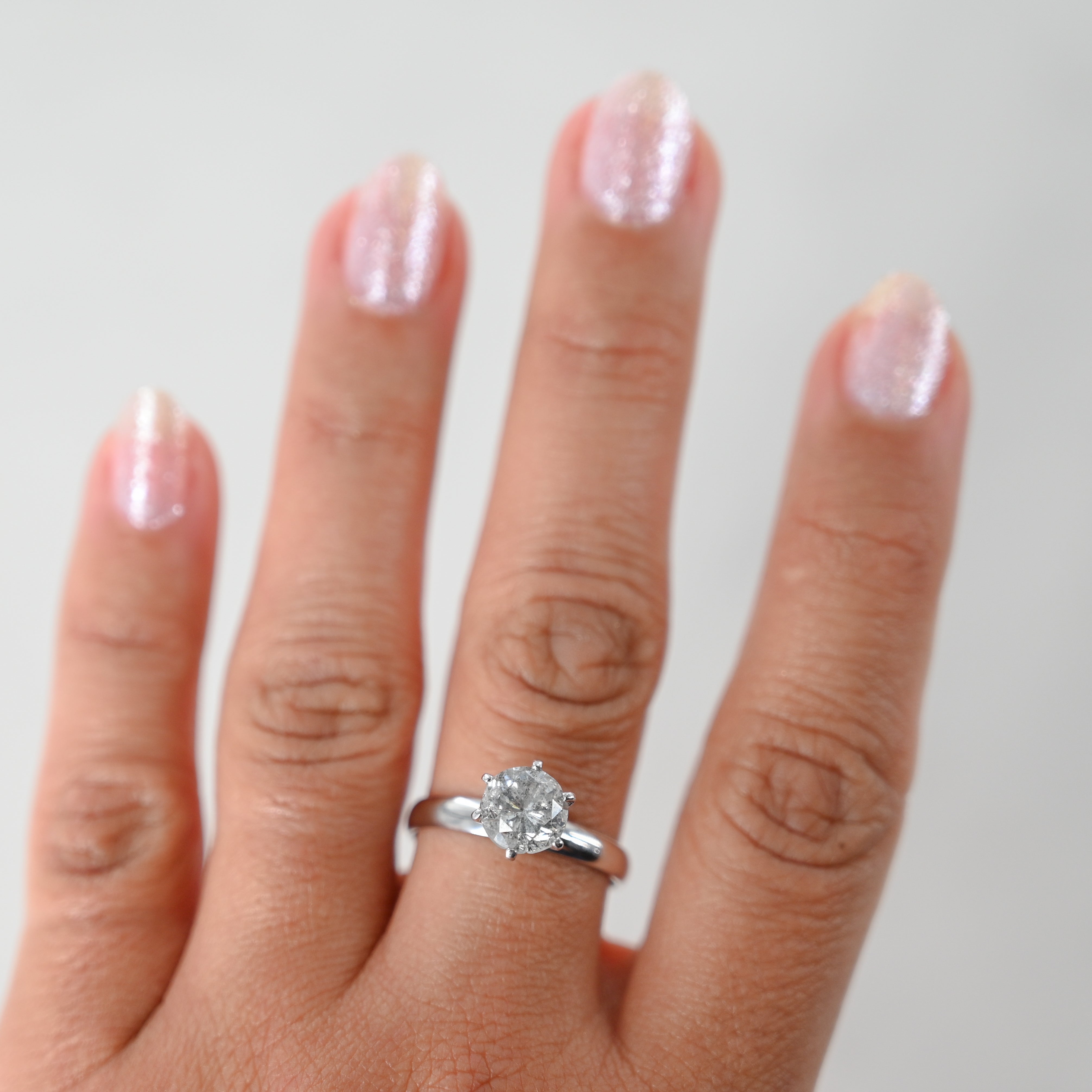 14K White Gold Black Pique Diamond Solitaire Engagement Ring 1.67Ctw