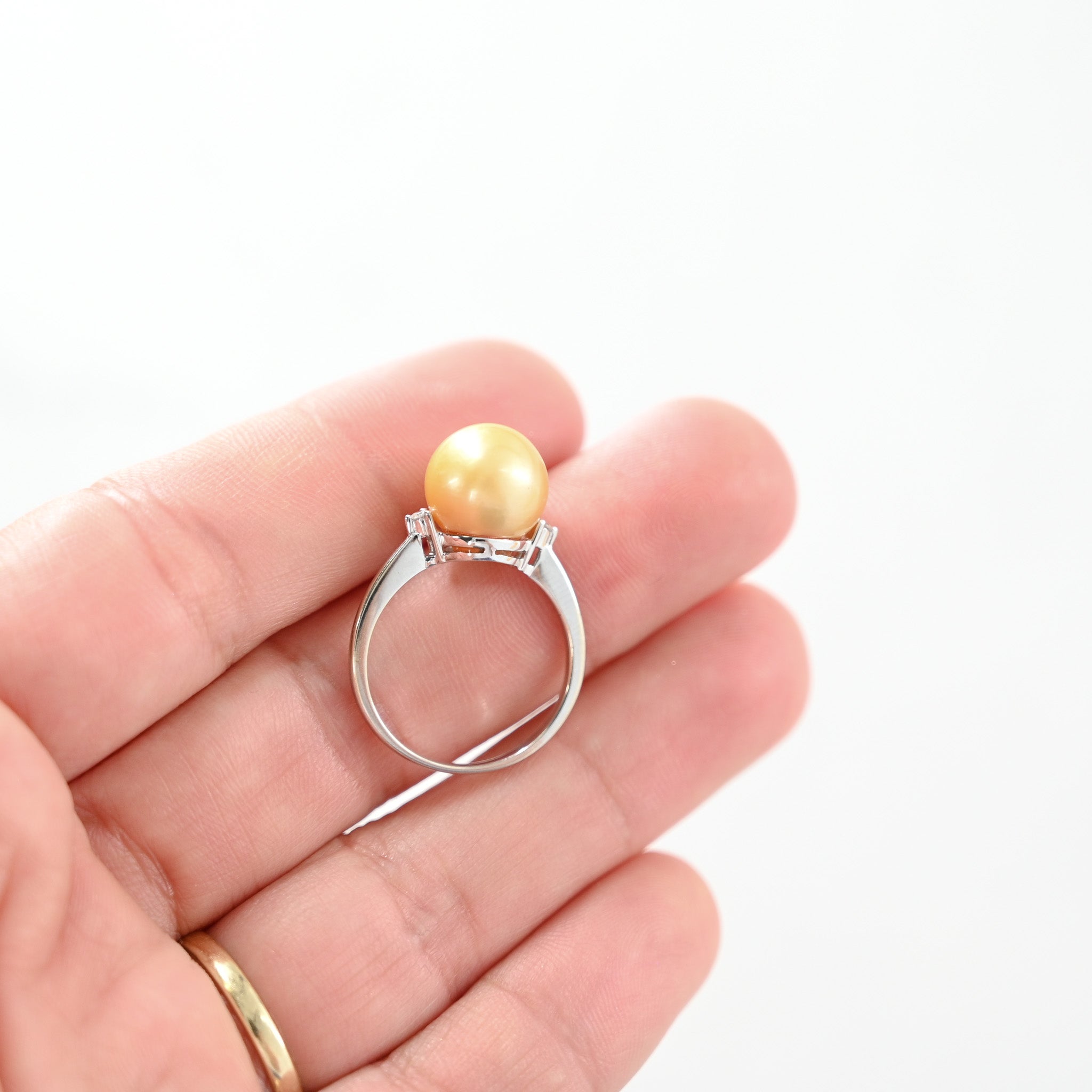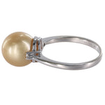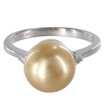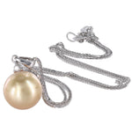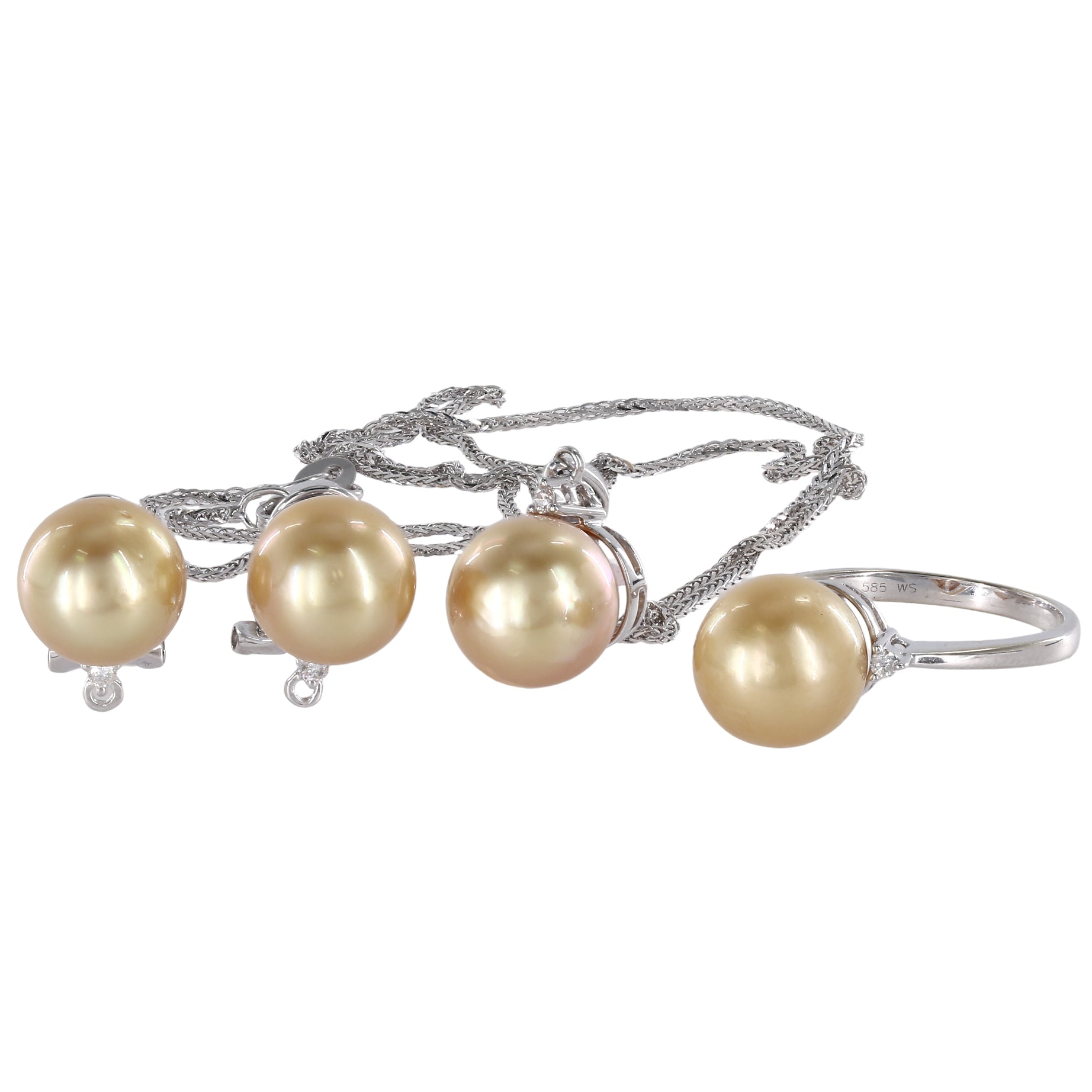14K White Gold Champagne Pearls And Diamond Franco/Wheat Link Chain, Ring And Earrings Set Jewelry
