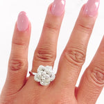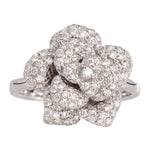 This Vintage 14k Gold and Diamond Ring is lovely! The top of the ring resembles a Rose with a small diamond set in each section. The ring features a white gold top that holds 107 diamonds weighing approximately 1.01 carats.