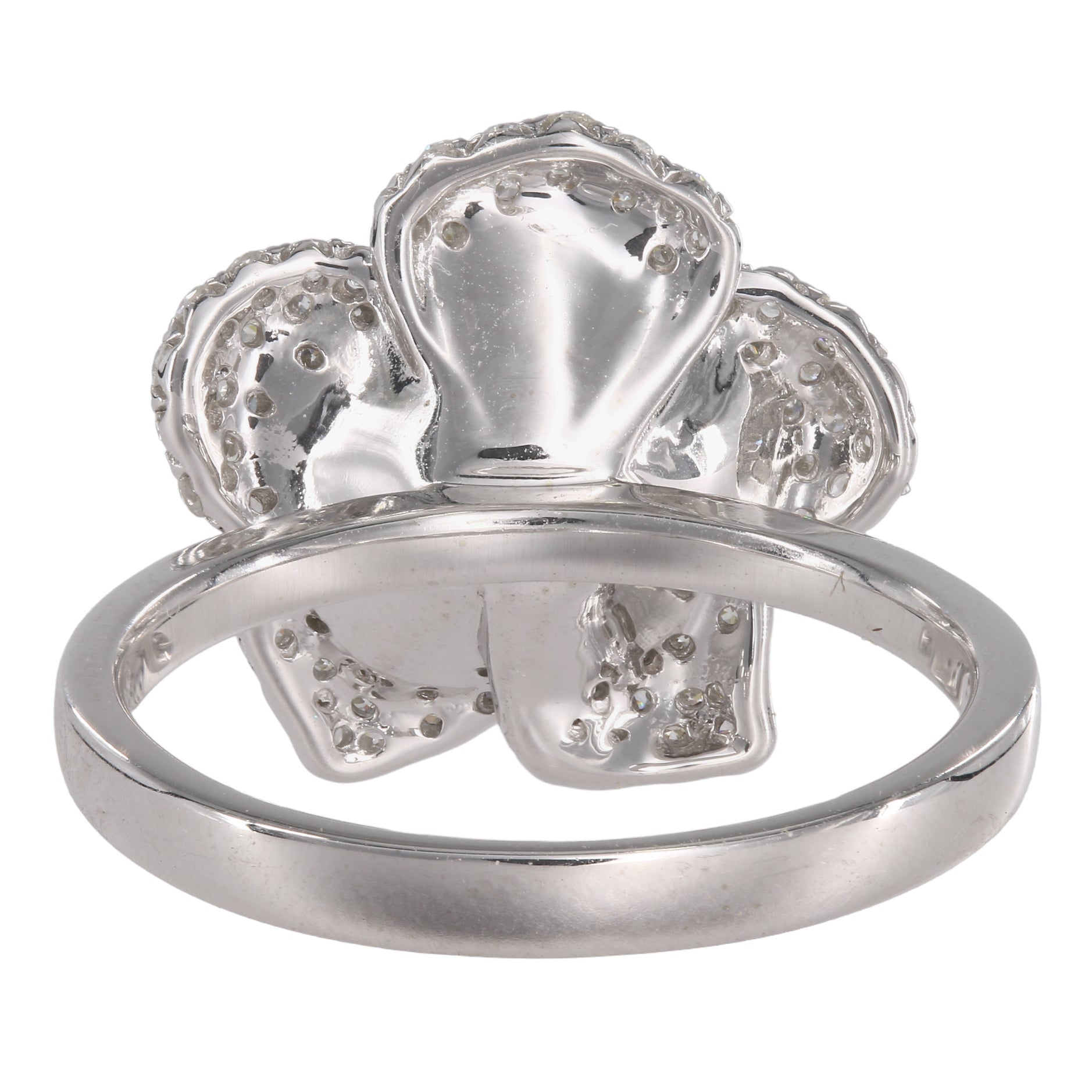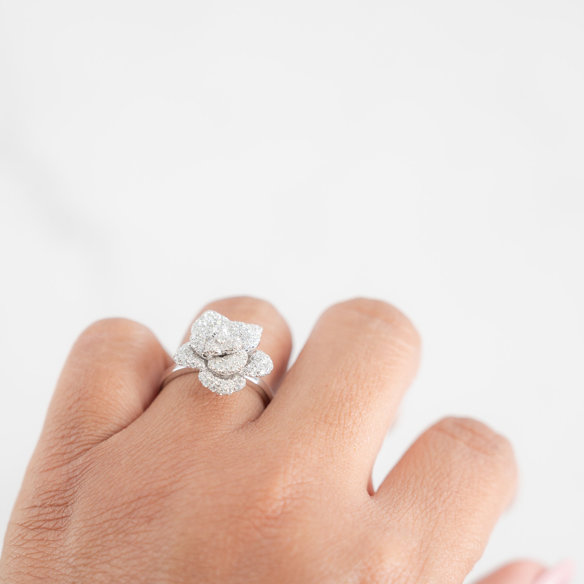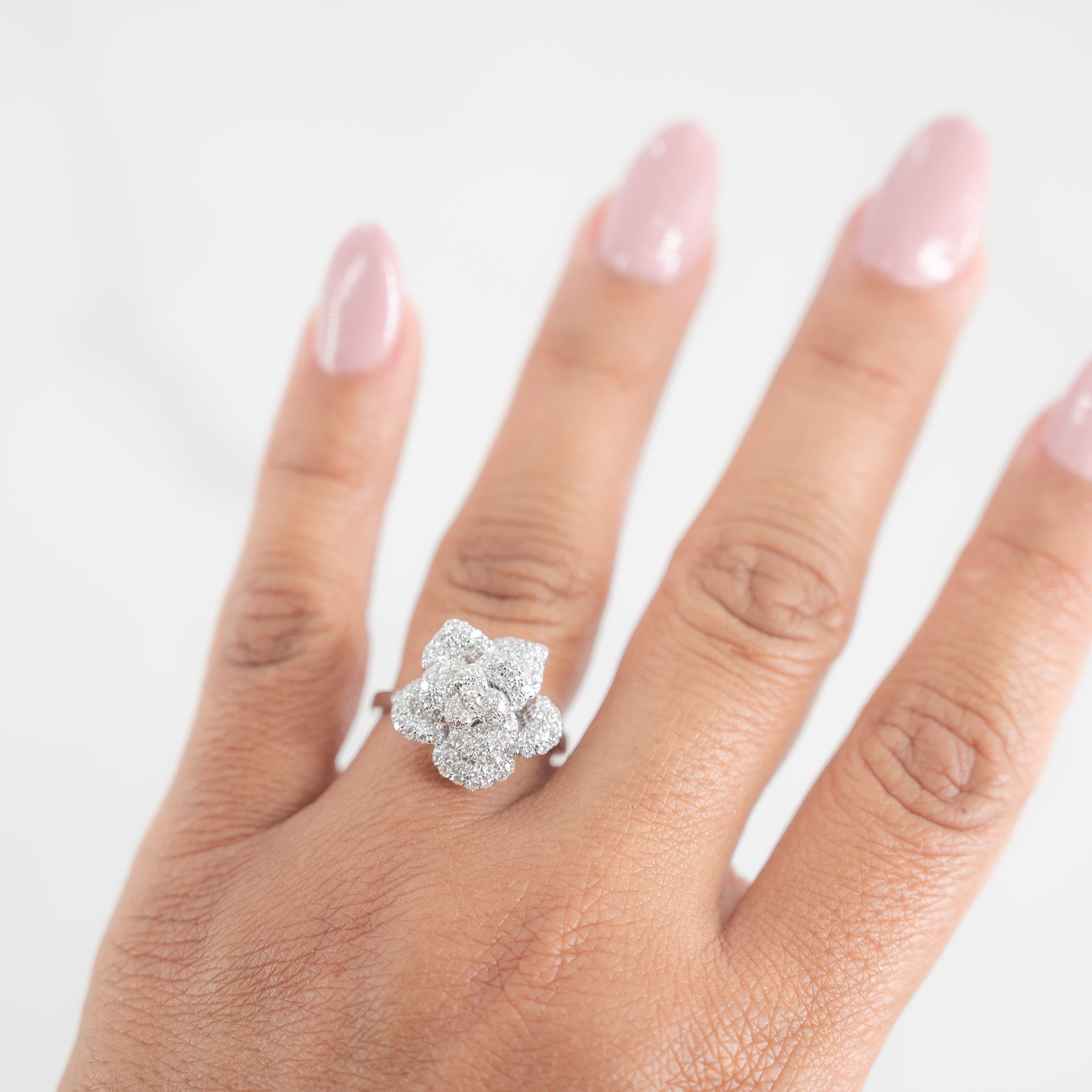14k White Gold Channel Set Rose Diamond Floral Engagement Ring