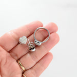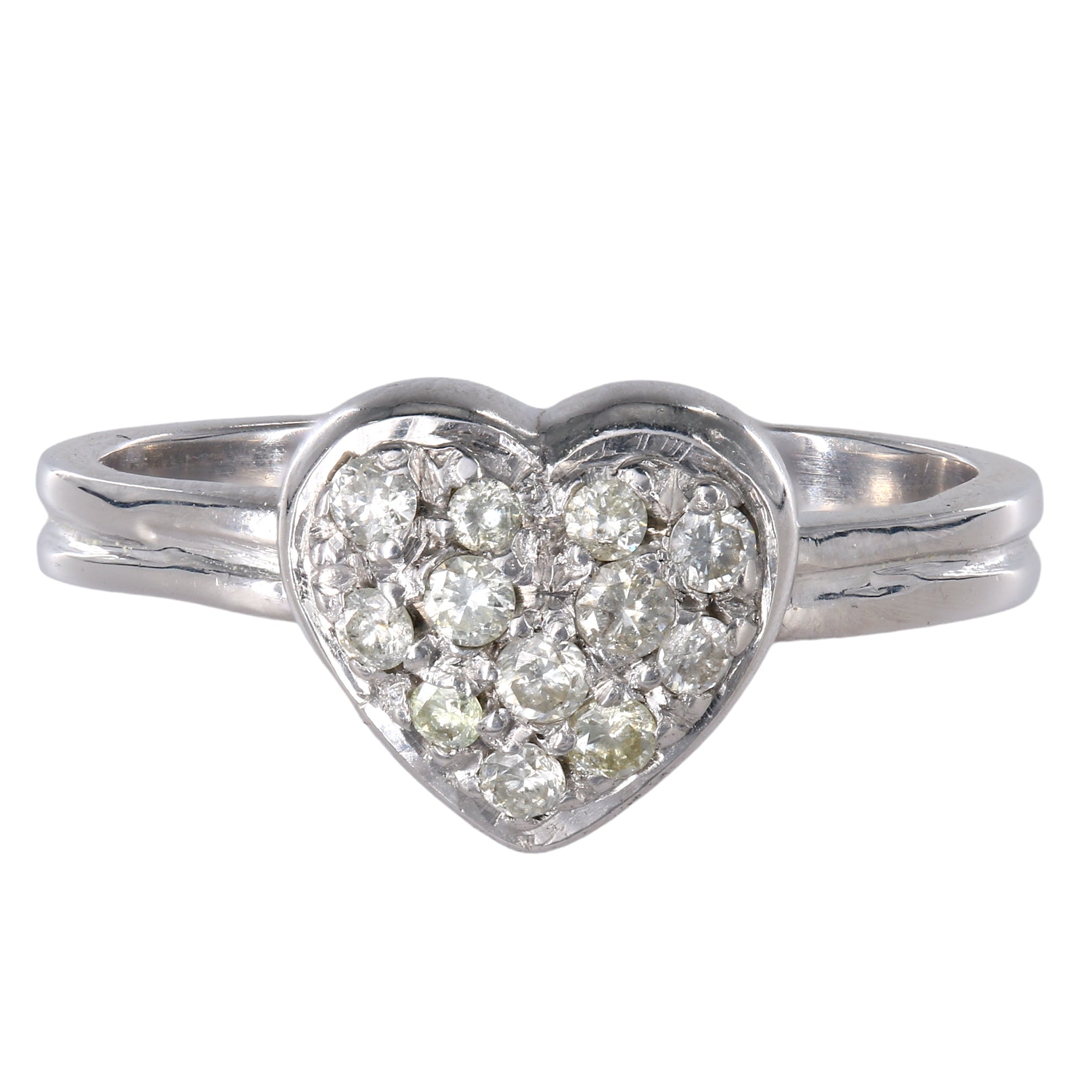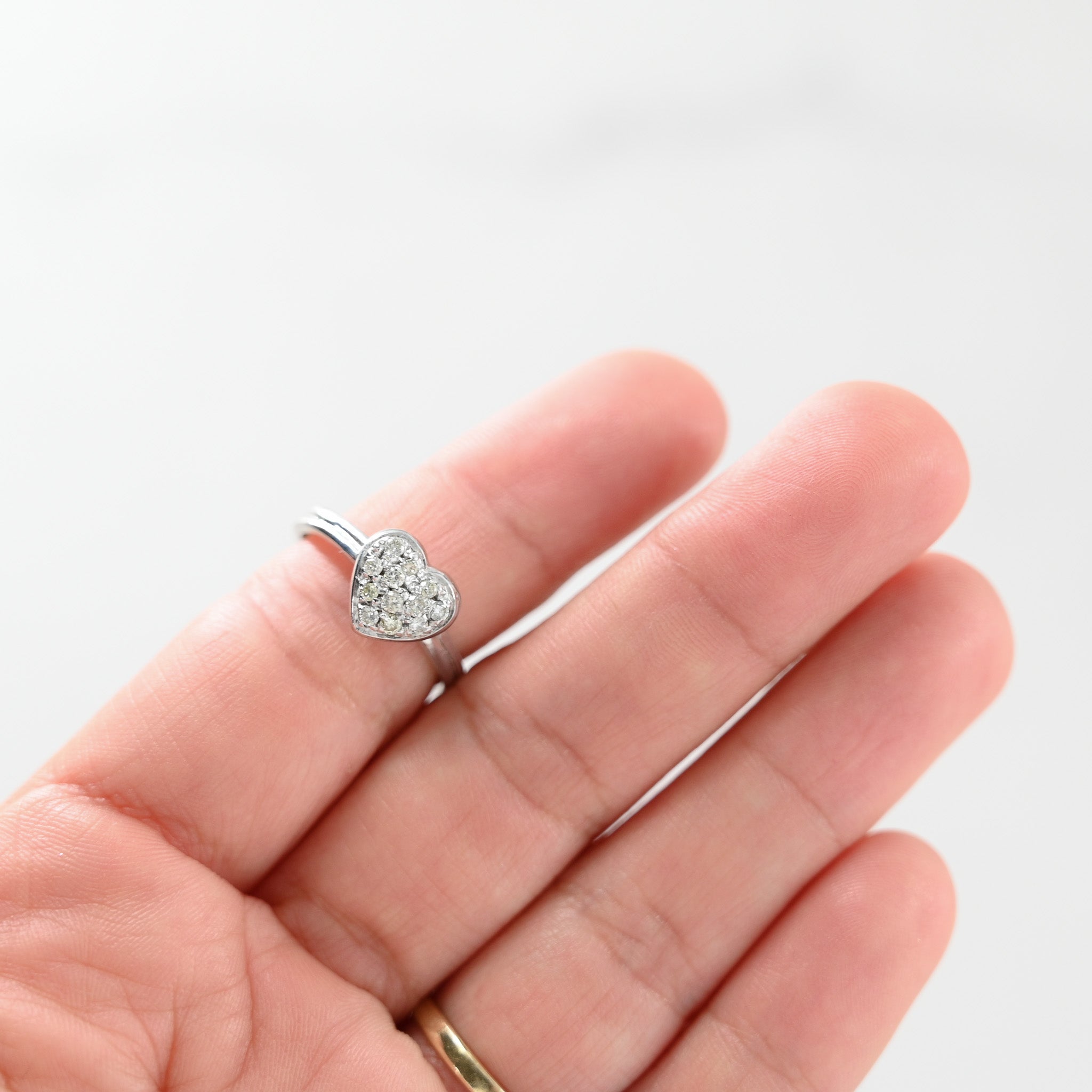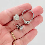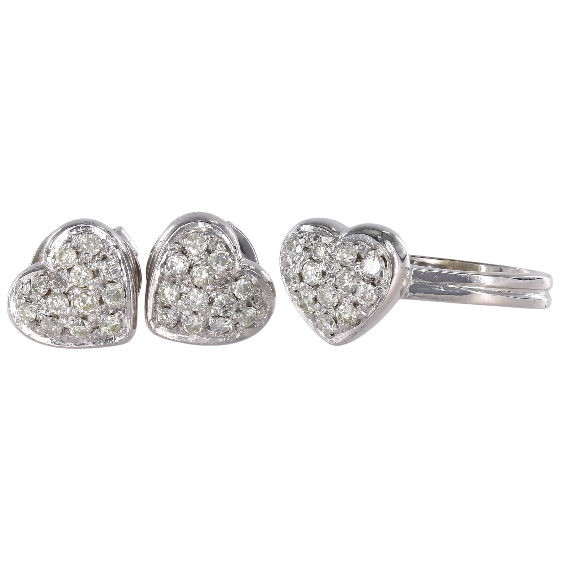 14K White Gold Cluster Diamond Ring And Earrings Heart Shape Jewelry Set
