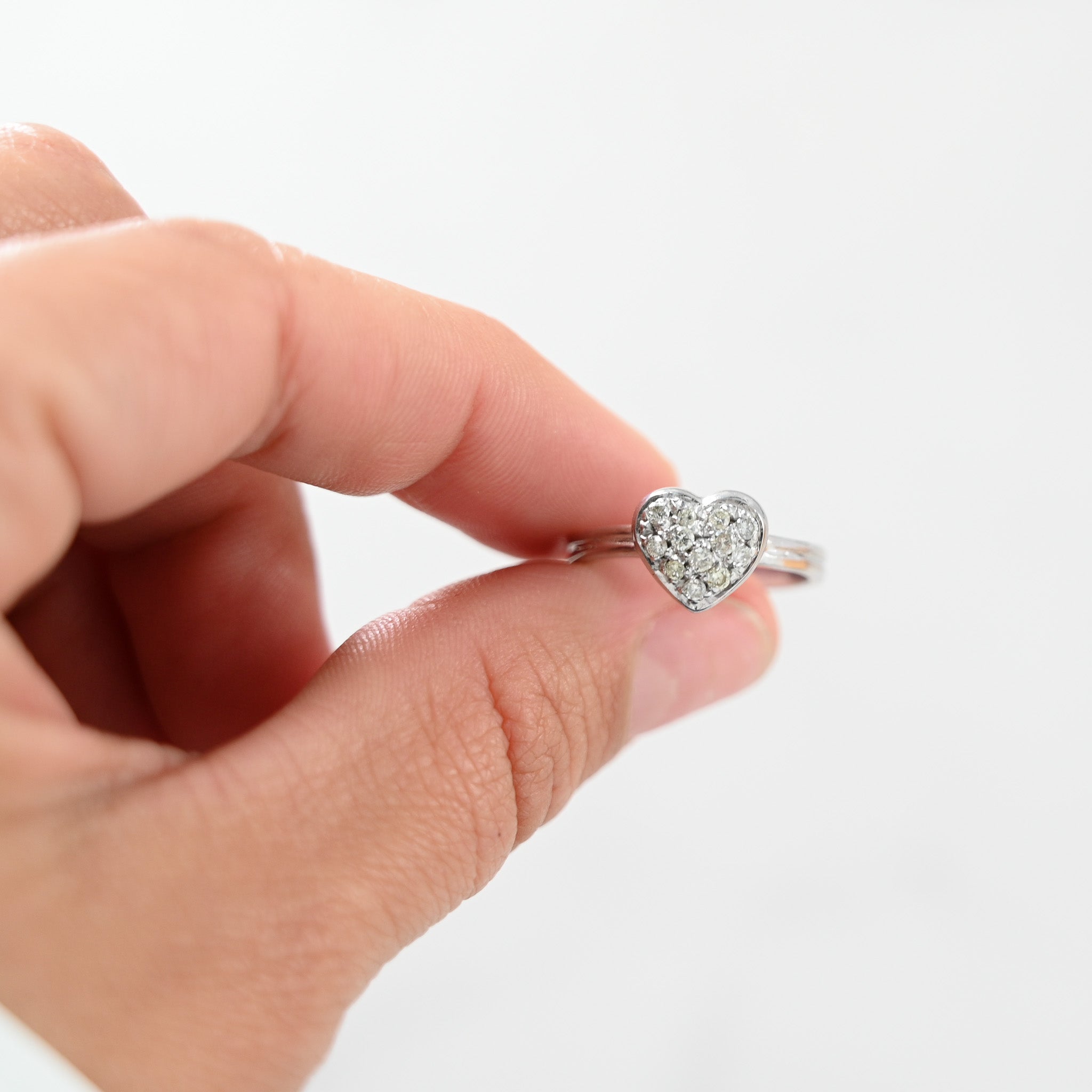 A mesmerizing duo that speaks volumes of love and sophistication. The set features a dazzling ring and matching earrings, both crafted with precision in radiant 14K white gold. The heart-shaped cluster of diamonds adorns each piece, creating a romantic and timeless allure.