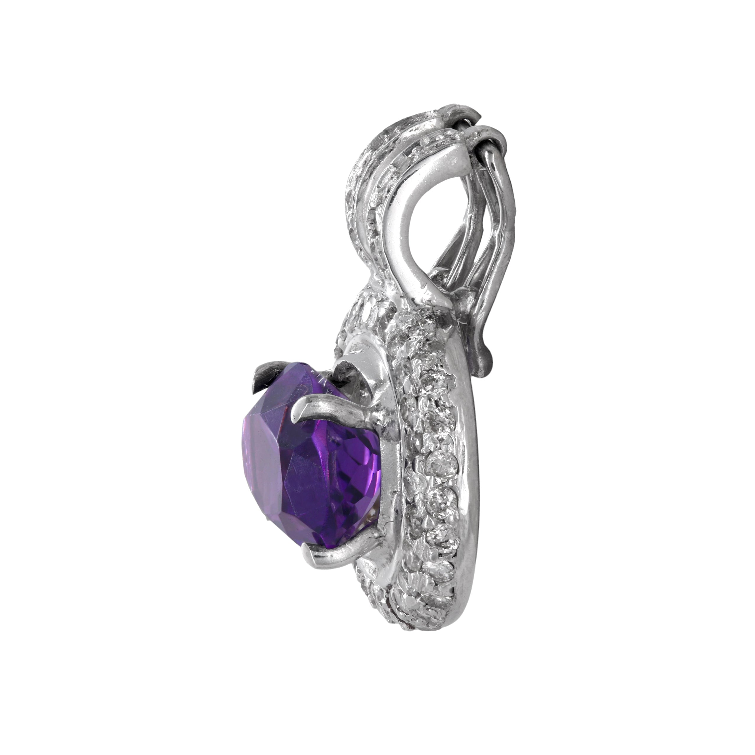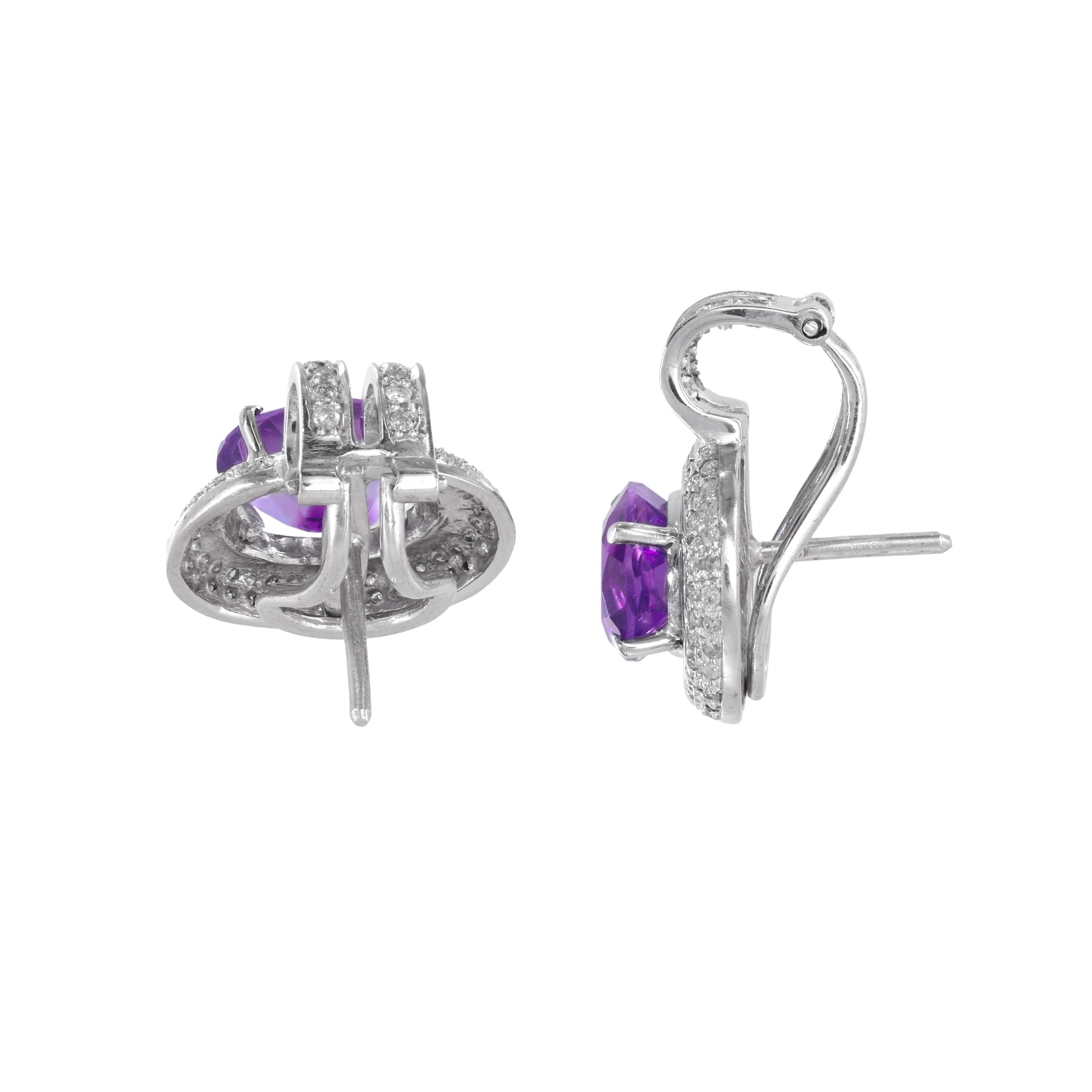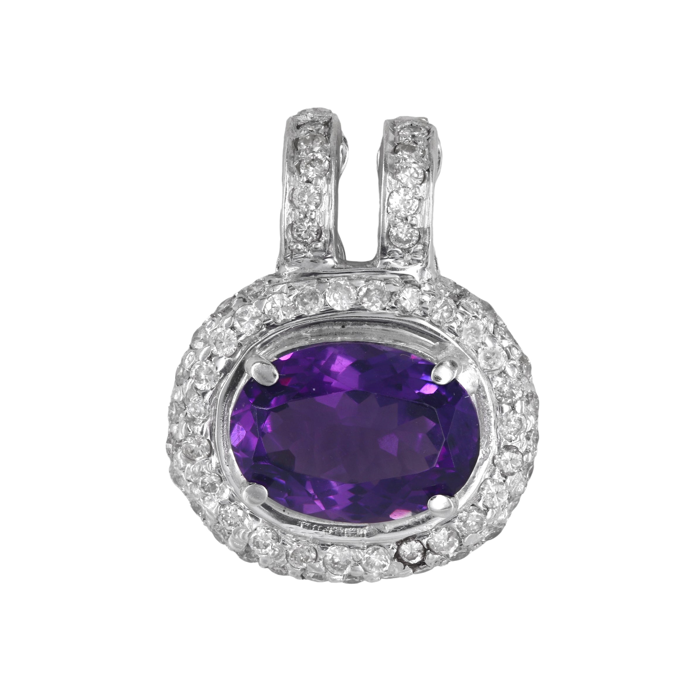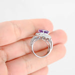 14K White Gold Diamond And Amethyst Pendant, Ring And Earrings Jewelry Set