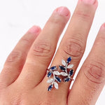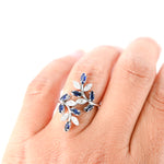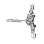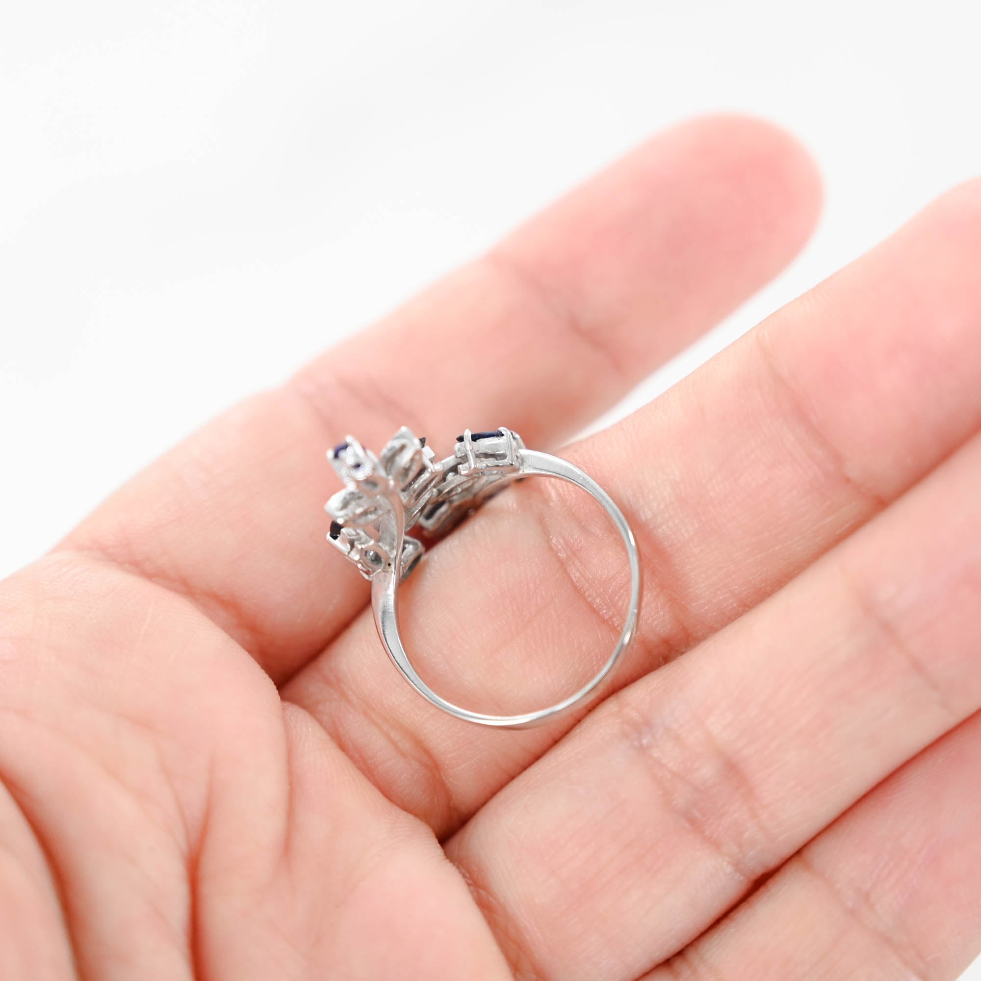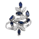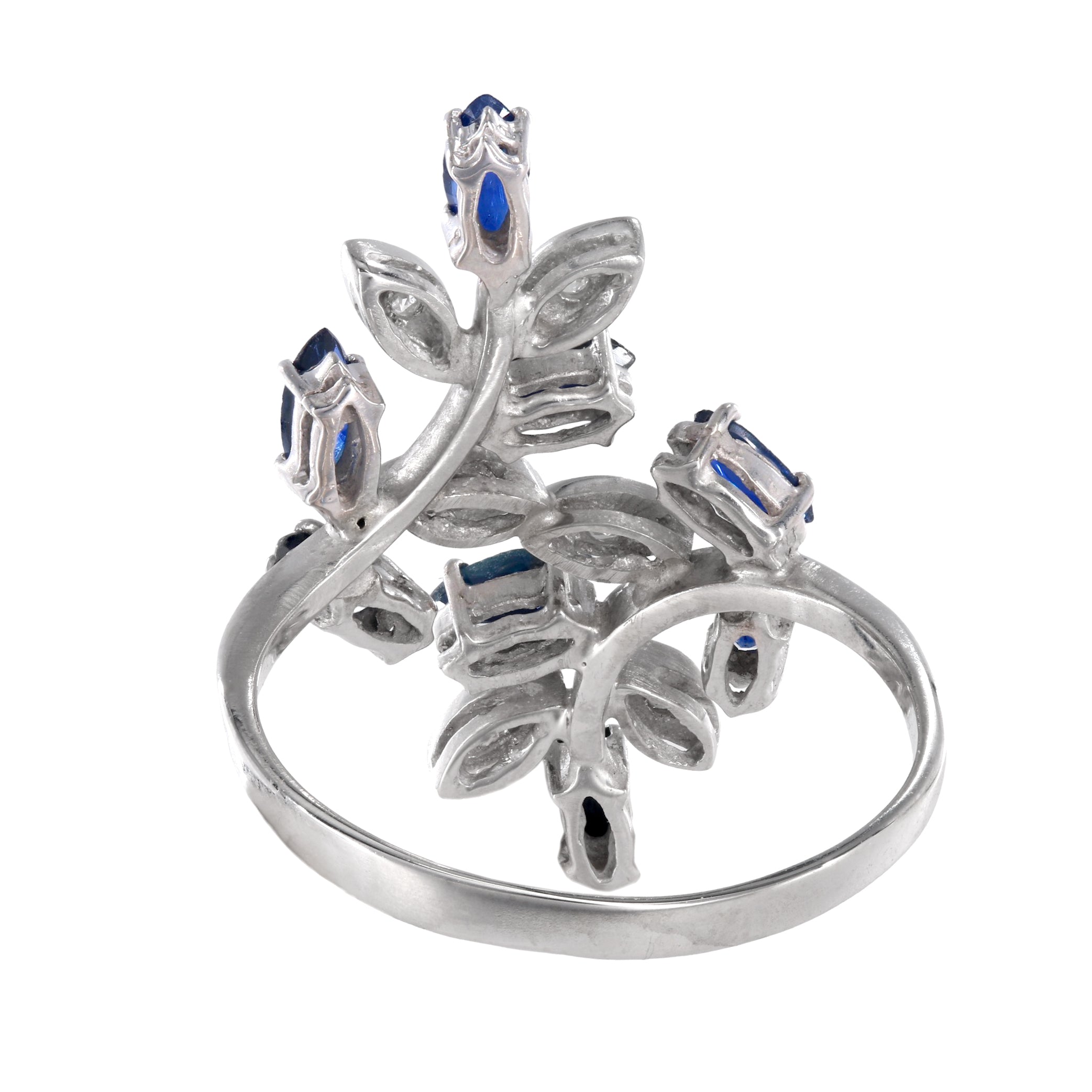 14K White Gold Diamond And Sapphire Cocktail Leaf Design Ring