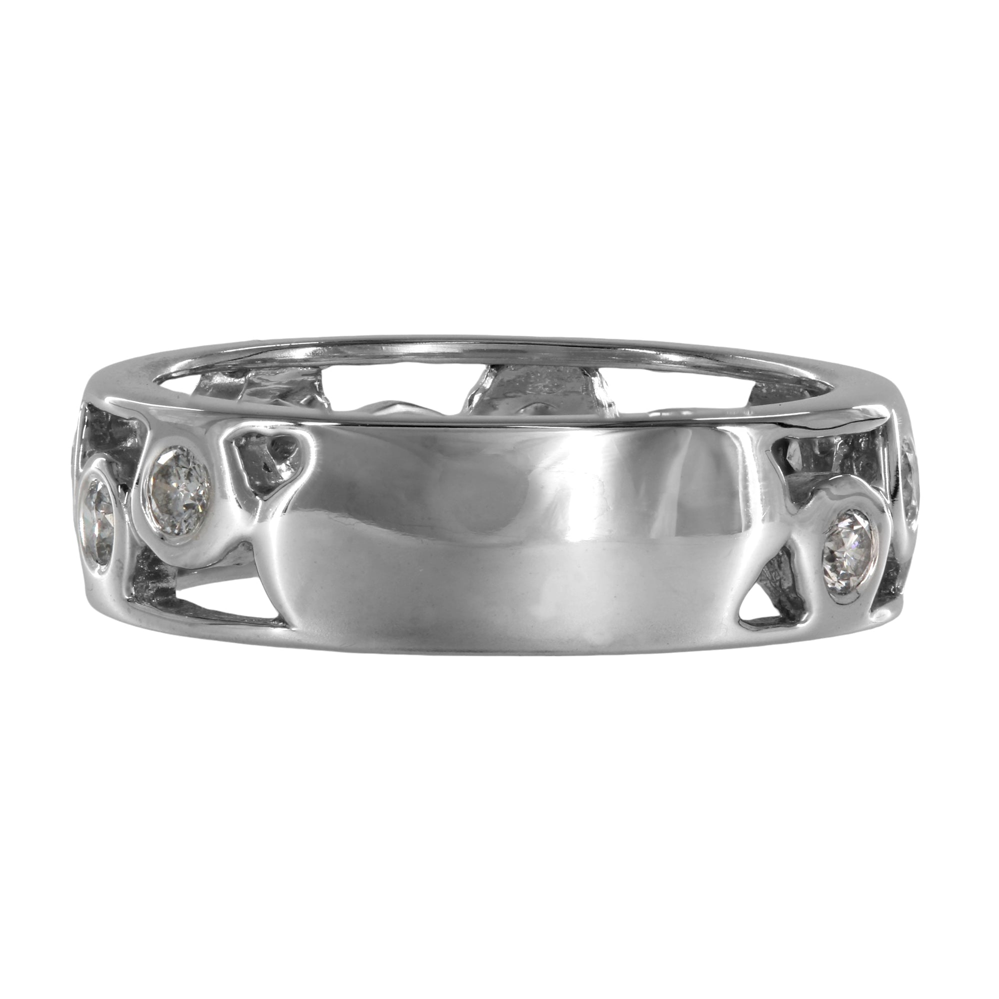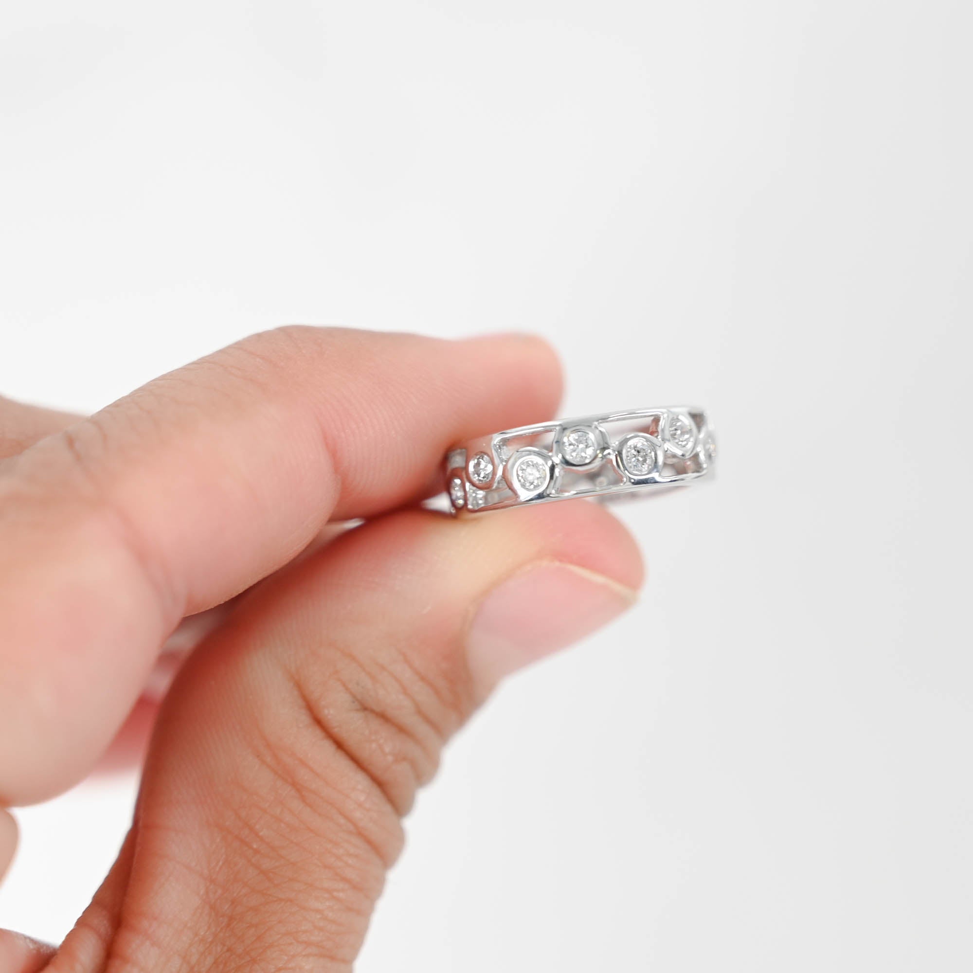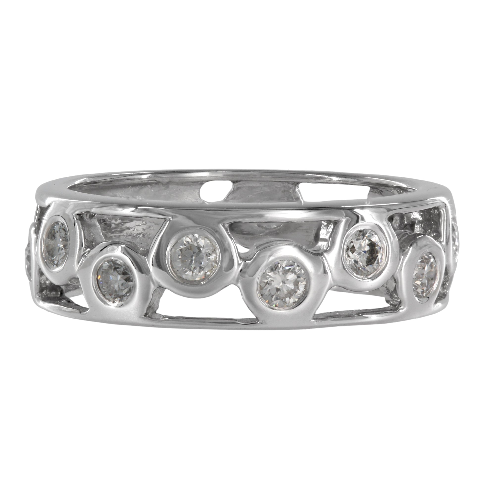 14K White Gold Diamond Bezel Set Open Work Band Ring 0.60Ctw