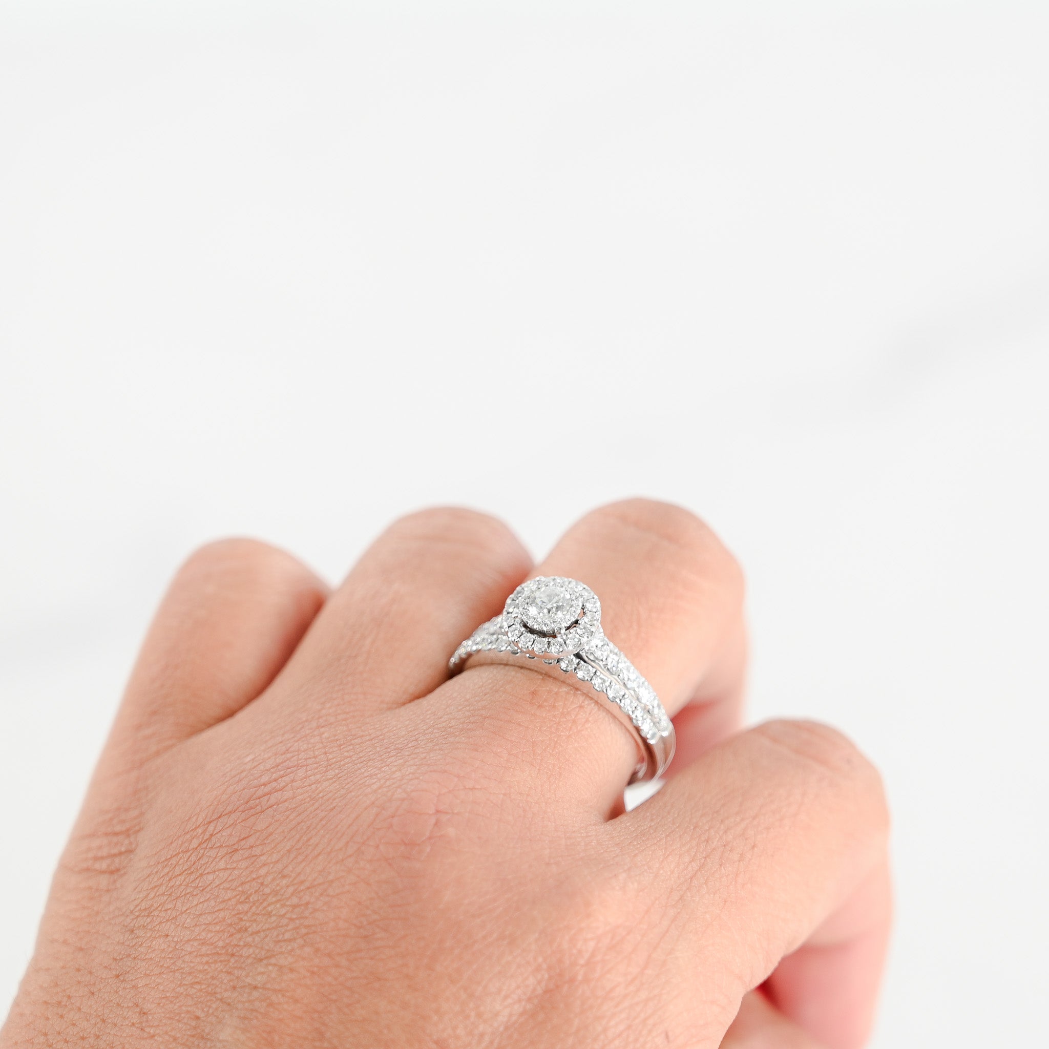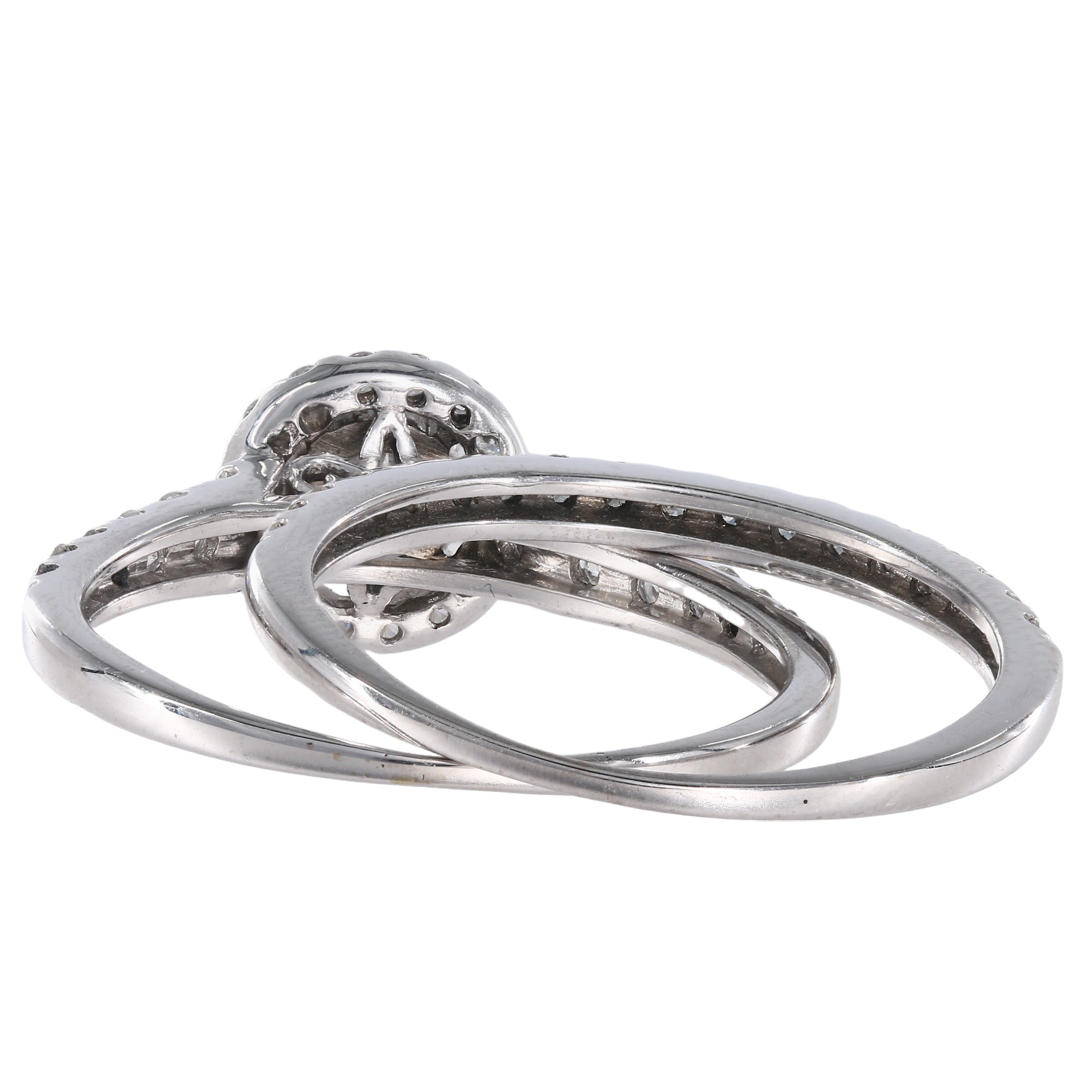 14K White Gold Diamond Cluster Engagement Wedding Band Ring