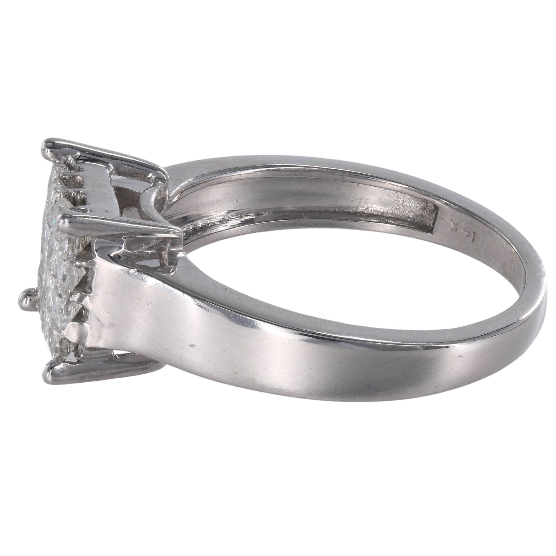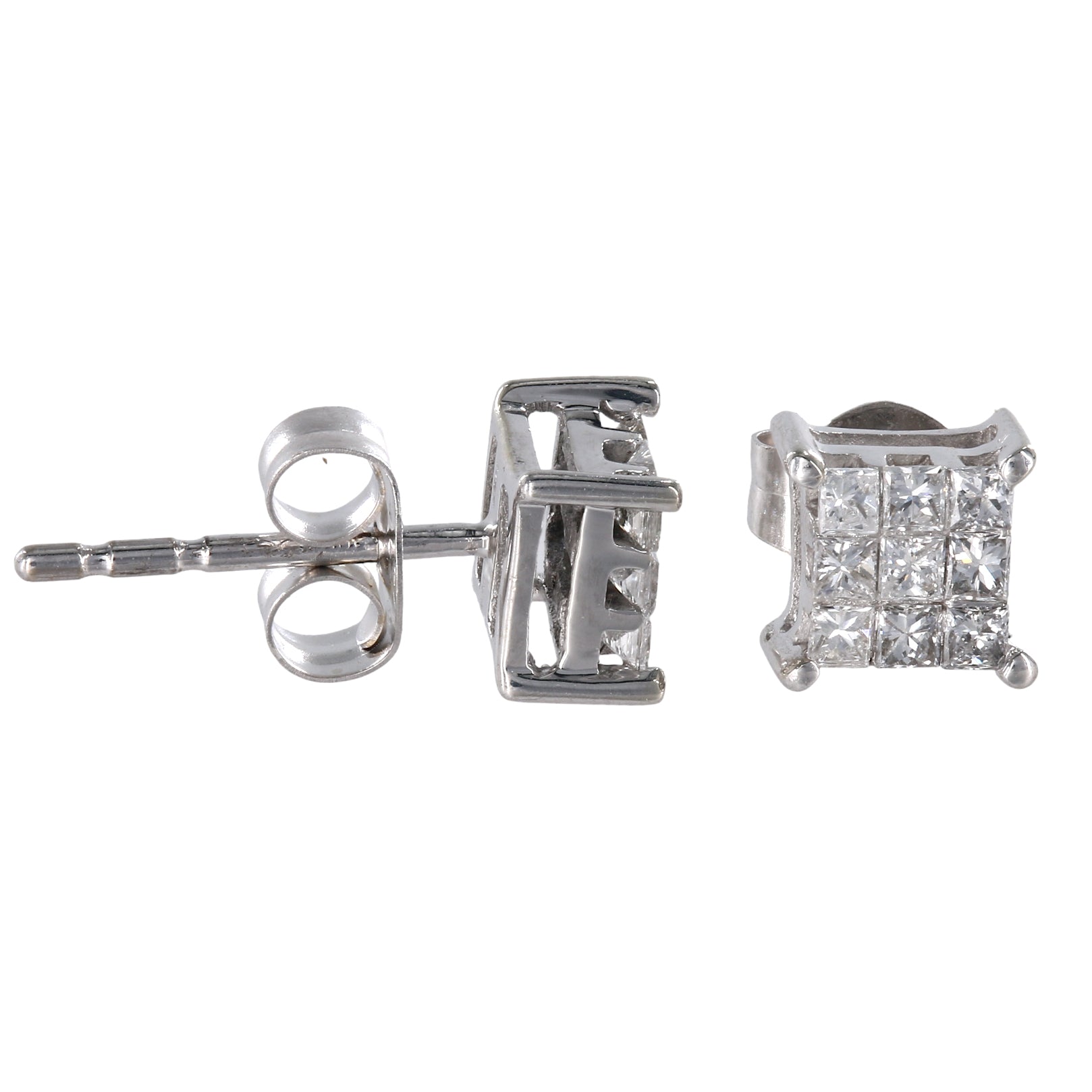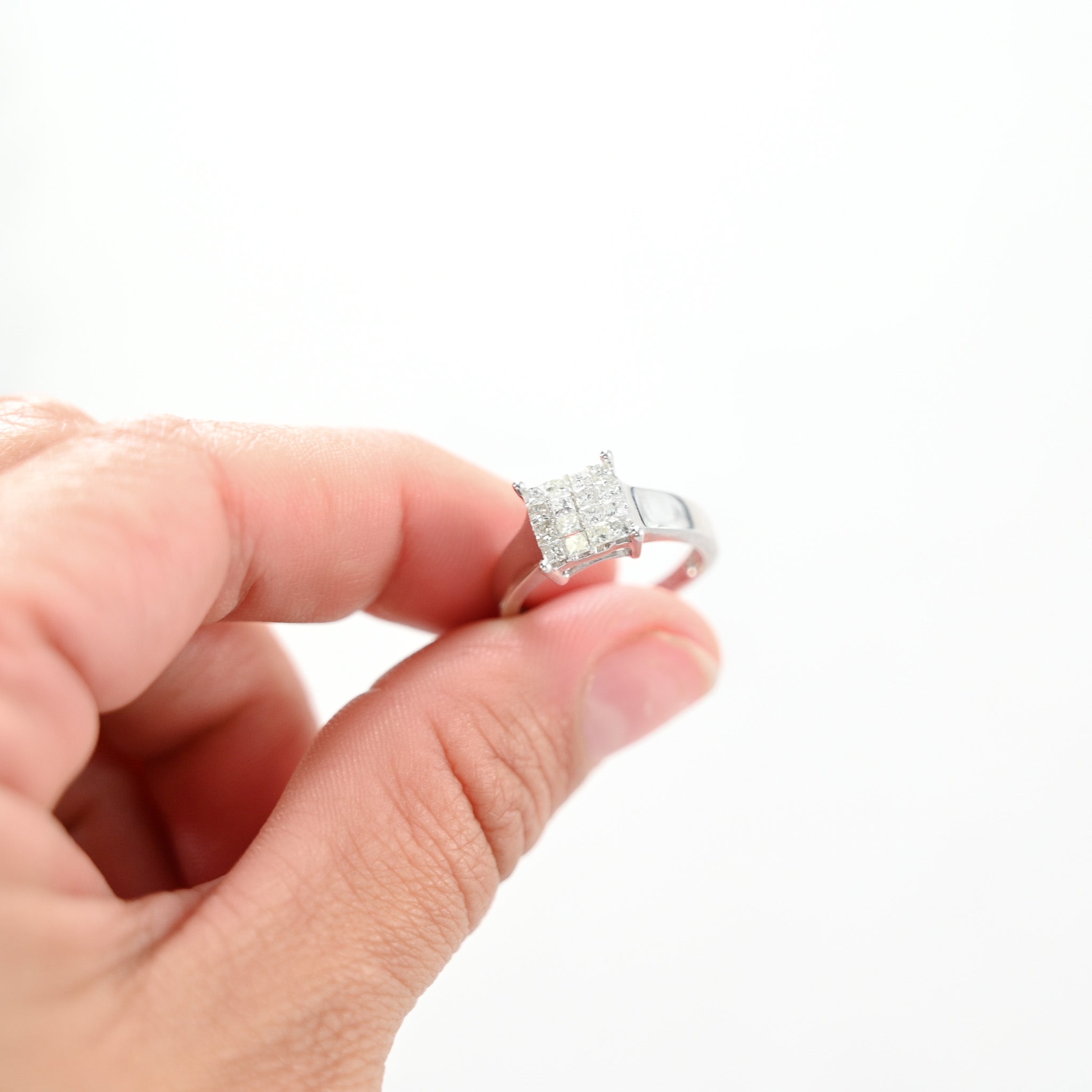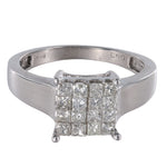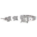 14K White Gold Diamond Cluster Princess-Cut Stud Earrings And Ring Jewelry Set