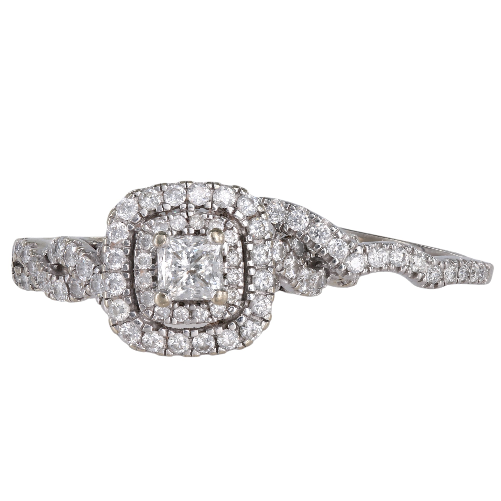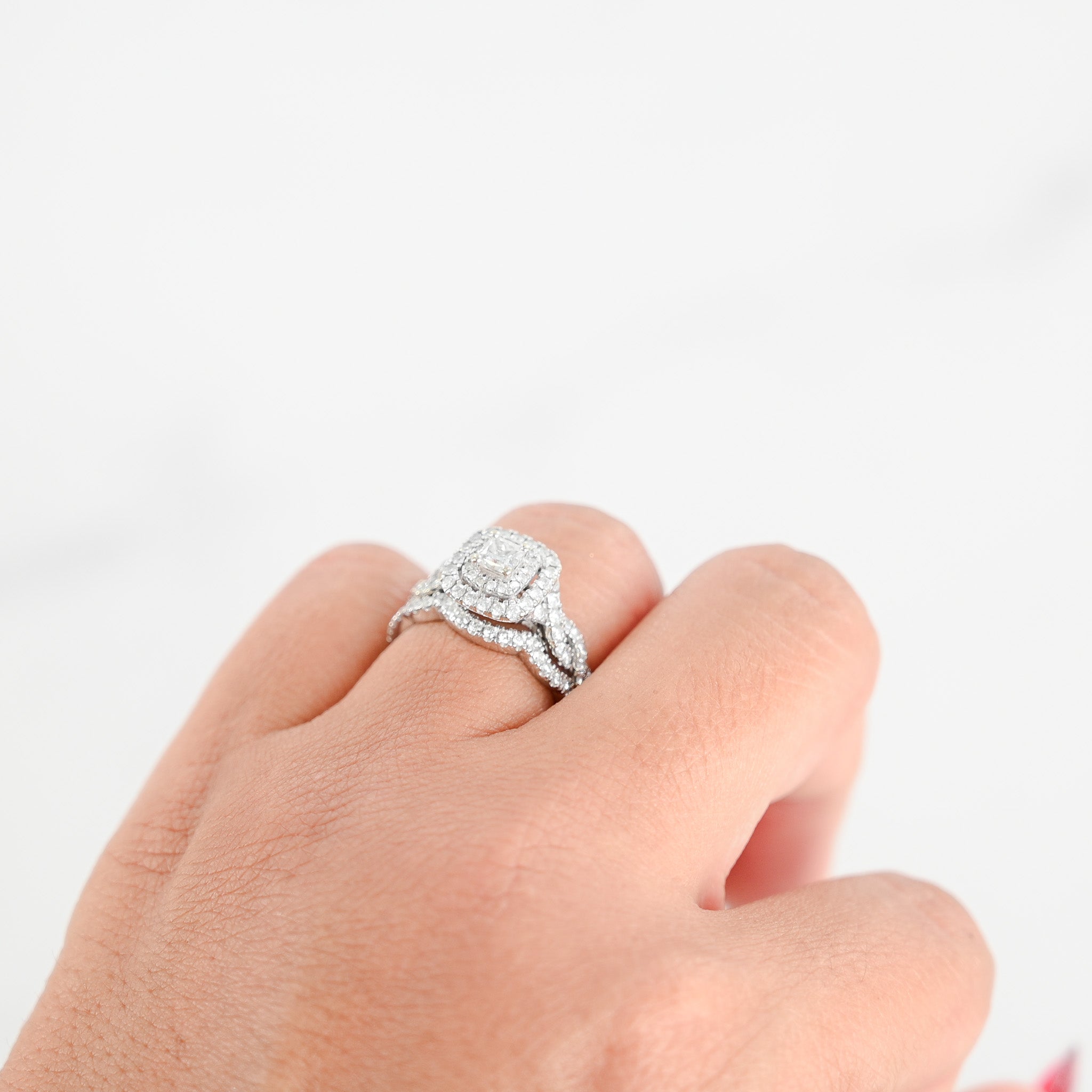 14k White Gold Diamond Cluster Wedding Set Band Engagement Ring