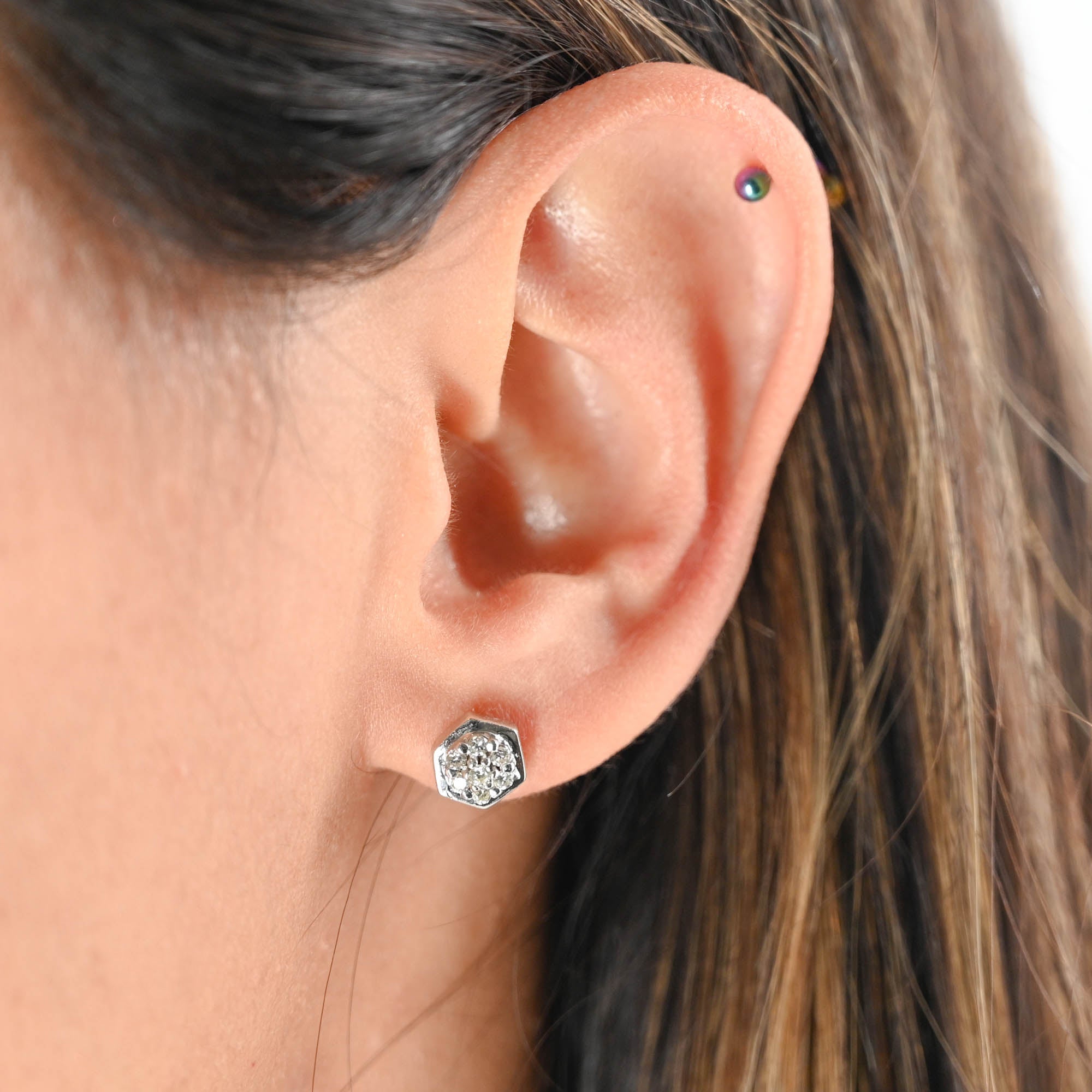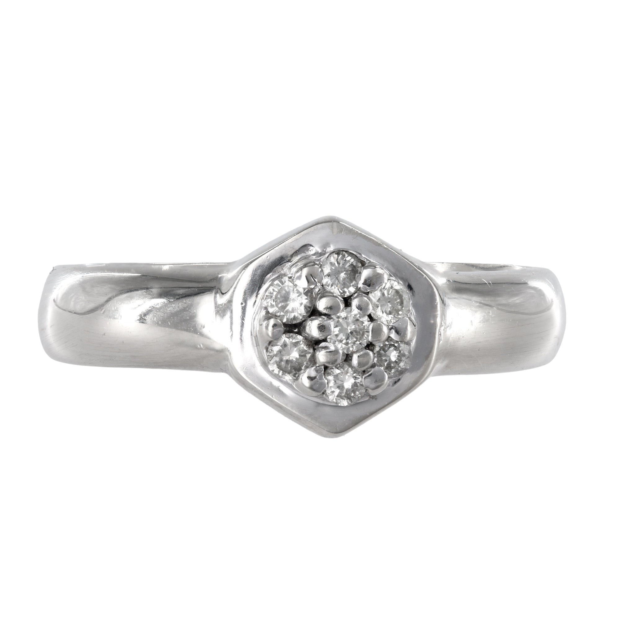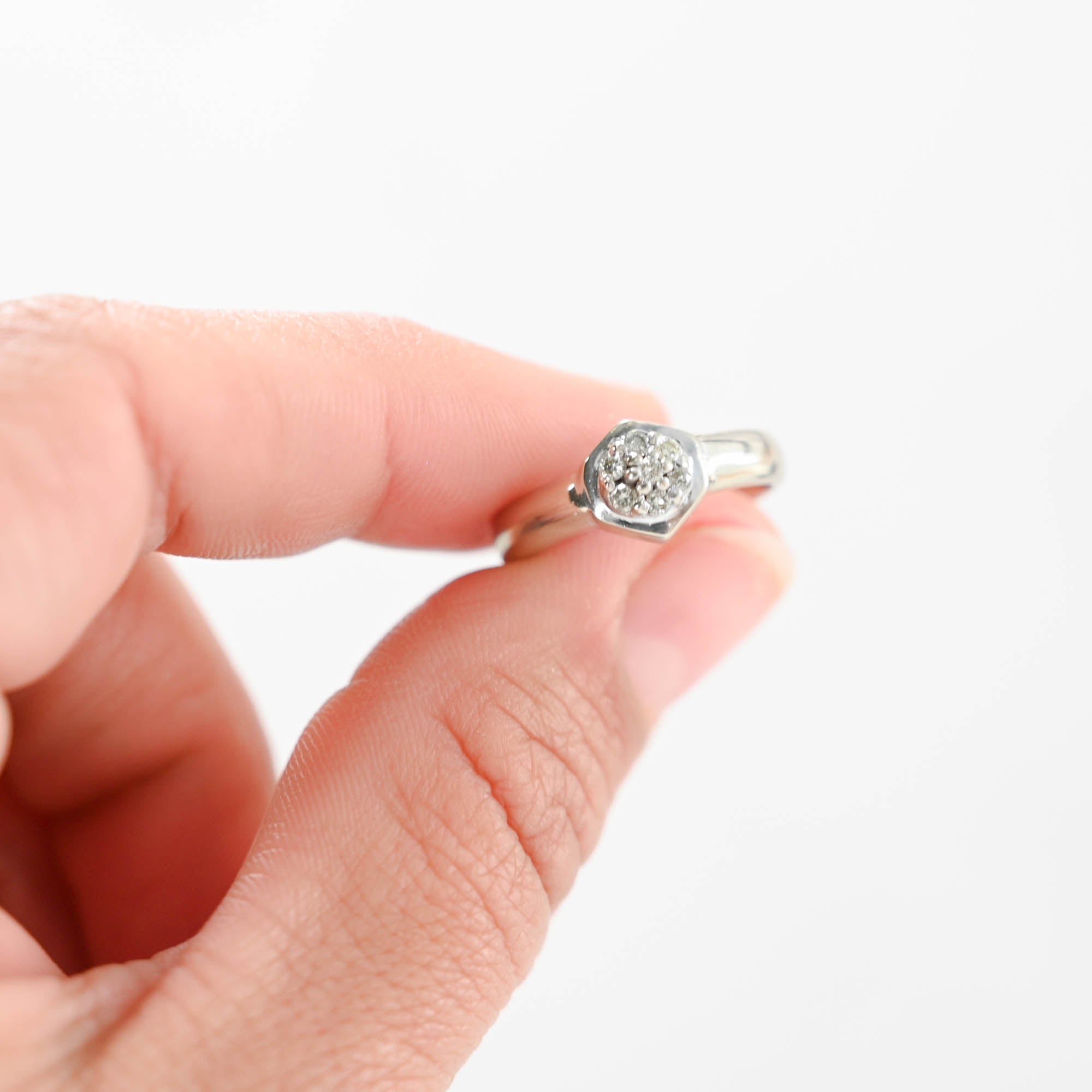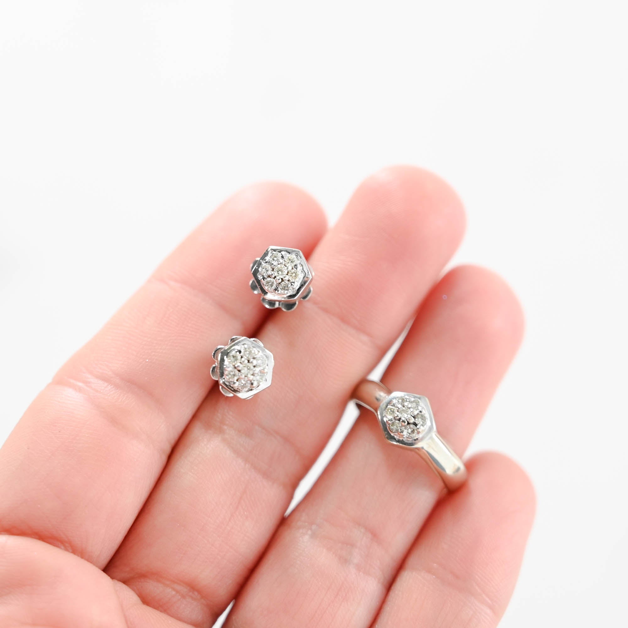 14k White Gold Diamond Hexagonal Motif Ring and Earring Jewelry Set