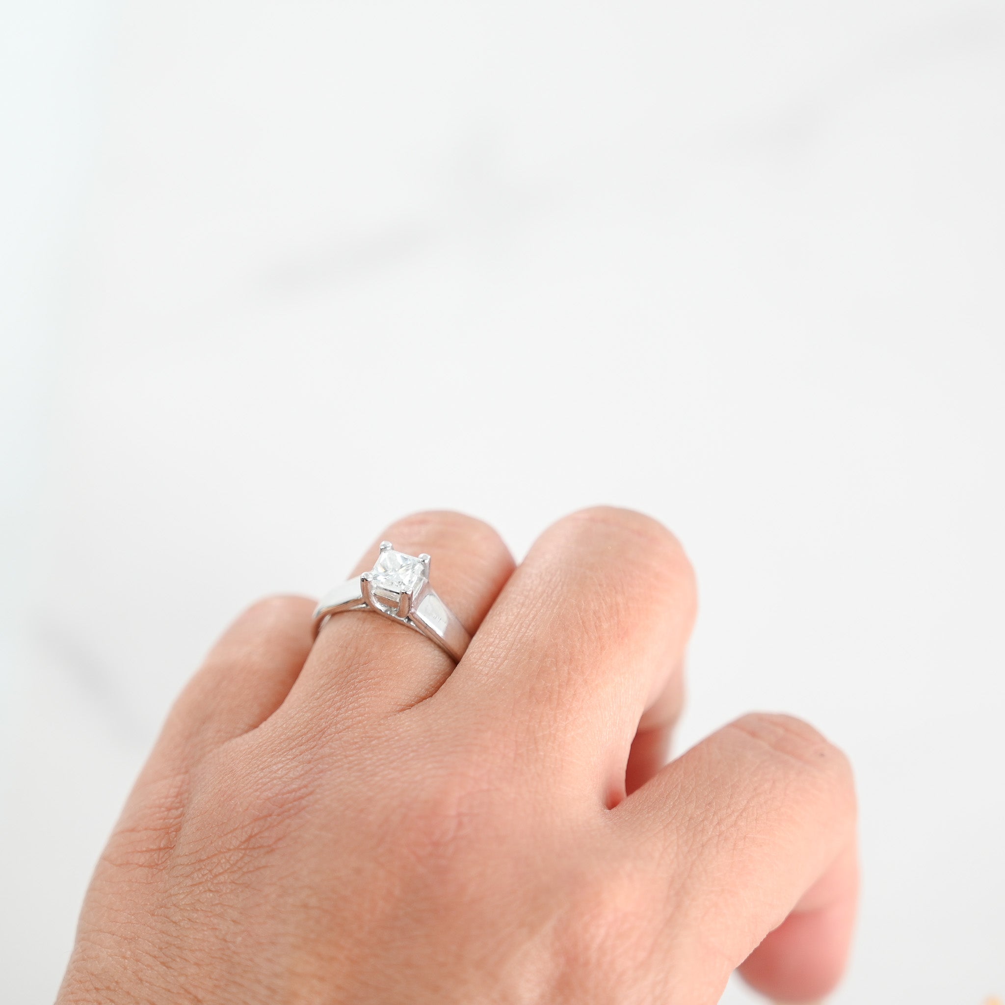 14K White Gold Diamond Princess Cut Solitaire Engagement Ring